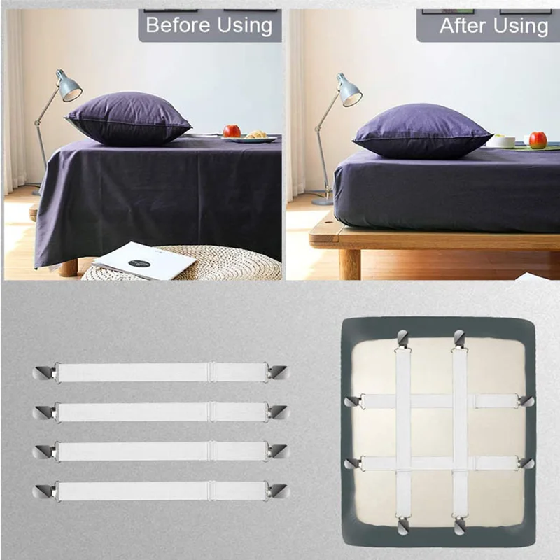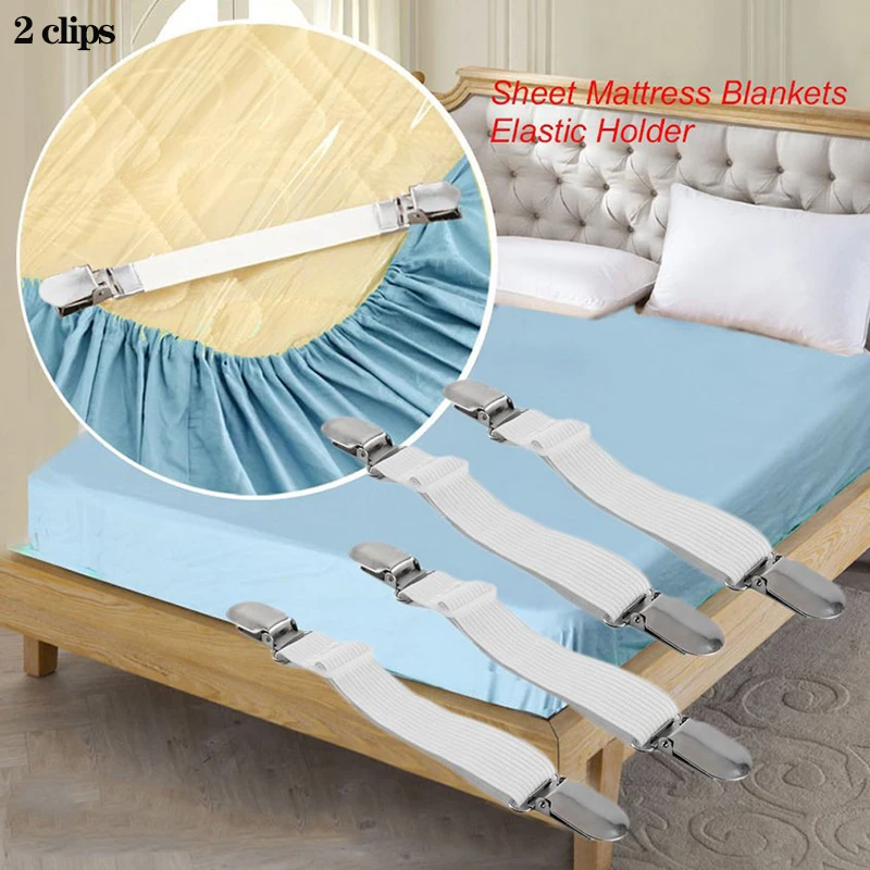 4Pcs Elastic Bed Sheet Grippers 2Clips Belt Fastener Bed Sheet Clips Non-slip Bed Sheet Clamp Mattress Cover Blankets Holder