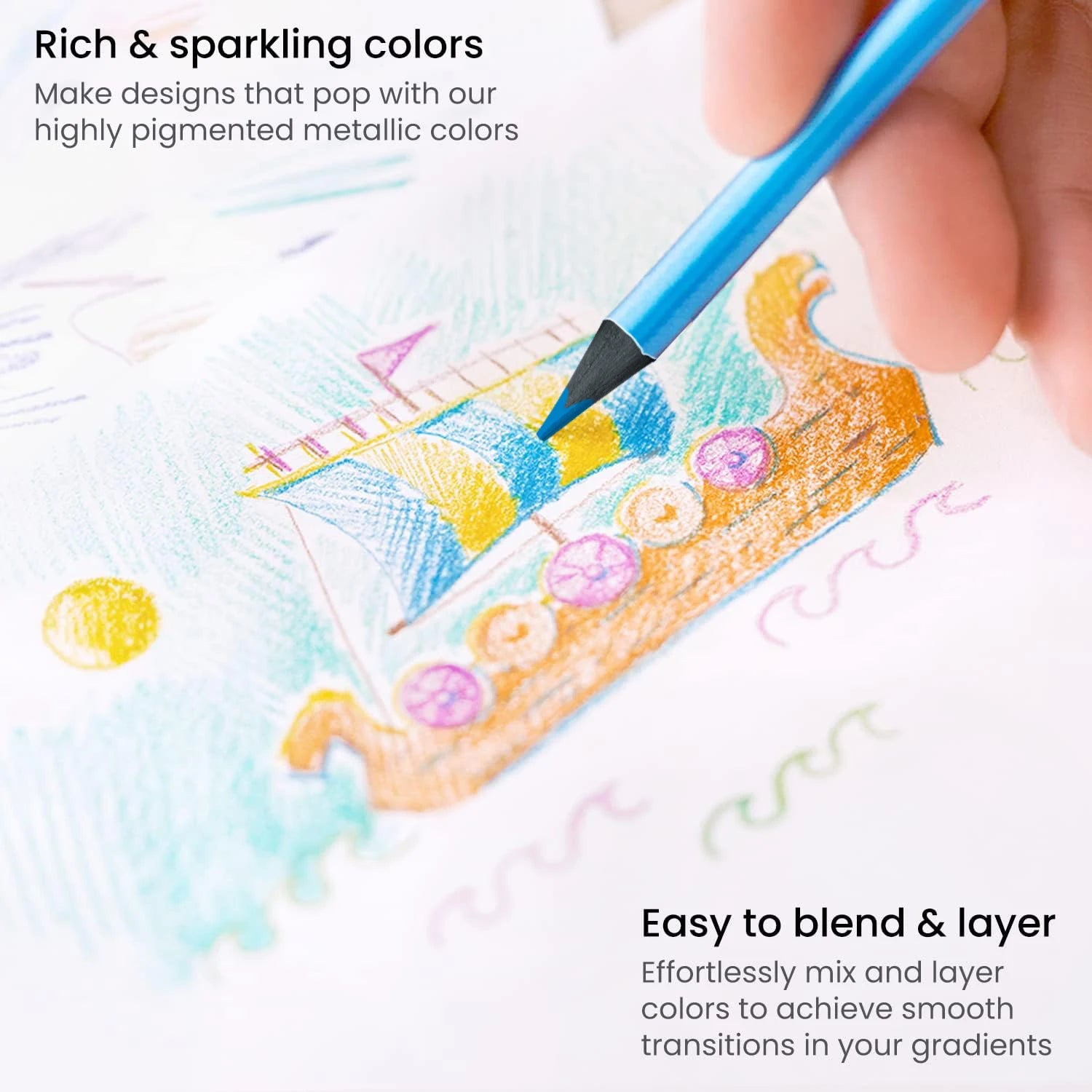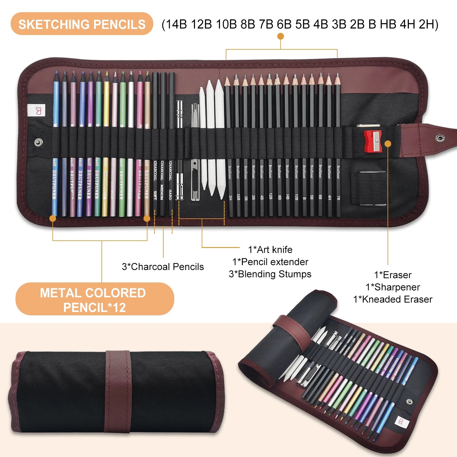 Drawing pencils, 38 art supplies sketching pencil sets, graphite pencils, charcoal pencils, and 12 metallic pencils,art supplies