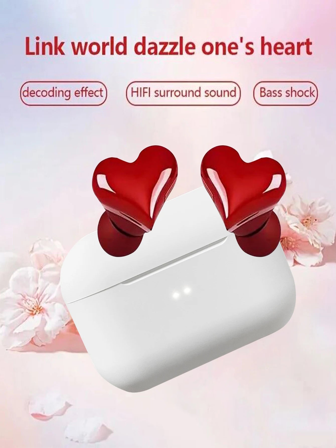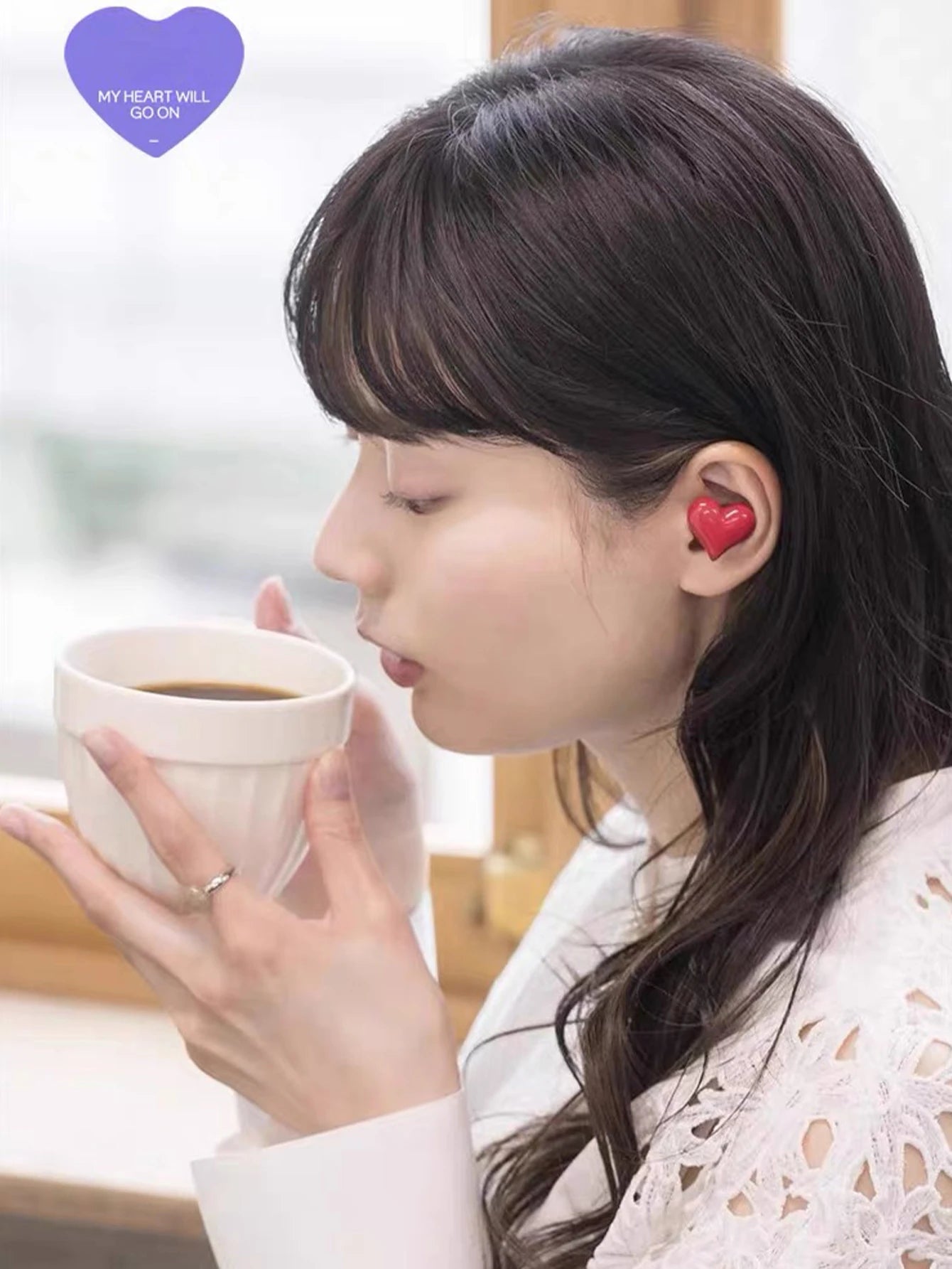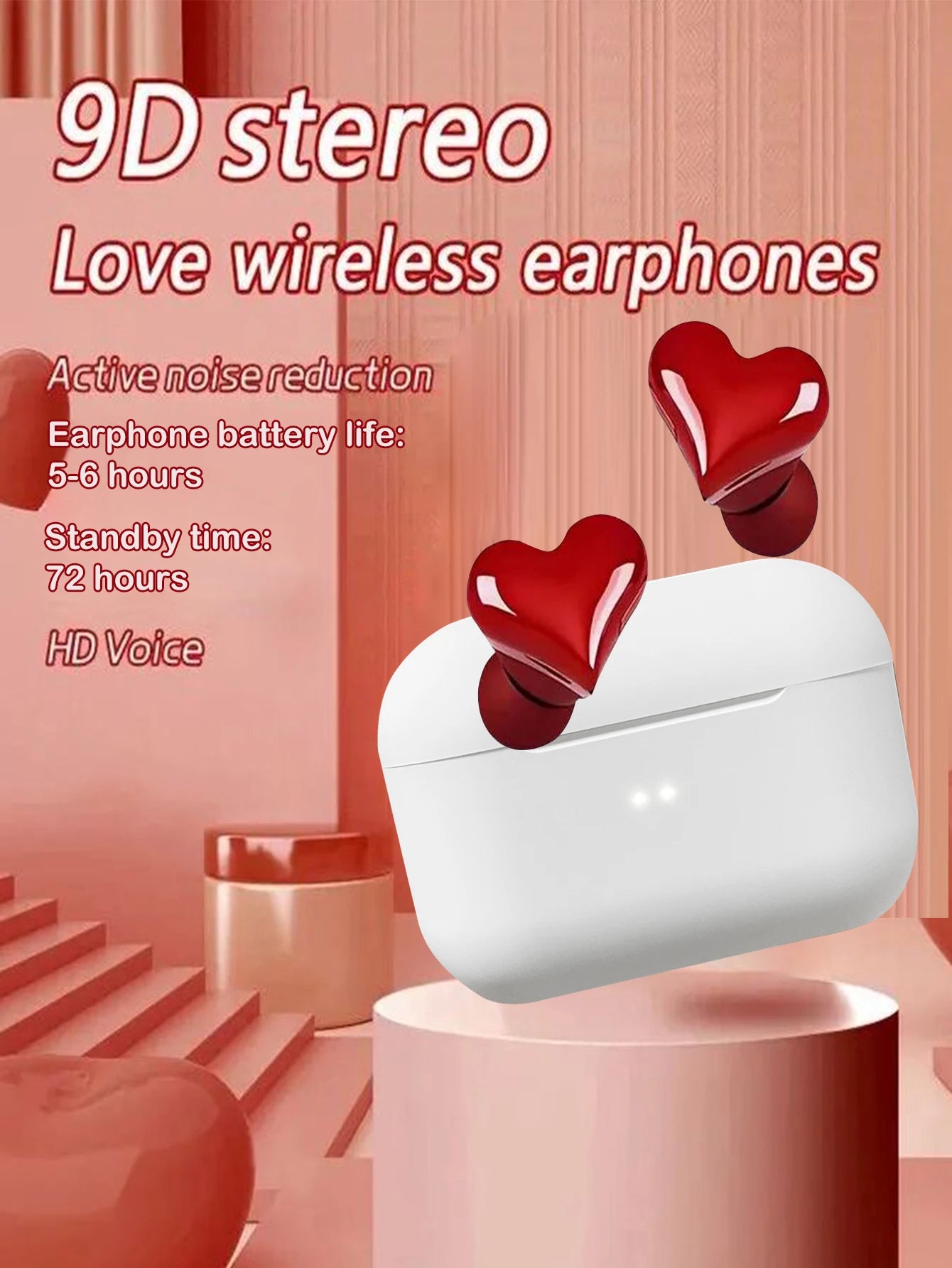 Wireless mini love headphones, heart-shaped headphones Cute wireless sports headphones, portable long life mini headphones