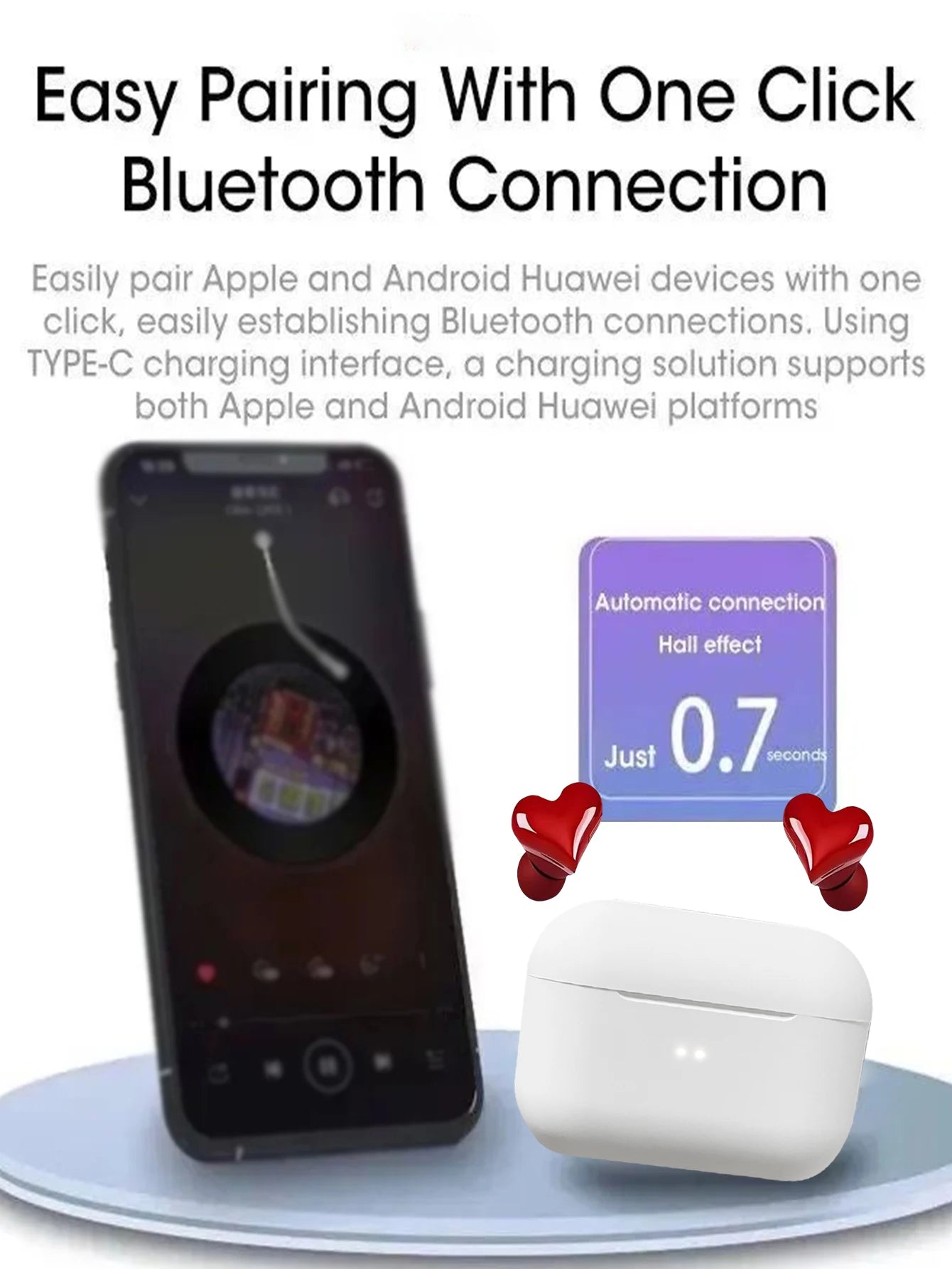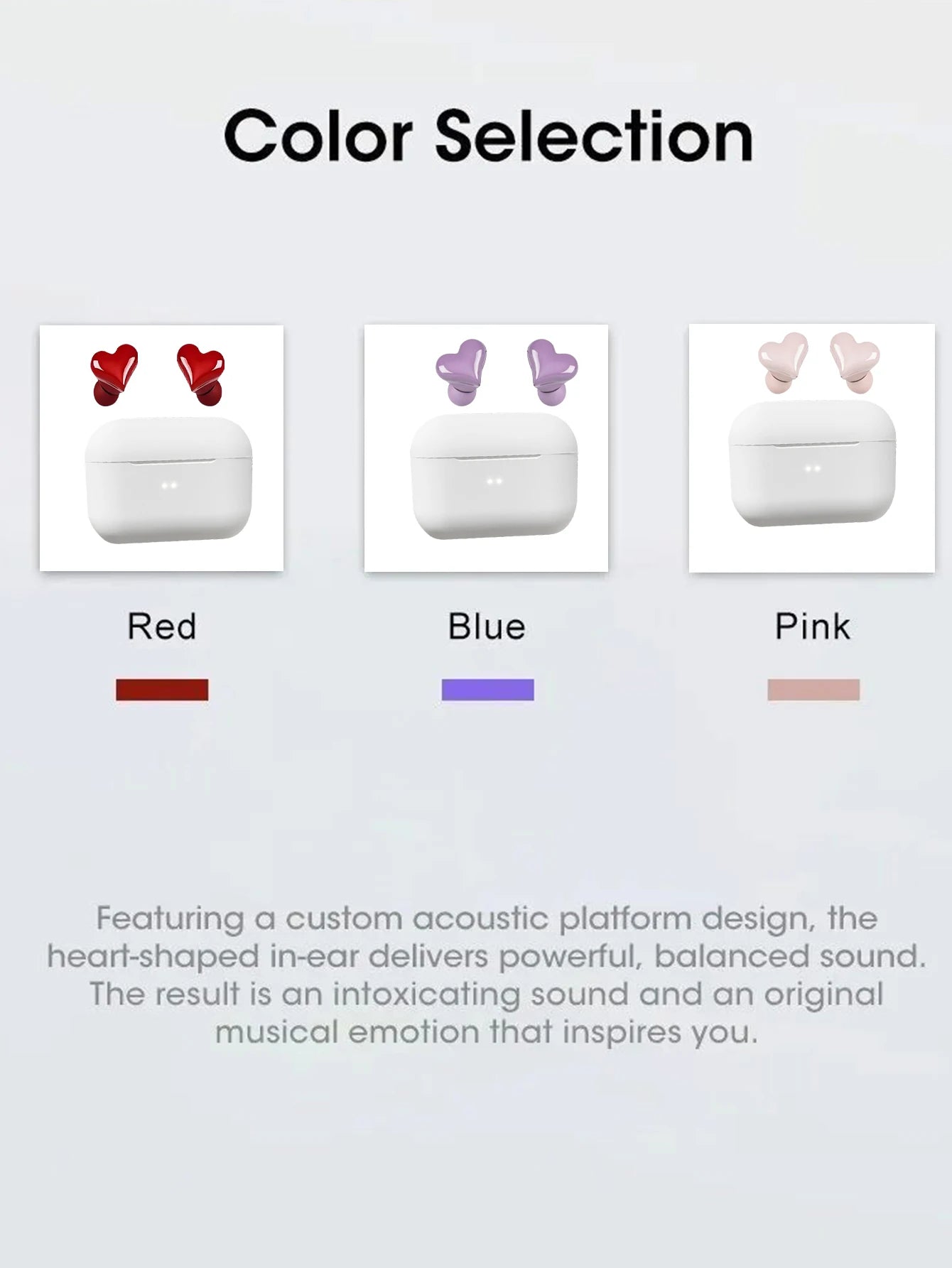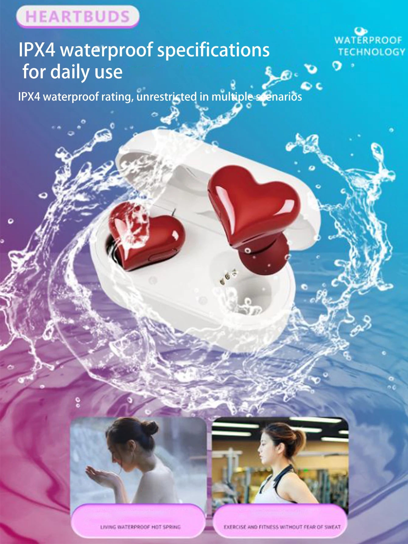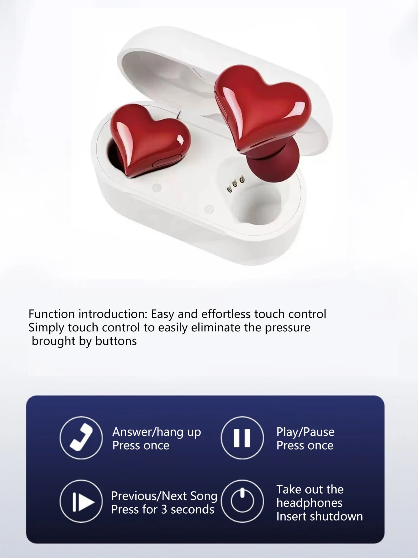 Wireless mini love headphones, heart-shaped headphones Cute wireless sports headphones, portable long life mini headphones