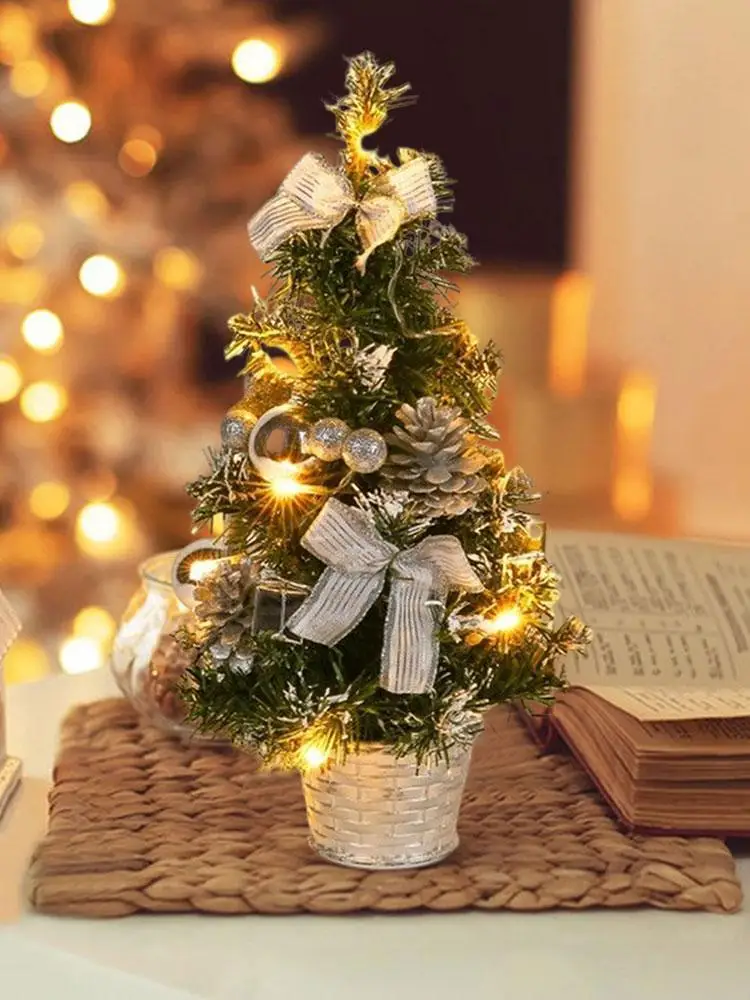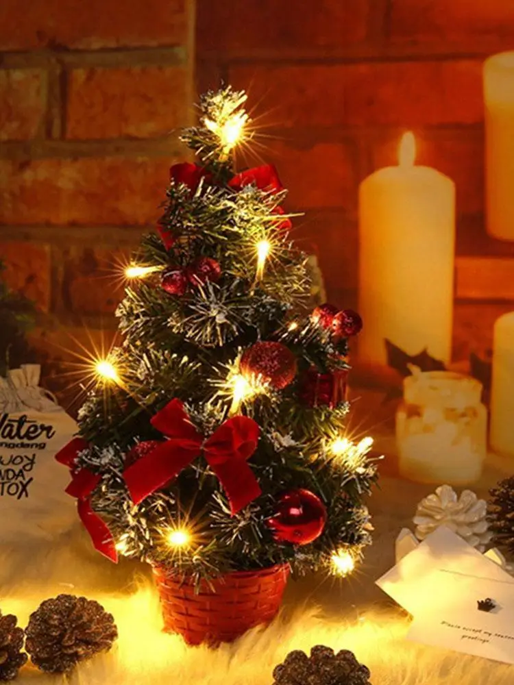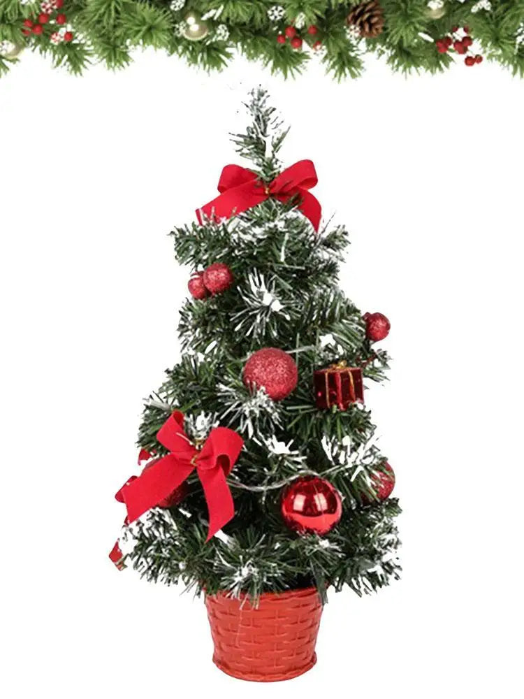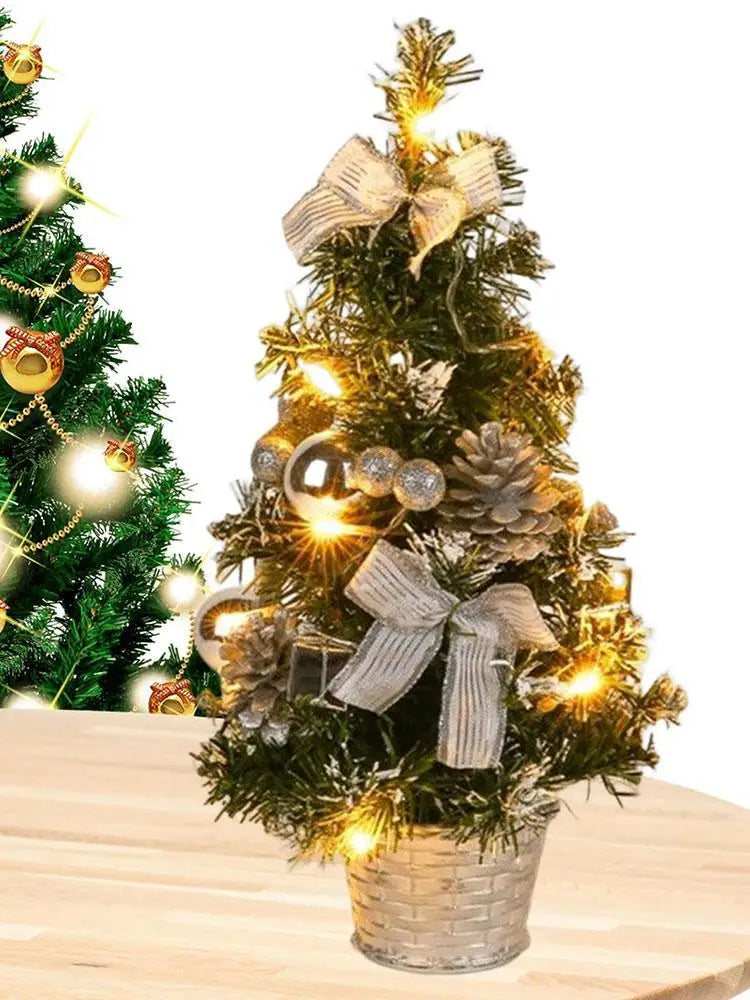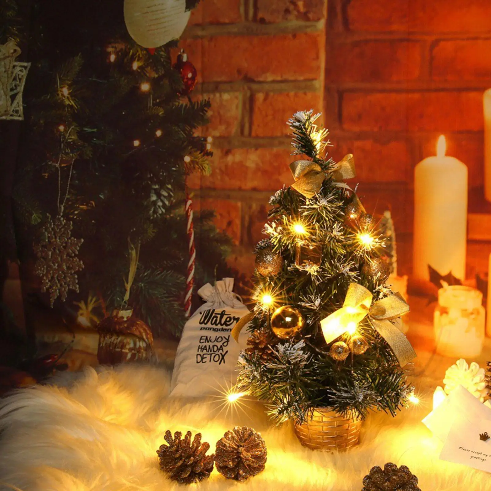 Christmas 40CM Tree Prelit Mini Christmas Tree With Lights Thick Snowy Frosted Artificial Christmas Tree Tabletop With Pine