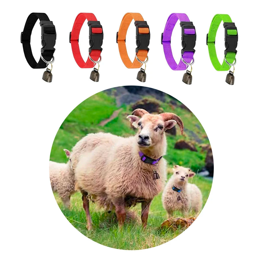 Goat Collars with Bells, Adjustable Nylon Collar Set, Horse Sheep Cow Grazing Copper Bells Pet Anti-Lost Bronze Bell for Animal