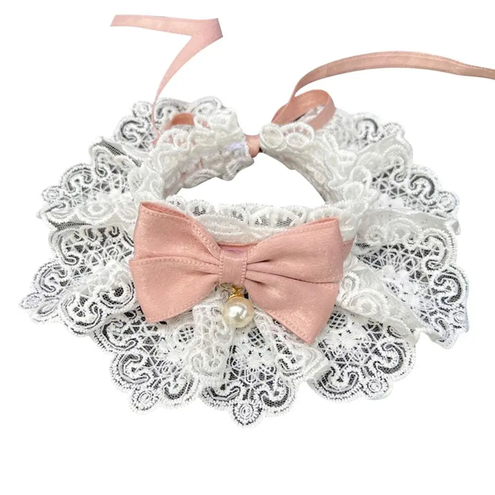 Lace Bowknot Pearl Collar Cat Dog Neckerchief Pet Cats Kitten Dog Puppy String Bib Necklace Necktie Neck Strap Scarf Accessories