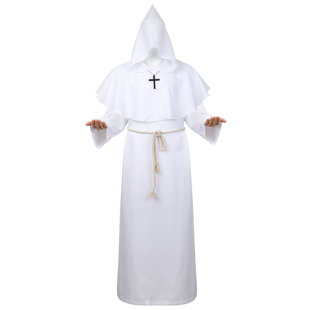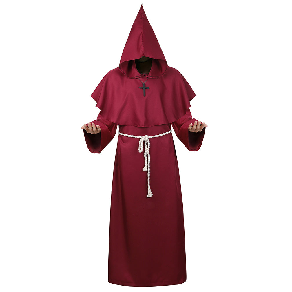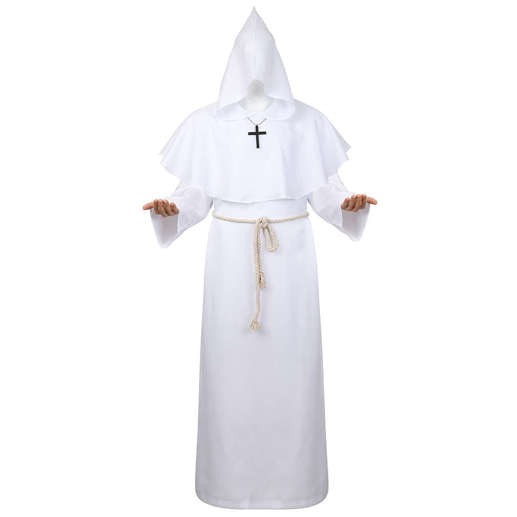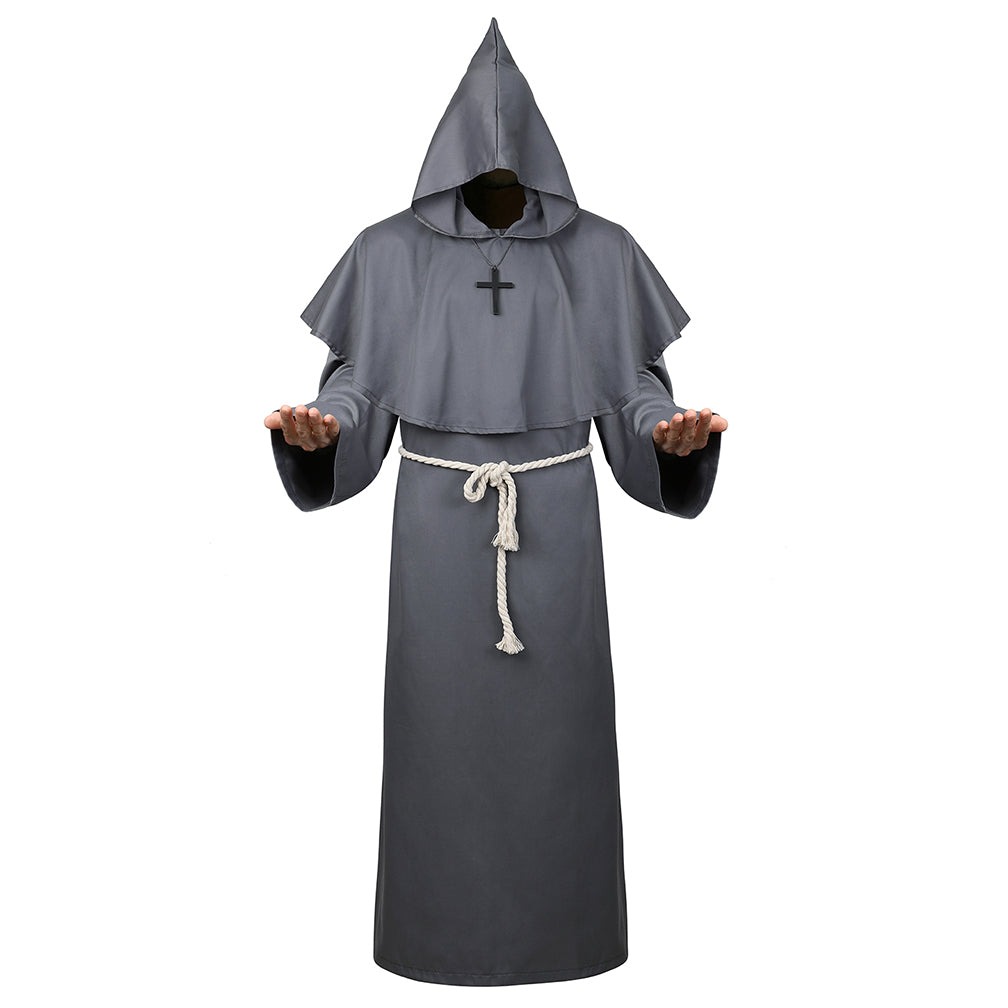 2. Priest costume men Includes a Hooded Robe, a Rope Belts and Wooden Cross Necklace.
