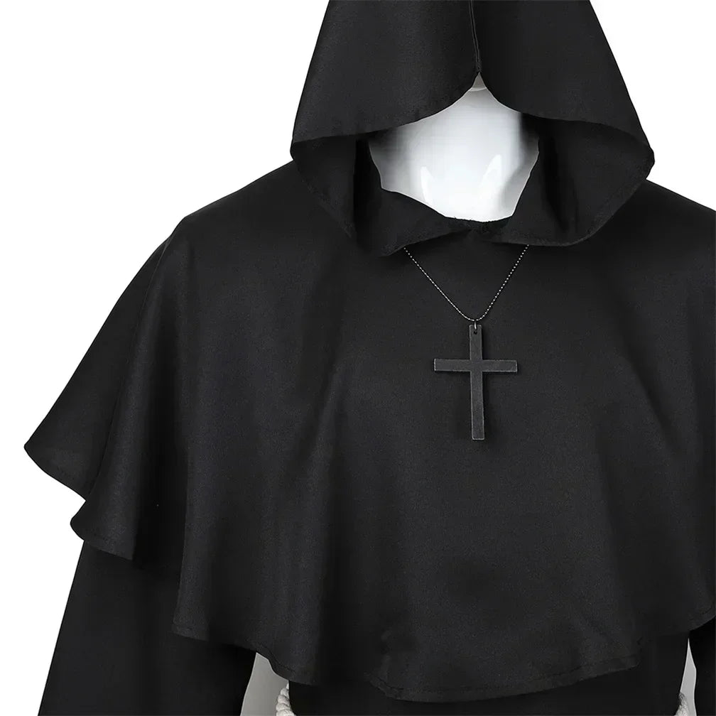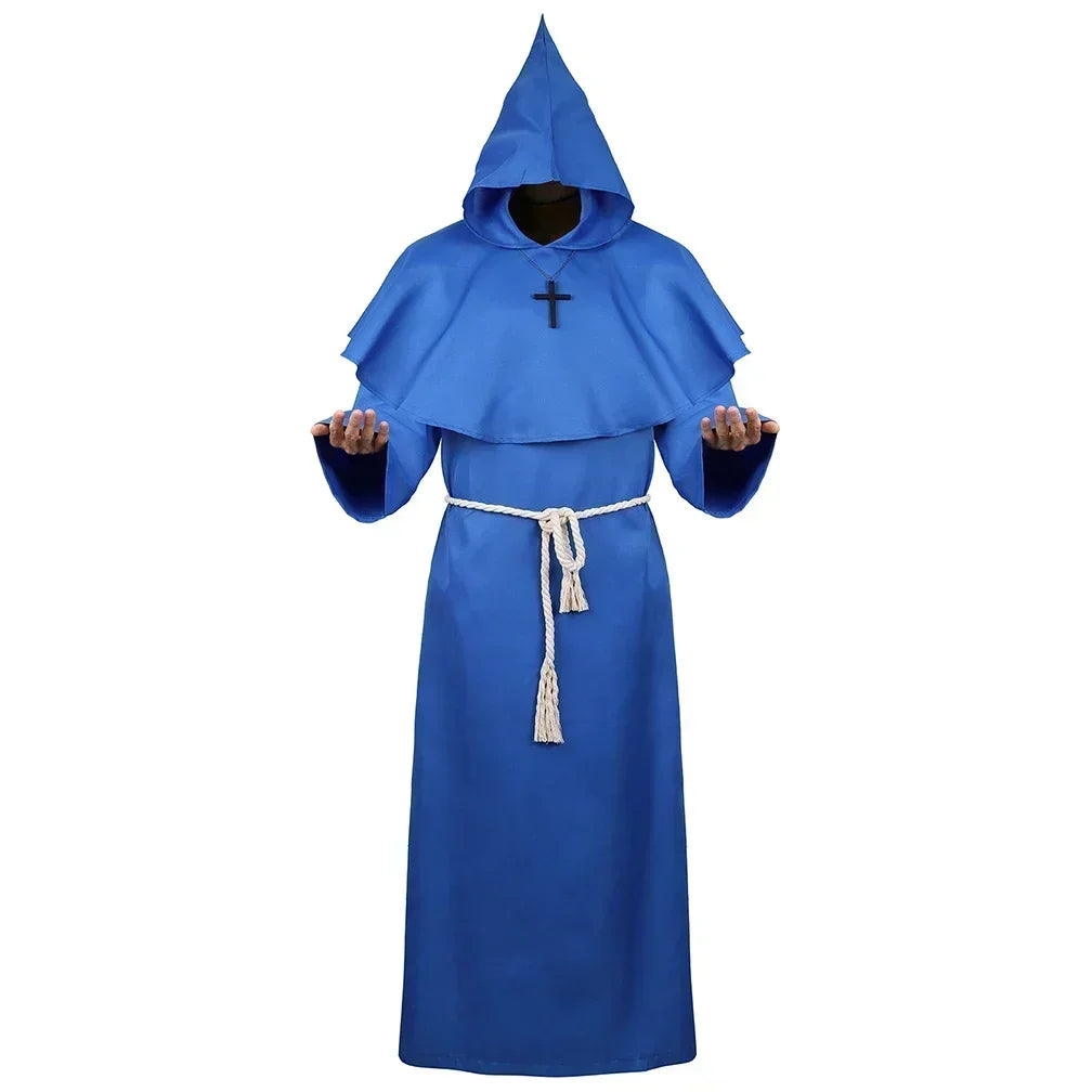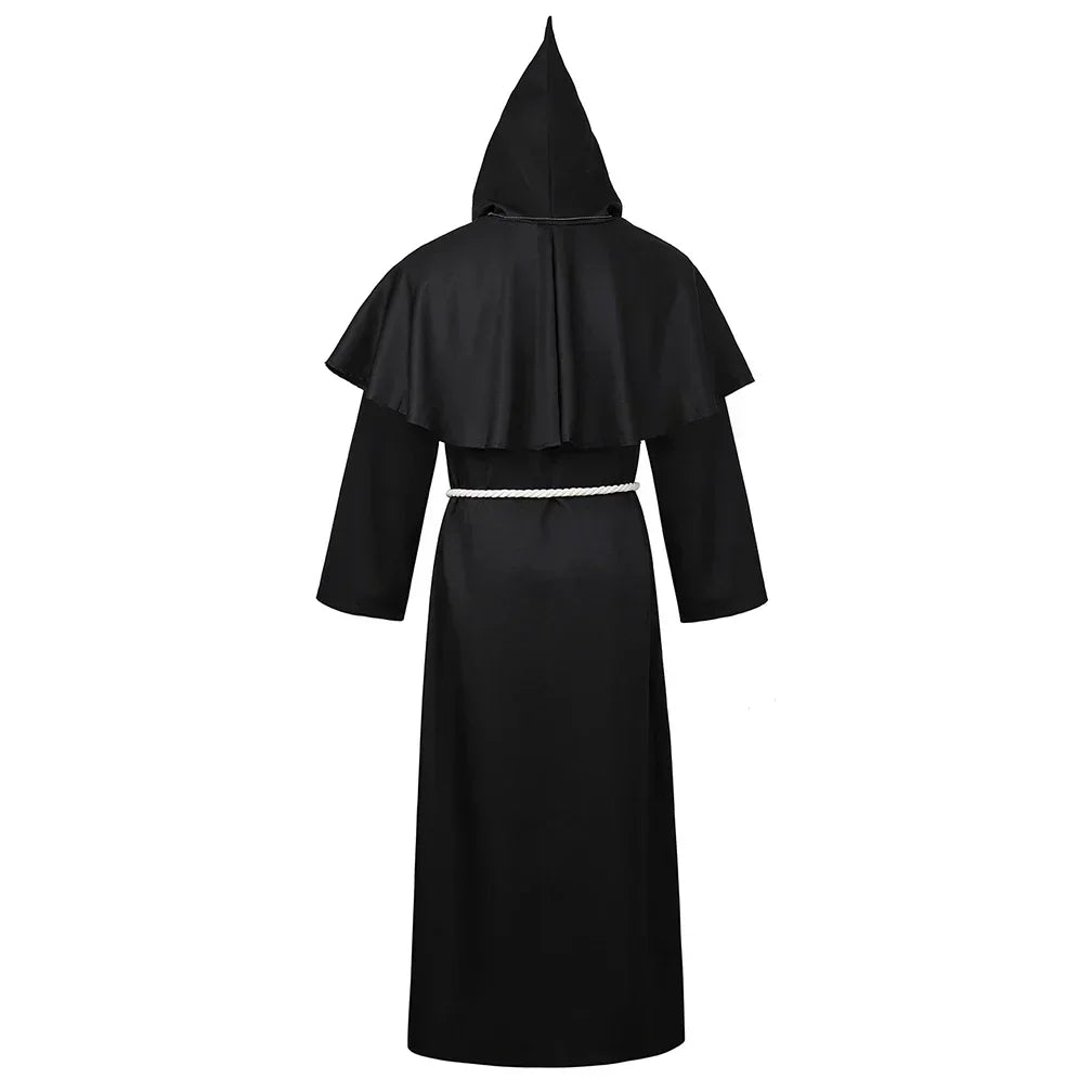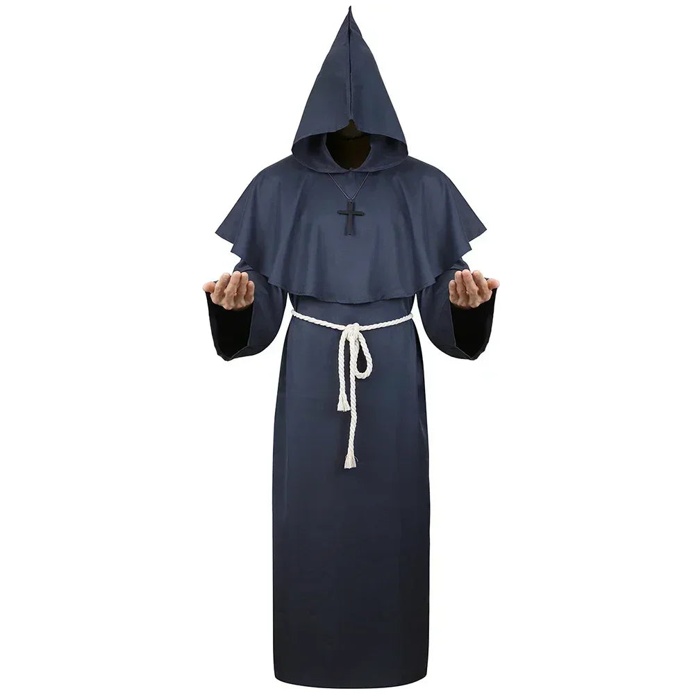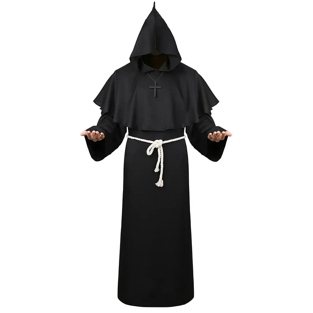2. Priest costume men Includes a Hooded Robe, a Rope Belts and Wooden Cross Necklace.