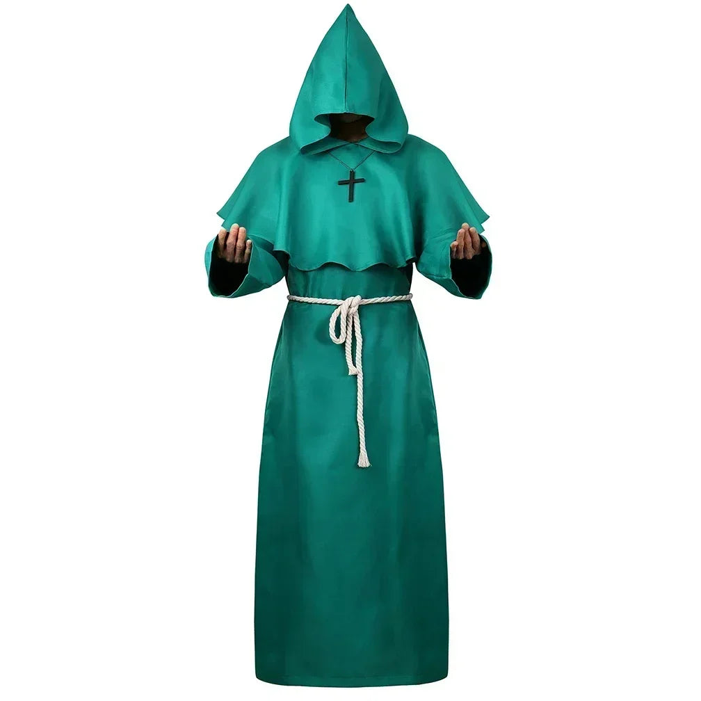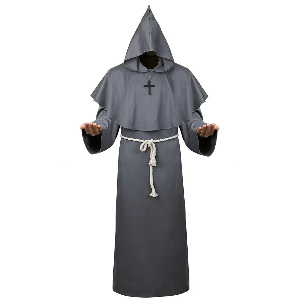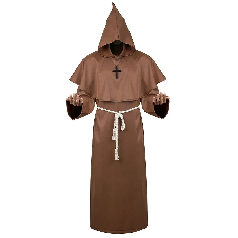 Monk Costume Medieval Friar Hooded Cap Cloak Renaissance Priest Robe Costumes Men Halloween Fancy Dress