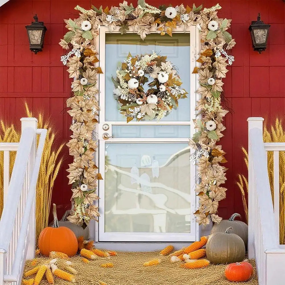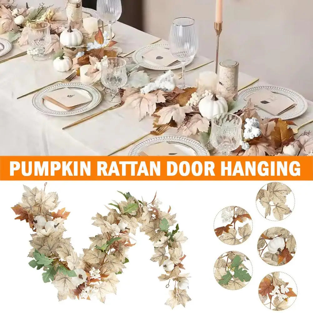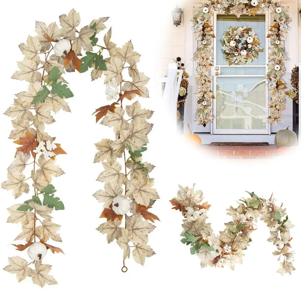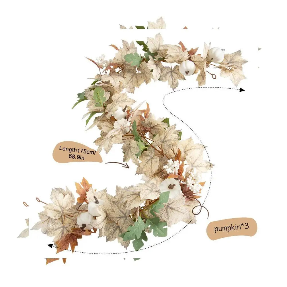 Fall Decoration 175cm Maple Leaf Pumpkin Berry Garland For Thanksgiving Halloween Christmas Festive Wall Hanging Fall Decoration