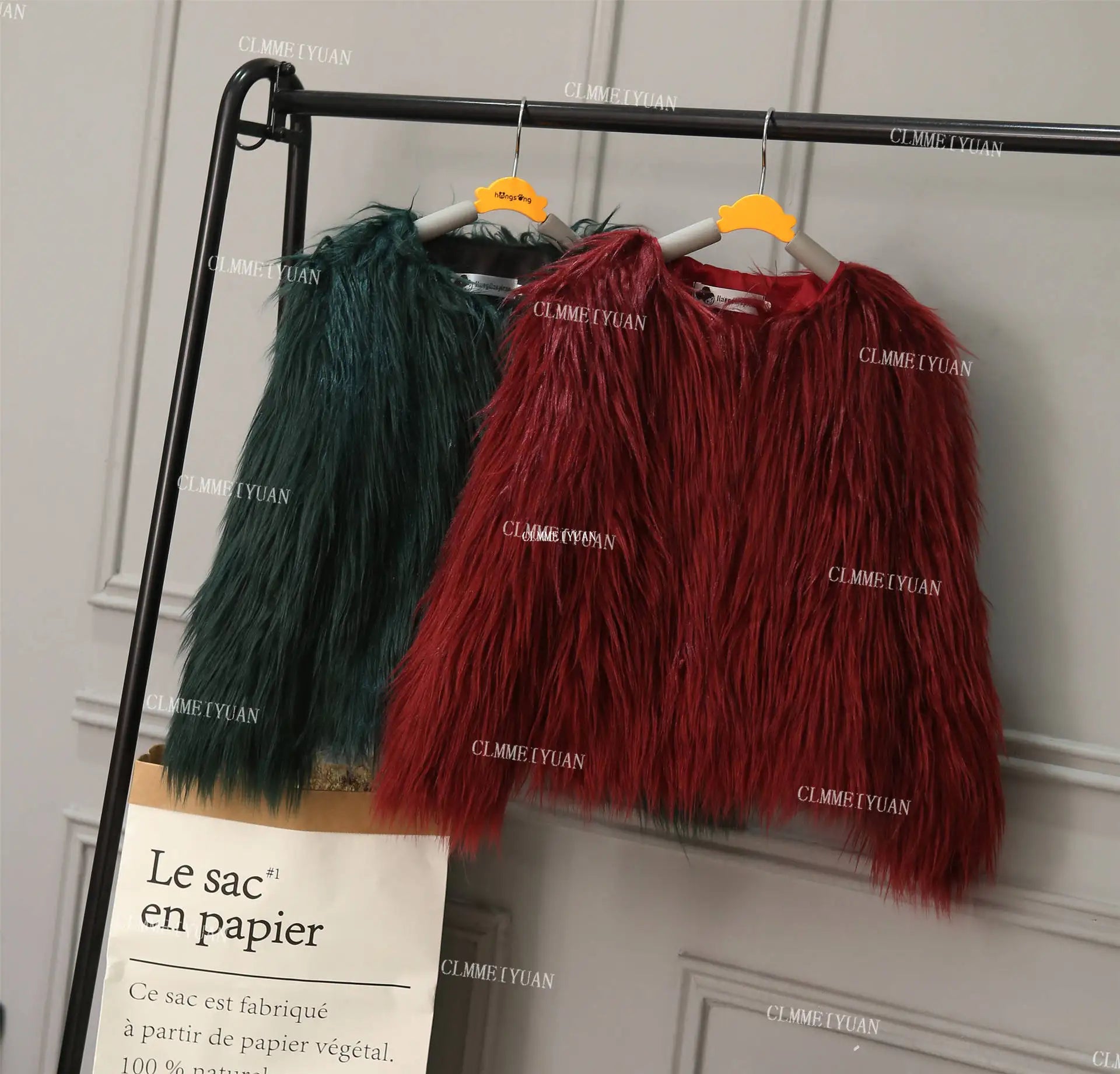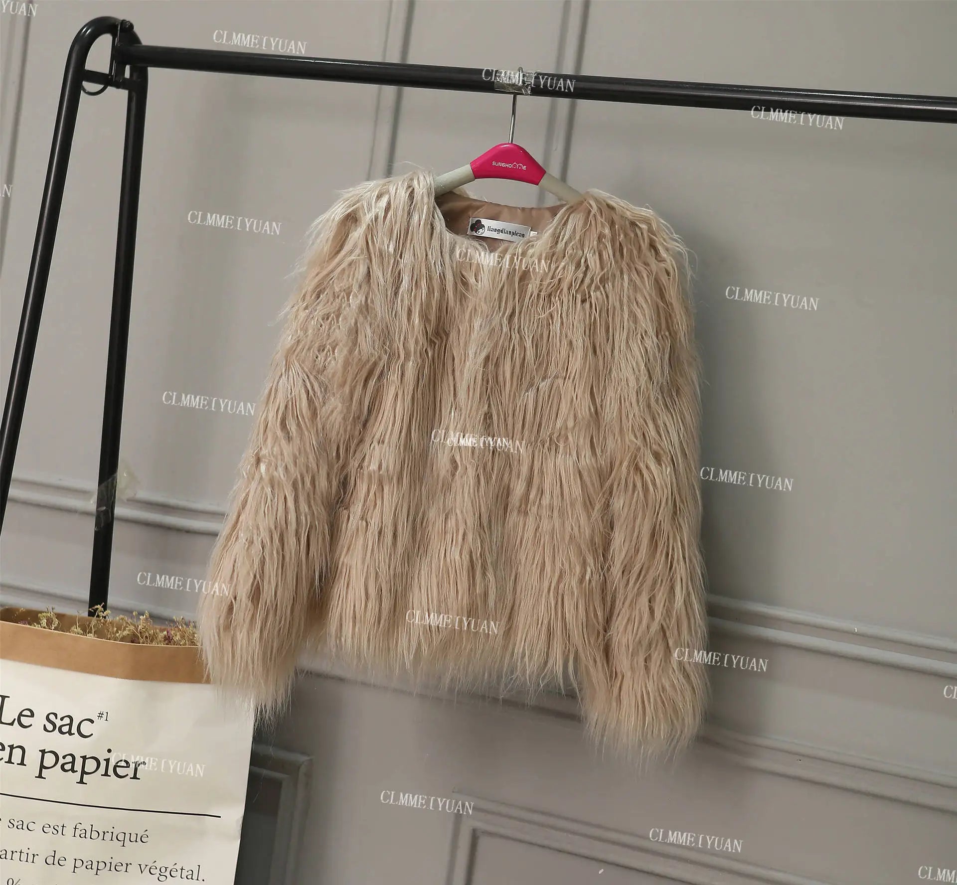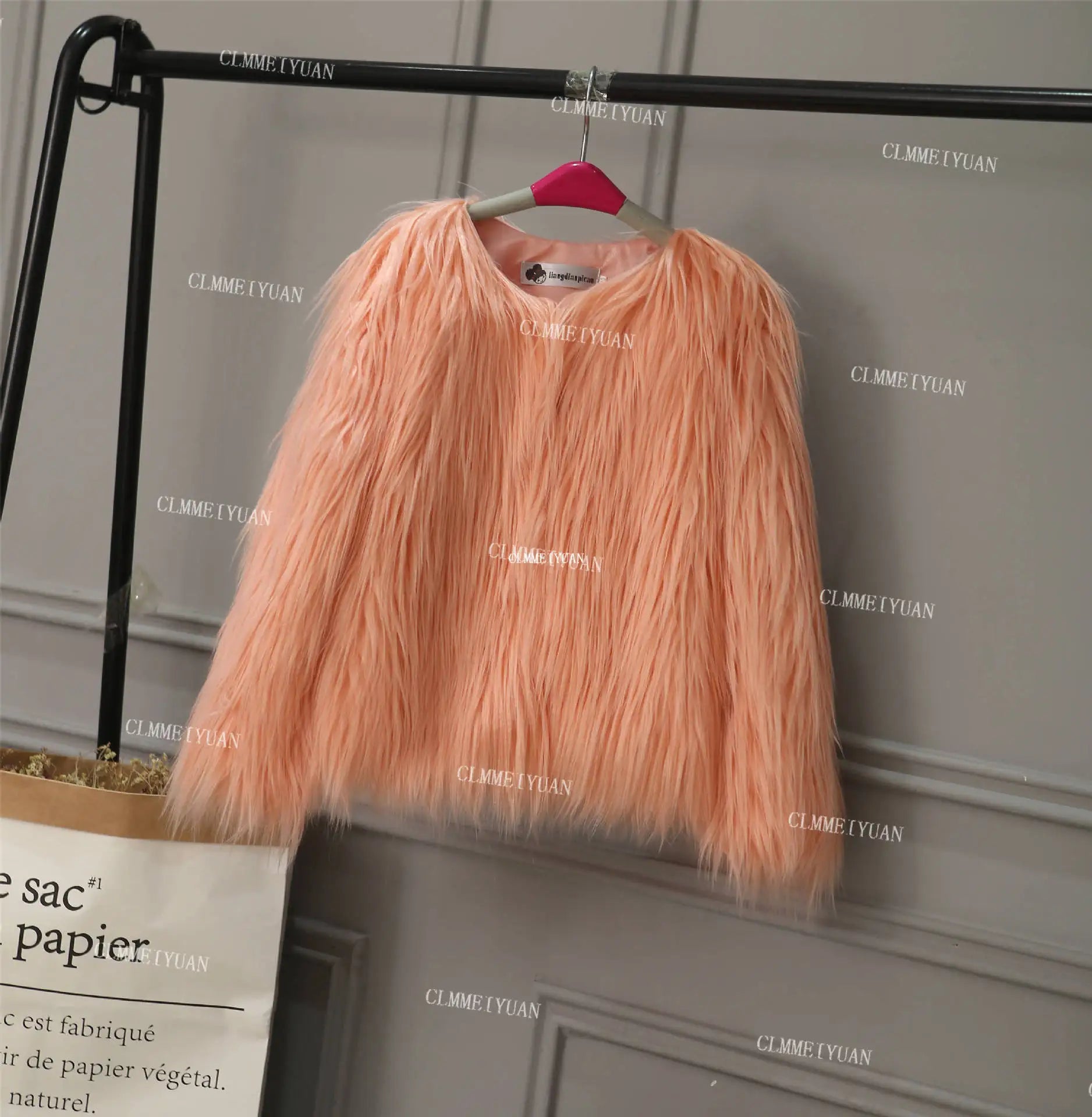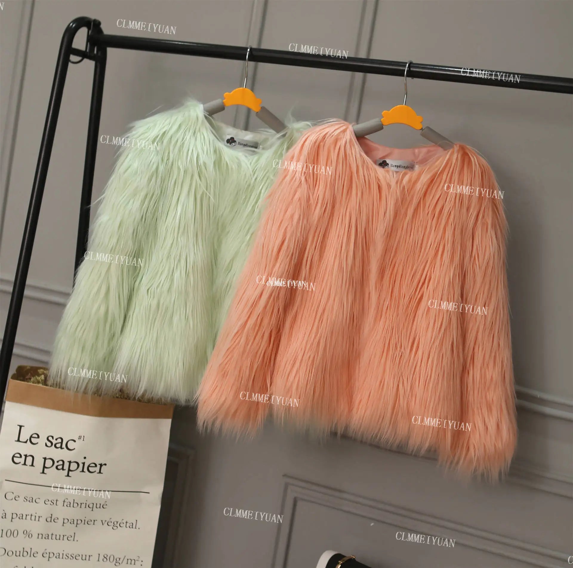 Fur Coat Children Girl Autumn Winter New Solid Color Round Neck Warm Go with Everything Fashion Casual Brief Active