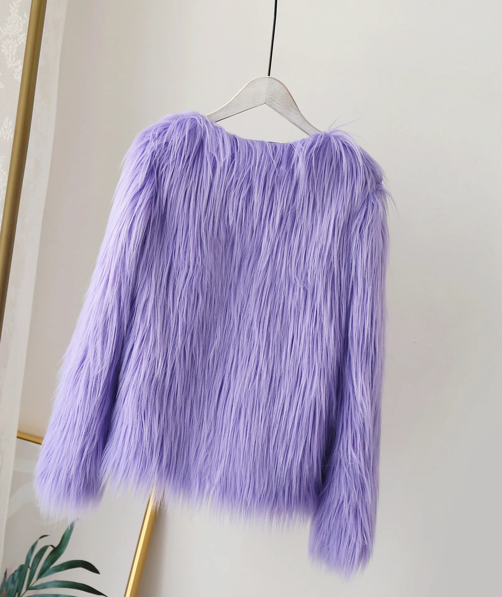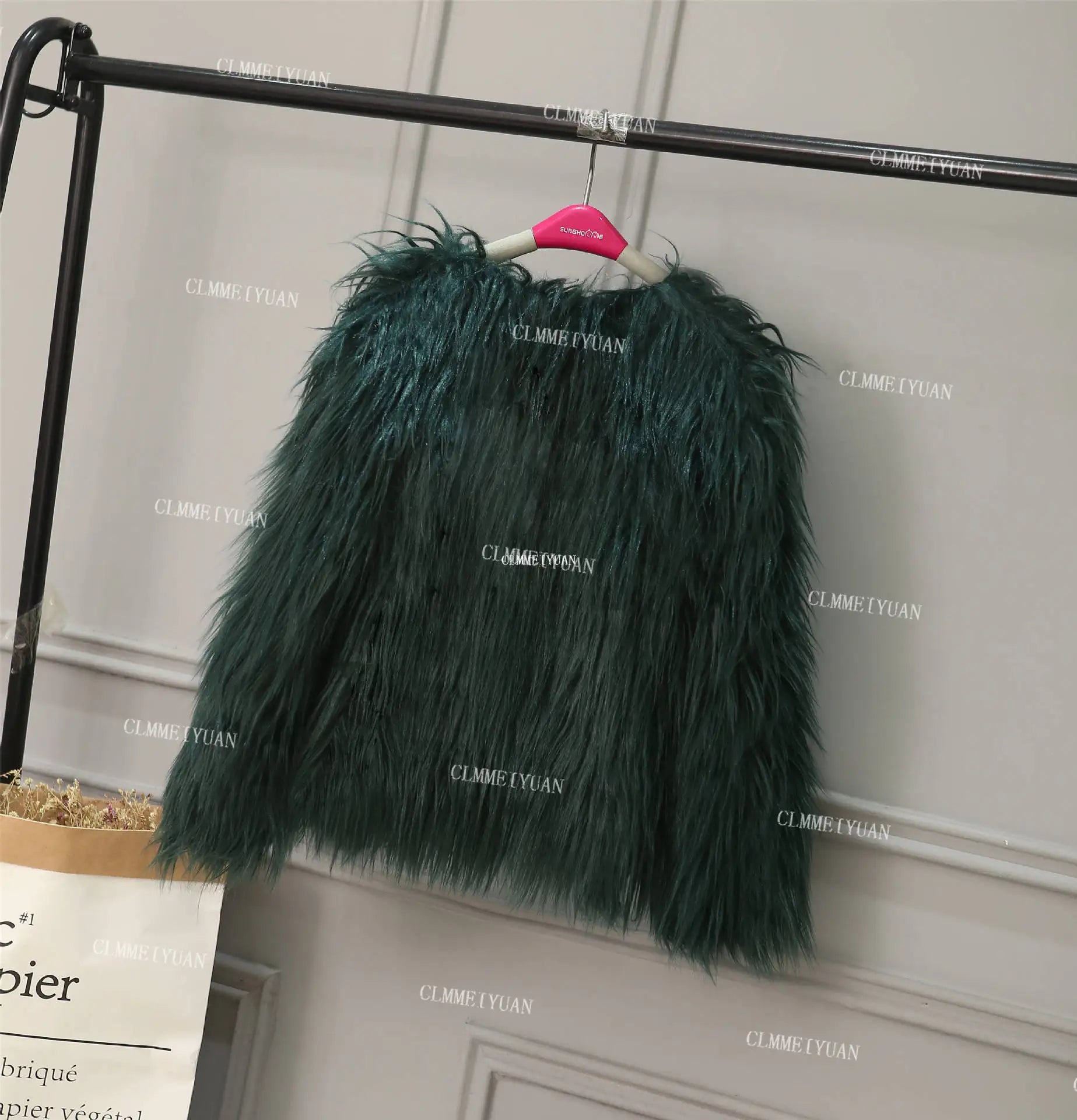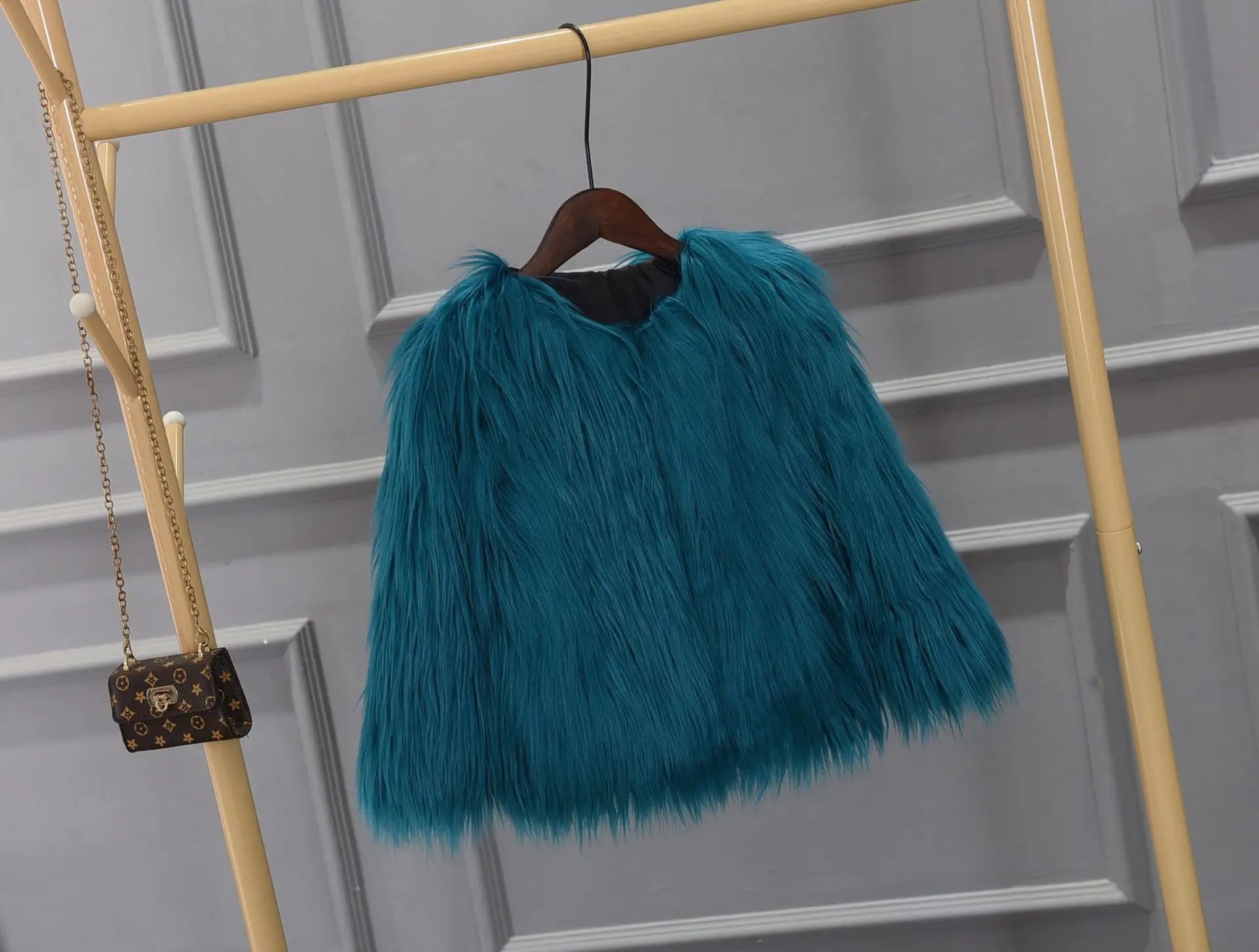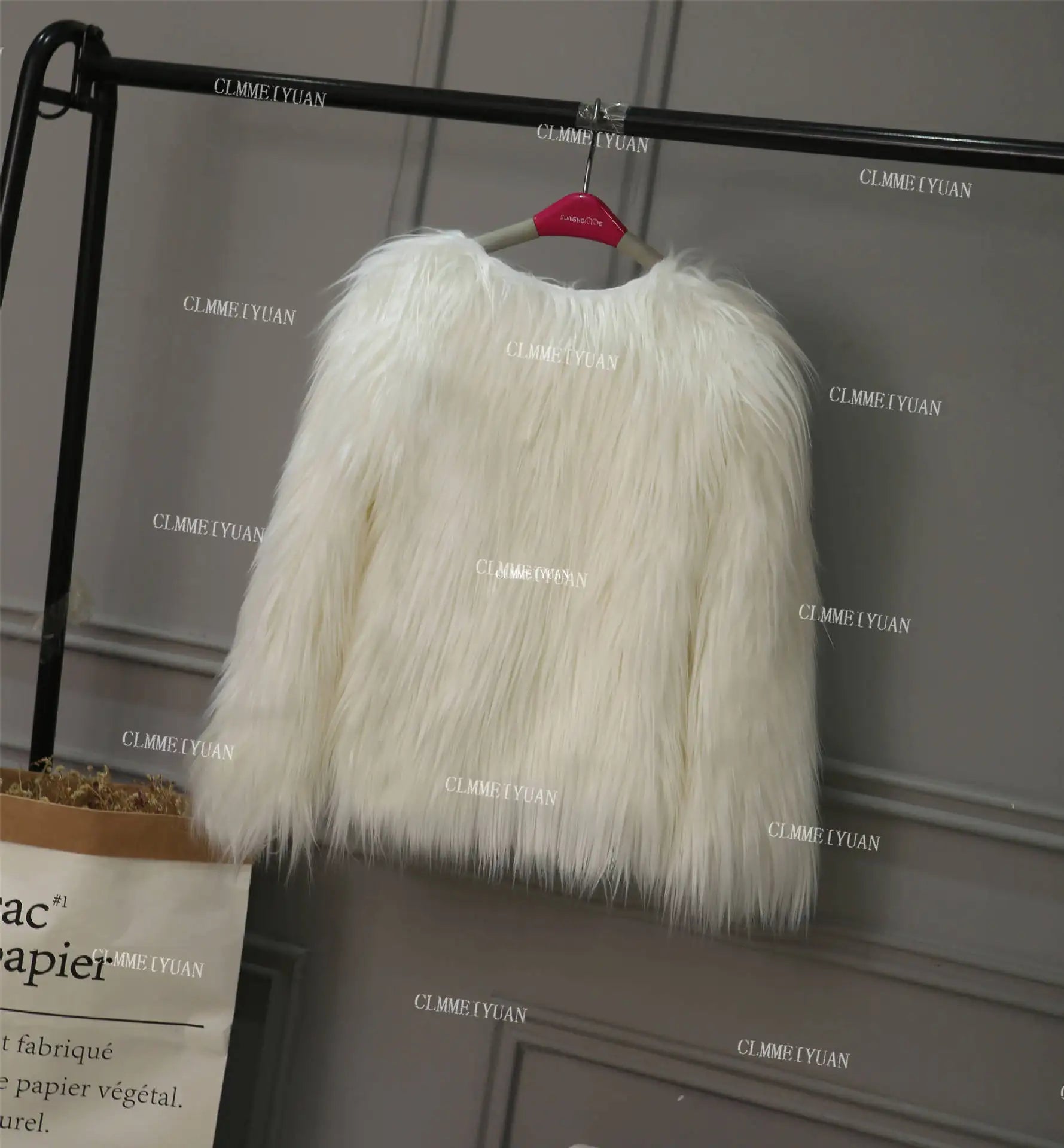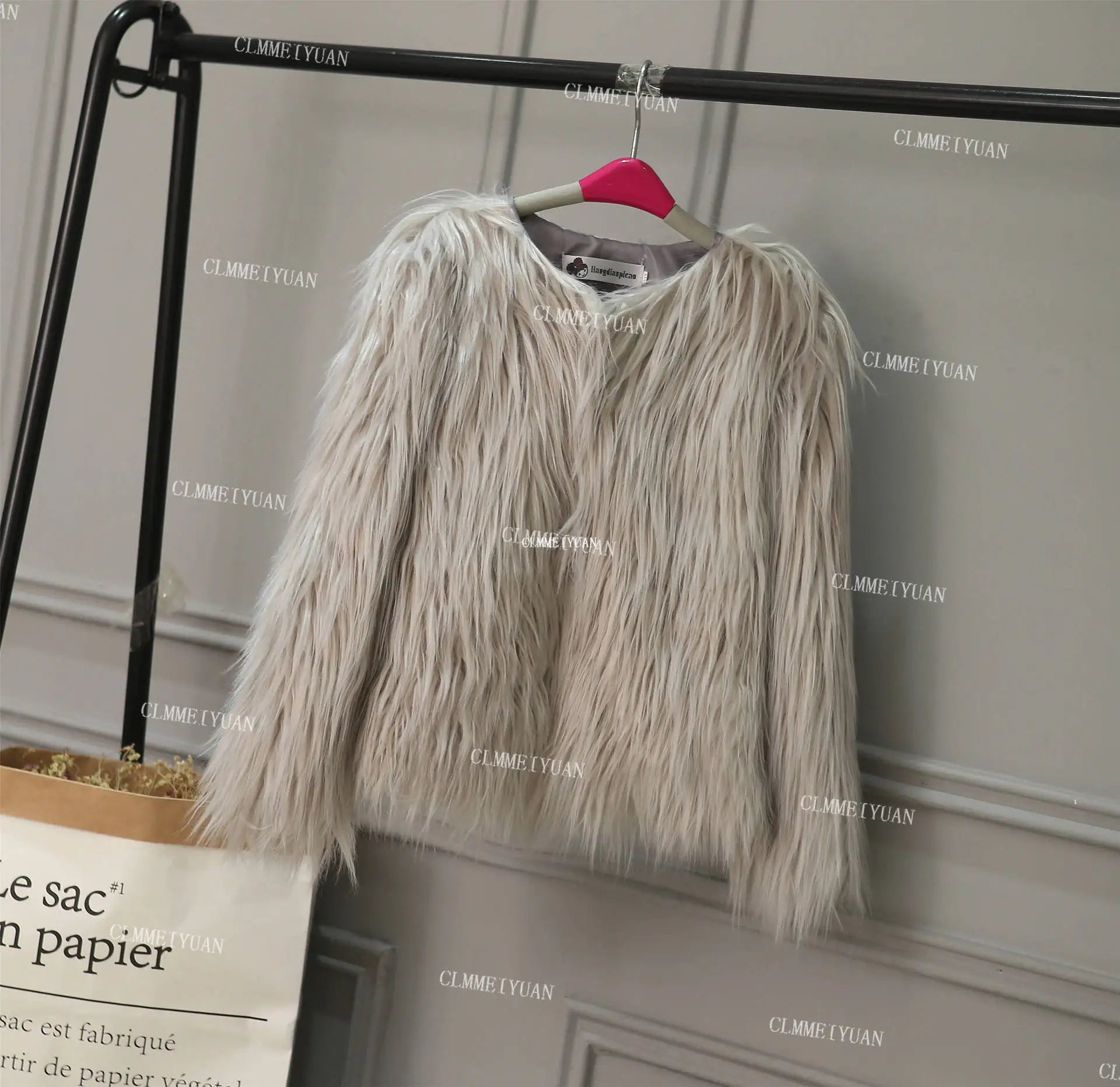 Fur Coat Children Girl Autumn Winter New Solid Color Round Neck Warm Go with Everything Fashion Casual Brief Active