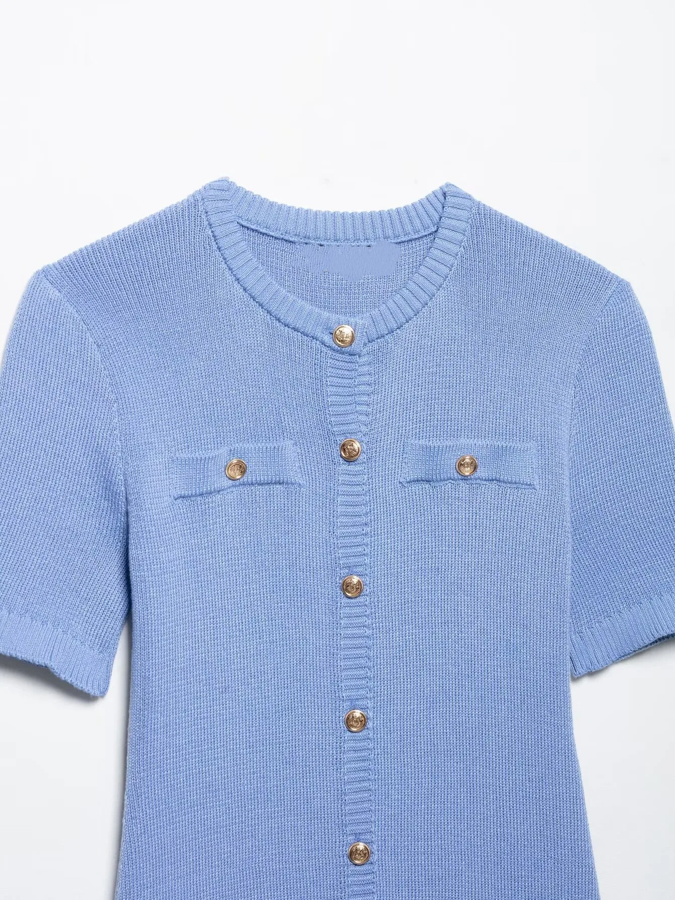 Women's clothing 2025 summer new European and American style fashionable casual front button rib knitted dress