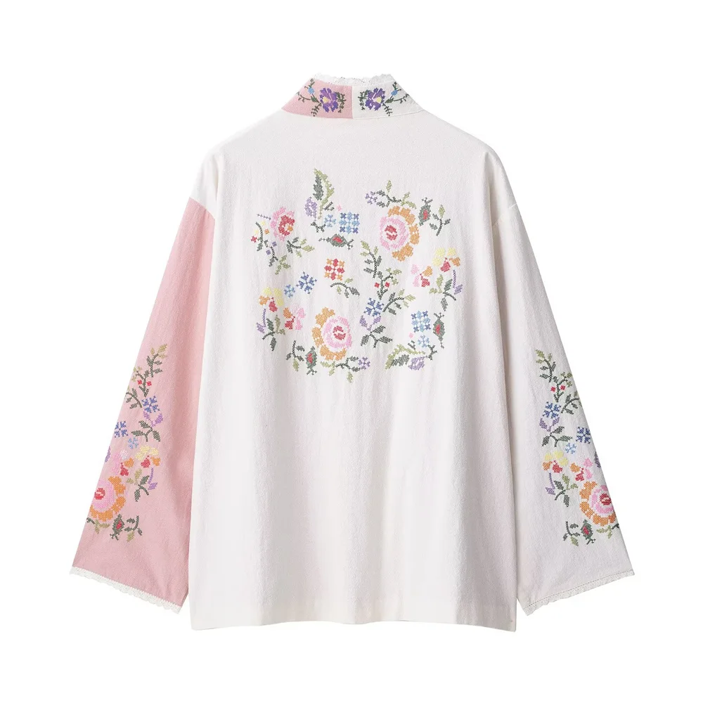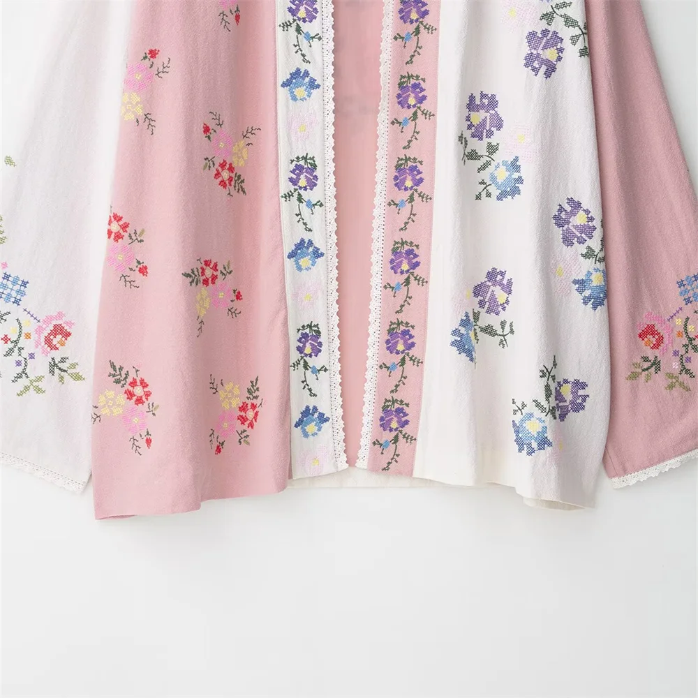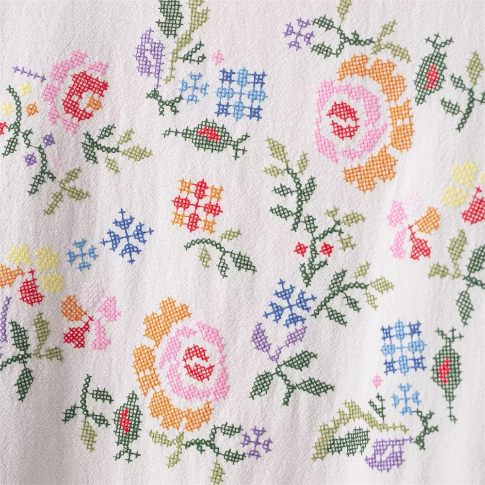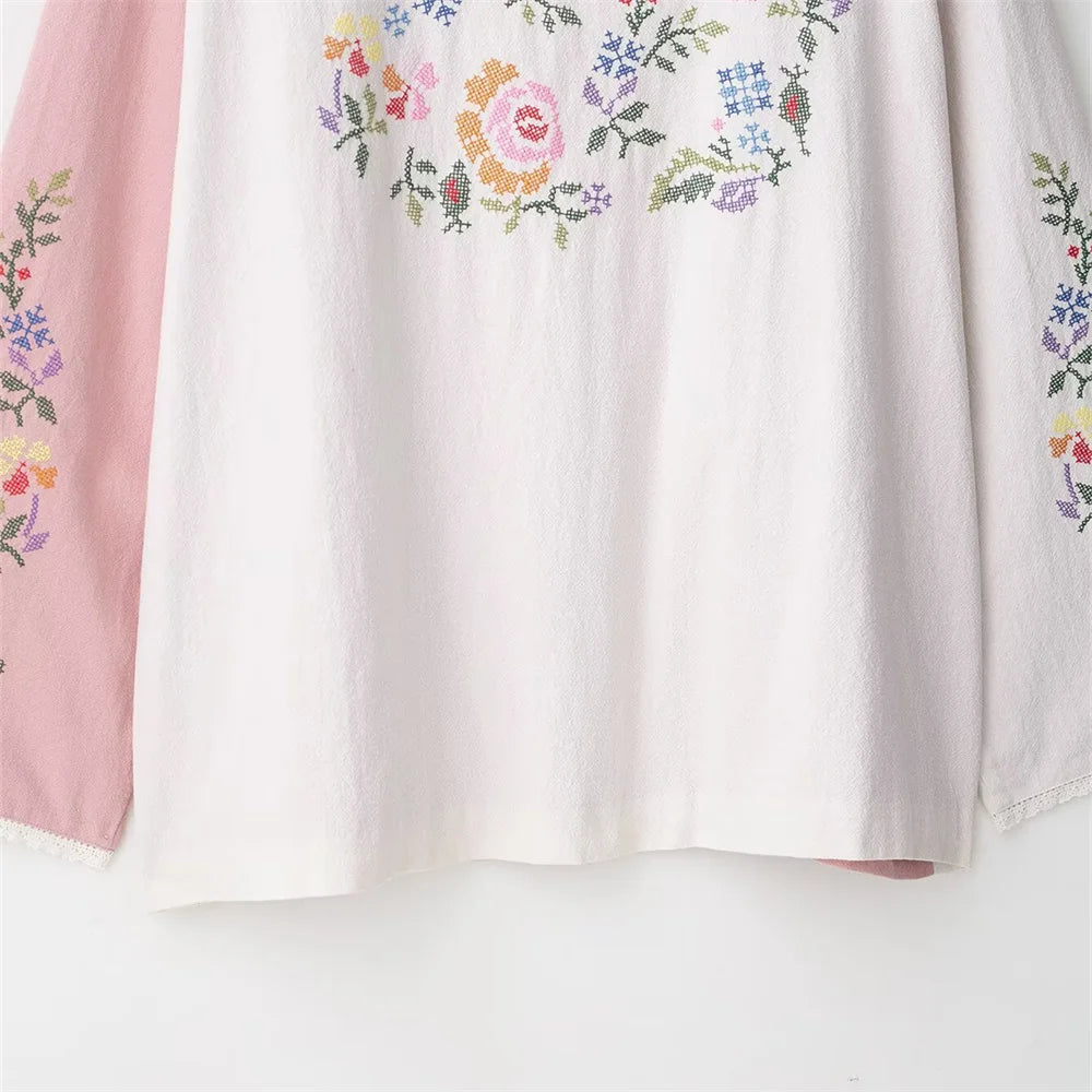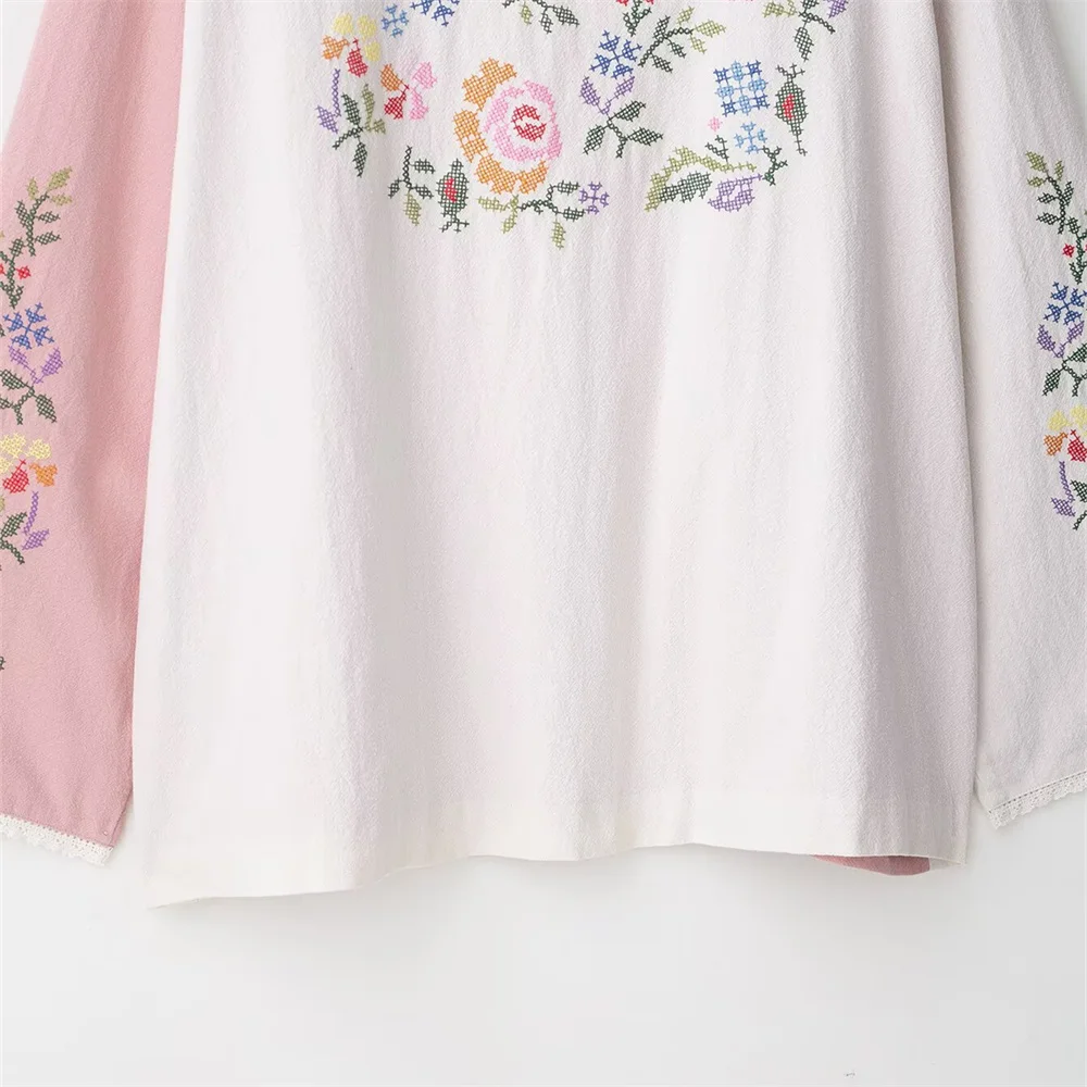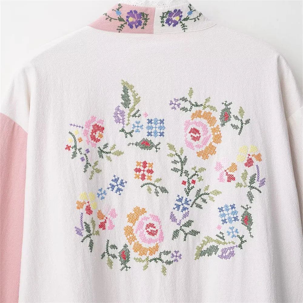 women's clothing new product casual temperament simple V-neck long sleeved flower embroidered long shirt