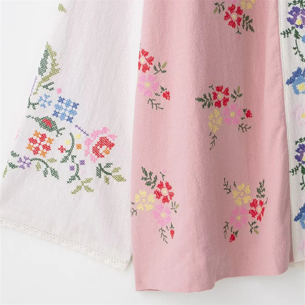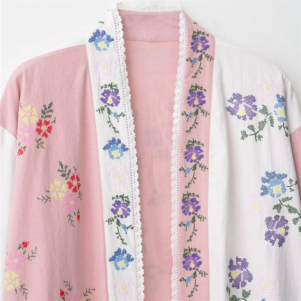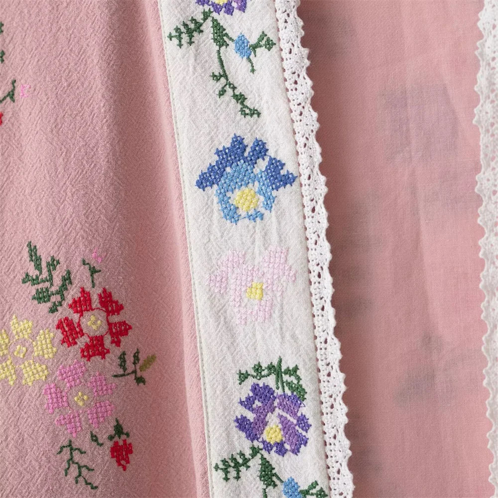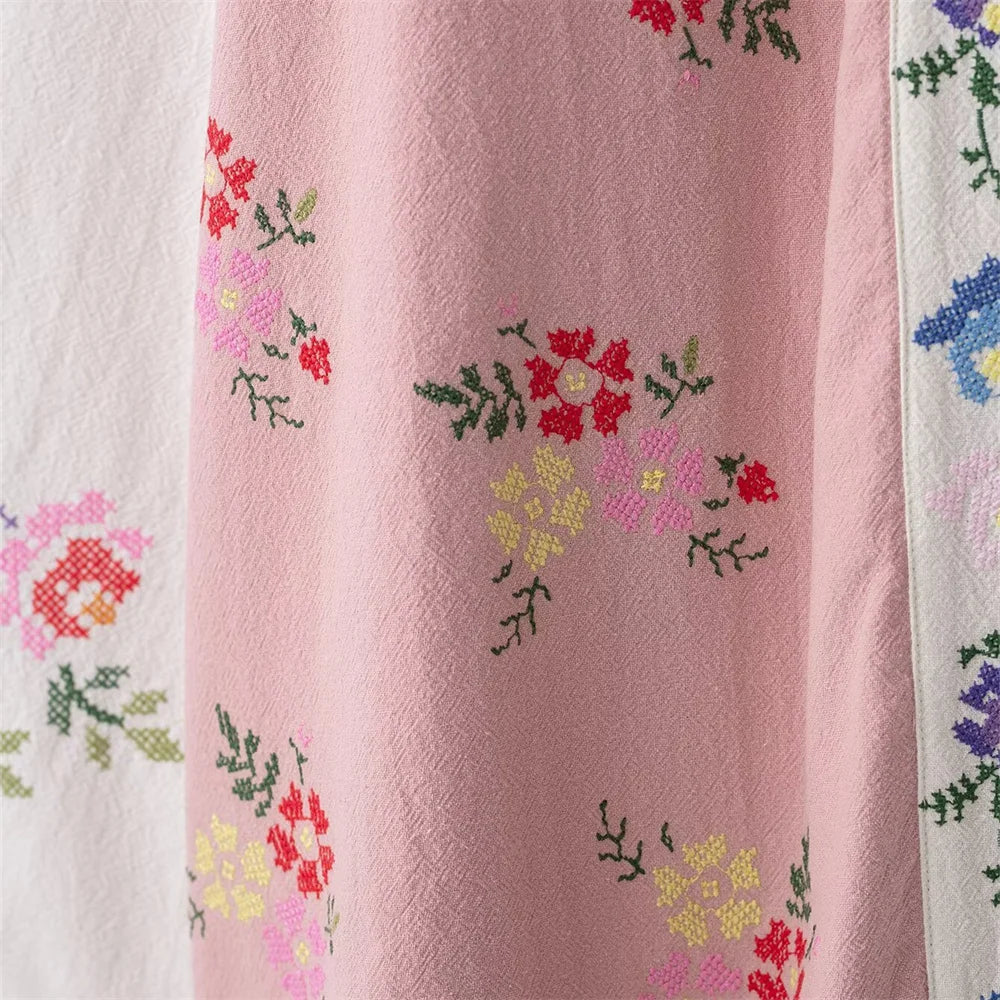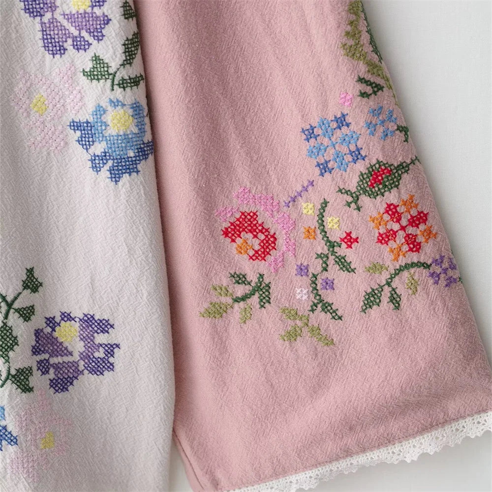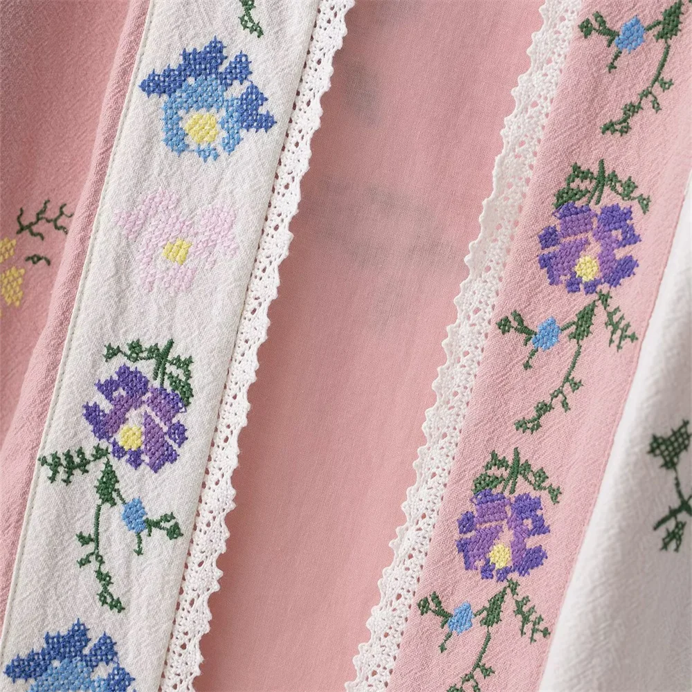 women's clothing new product casual temperament simple V-neck long sleeved flower embroidered long shirt