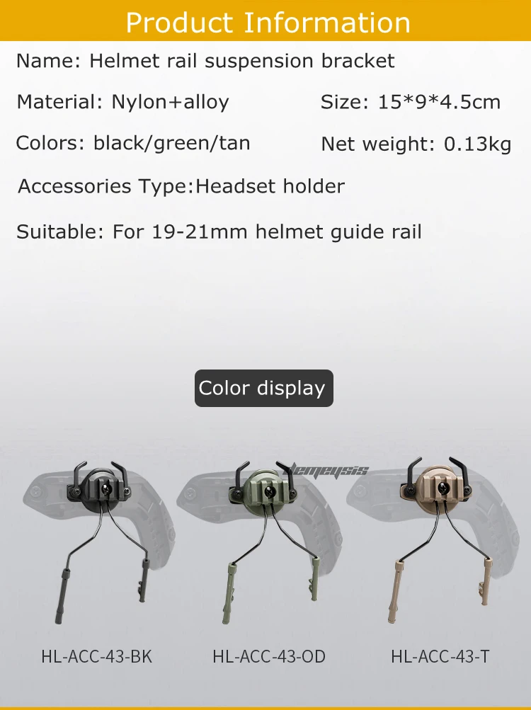 Tactical Helmet Accessories Airsoft Headset Holder Fast Helmet Rail Adapter Set Adjustable Rail Suspension Bracket