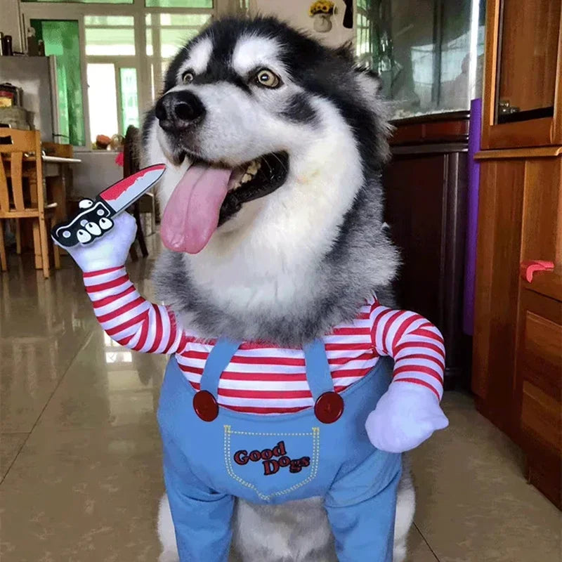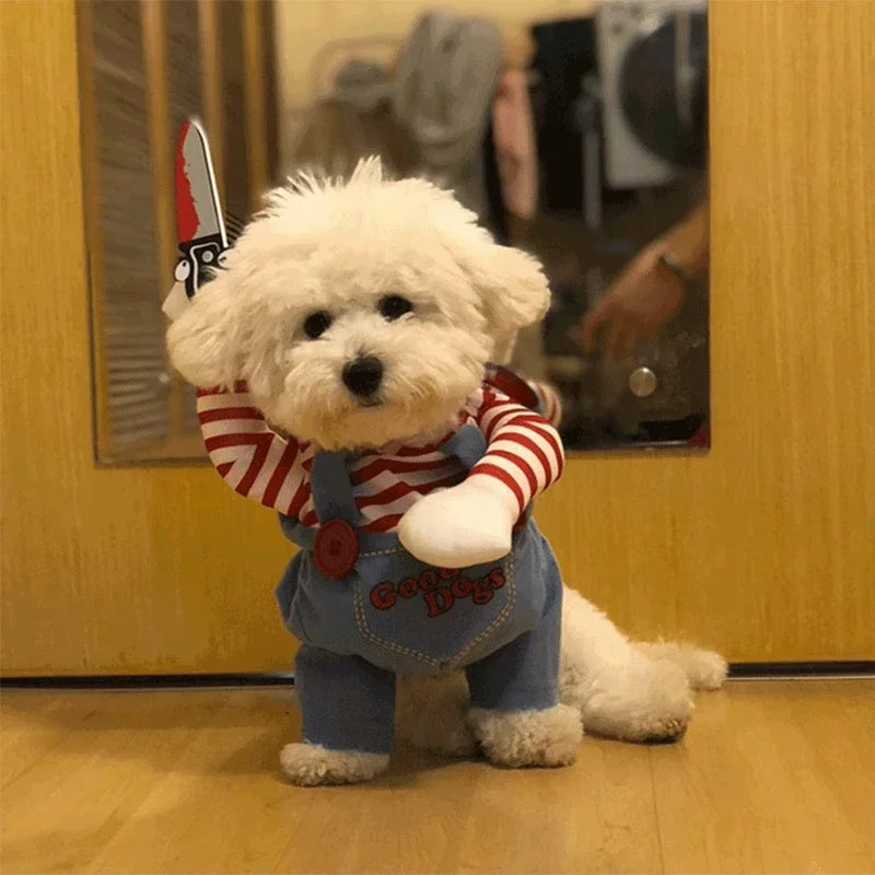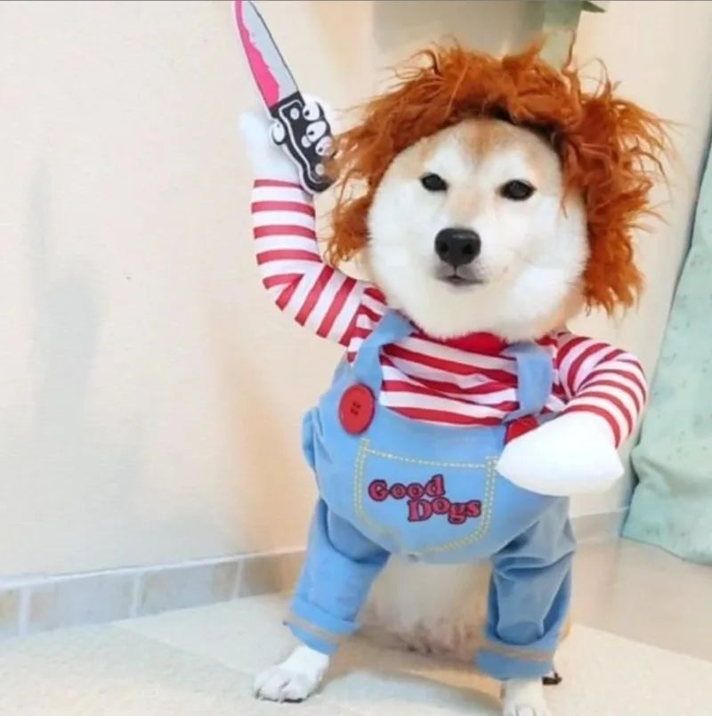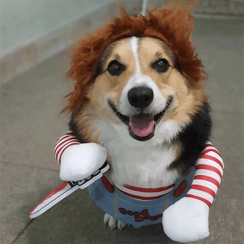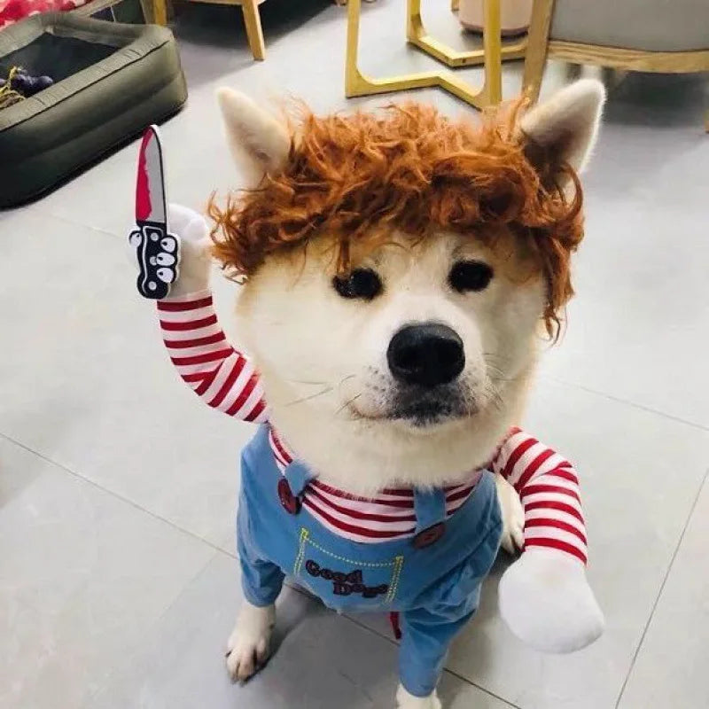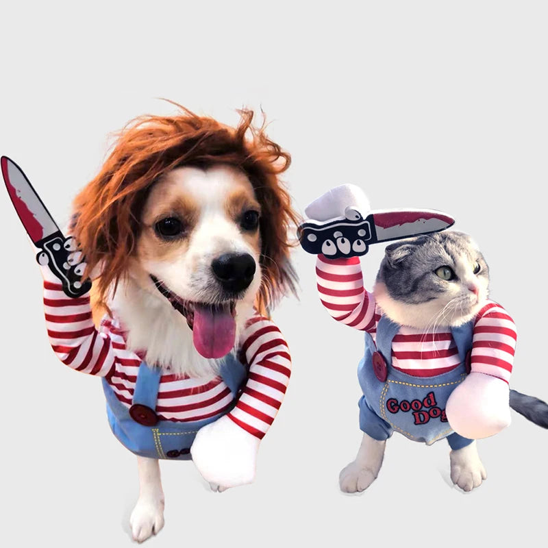 Pet Funny Costume Halloween Dog Cat Clothes Chucky Deadly Doll Cosplay Party Apparel Clothing Fancy Festival Cloth Cat Clothes