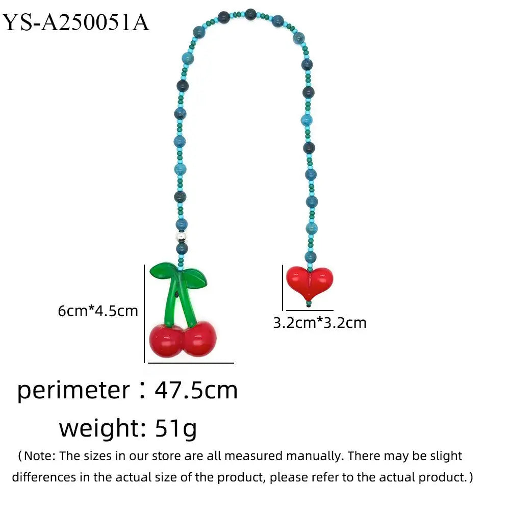Fashion Cute Cherry Bag Charms For Women Y2K Red Love Bag Pendant Handmade Bead Chain Keychain Luxury Bag Ornaments Jewelry Gift