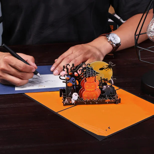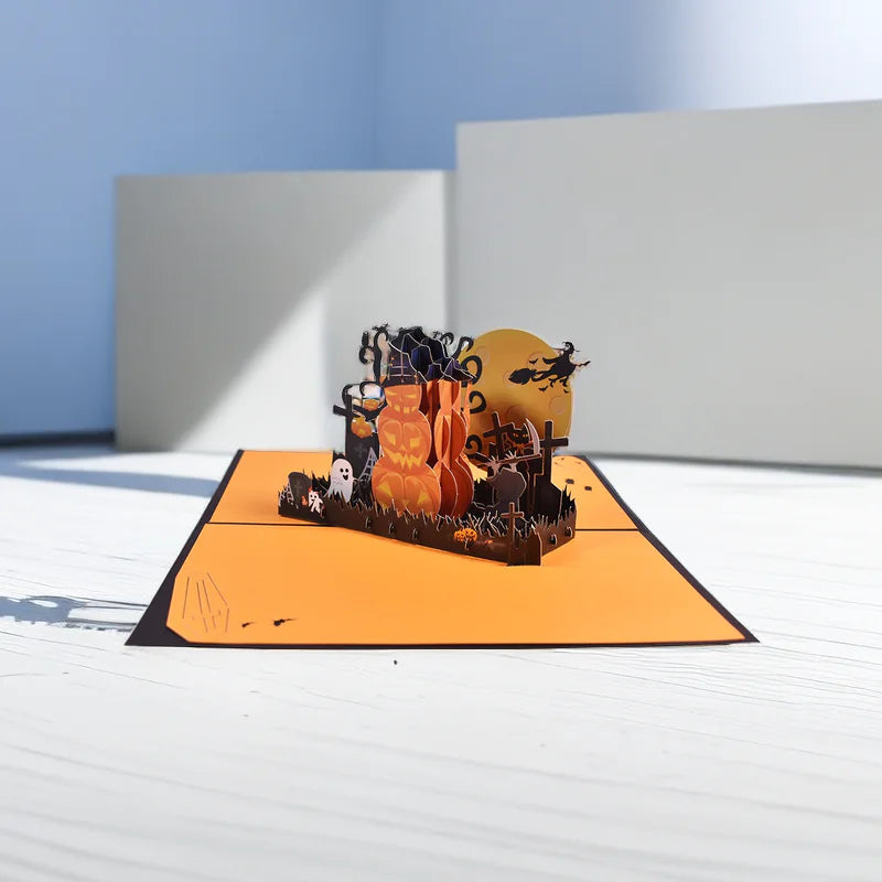Celebrate the spirit of the holidays with our New Year Halloween Pumpkin Greeting Card. This exquisite card is not just a greeting; it's a heartfelt expression of festive joy and creativity. Crafted from high-quality cardboard, it showcases a handmade design that adds a personal touch to your holiday wishes. The 3D three-dimensional effect brings the pumpkin to life, making it a perfect addition to any celebration, whether you're sending warm wishes for New Year or inviting friends to a Halloween gathering. Its simple and modern style ensures it will appeal to all ages and tastes. New Year Halloween Pumpkin Greeting Card