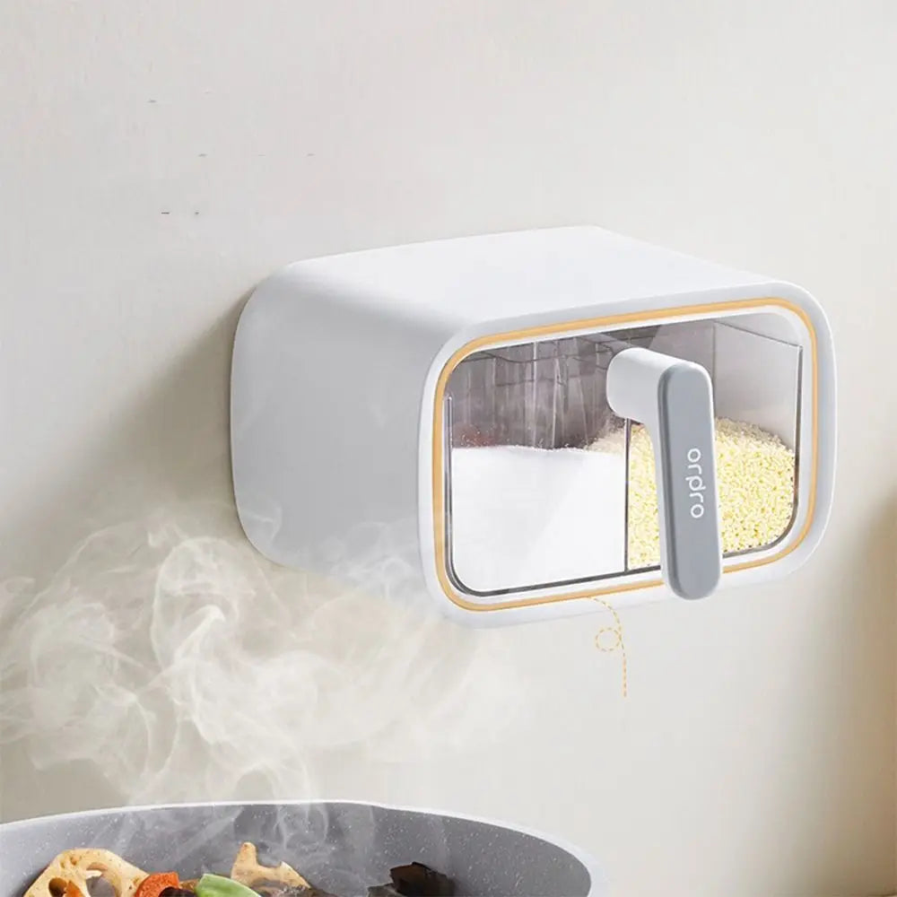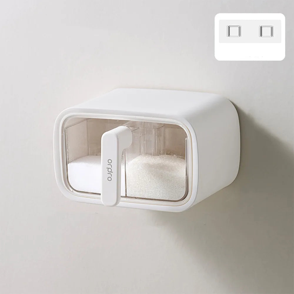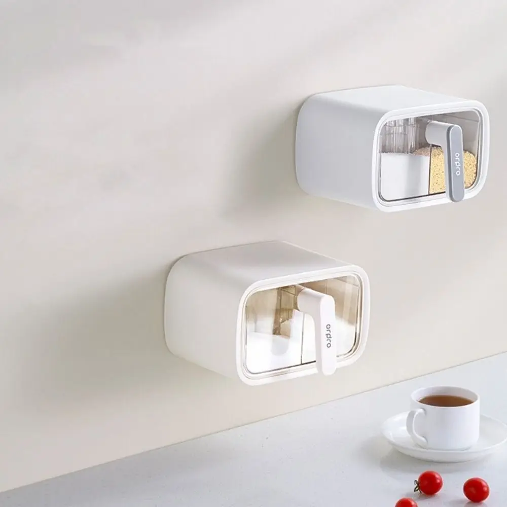Wall Mount Seasoning Storage Box Seal Moisture-proof Clear Seasoning Container Non Perforated with Spoon Spice Boxes