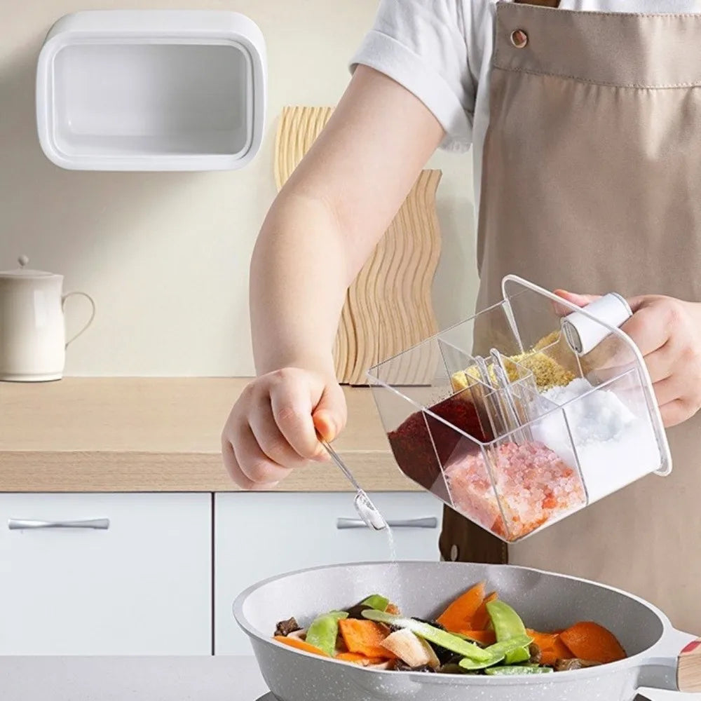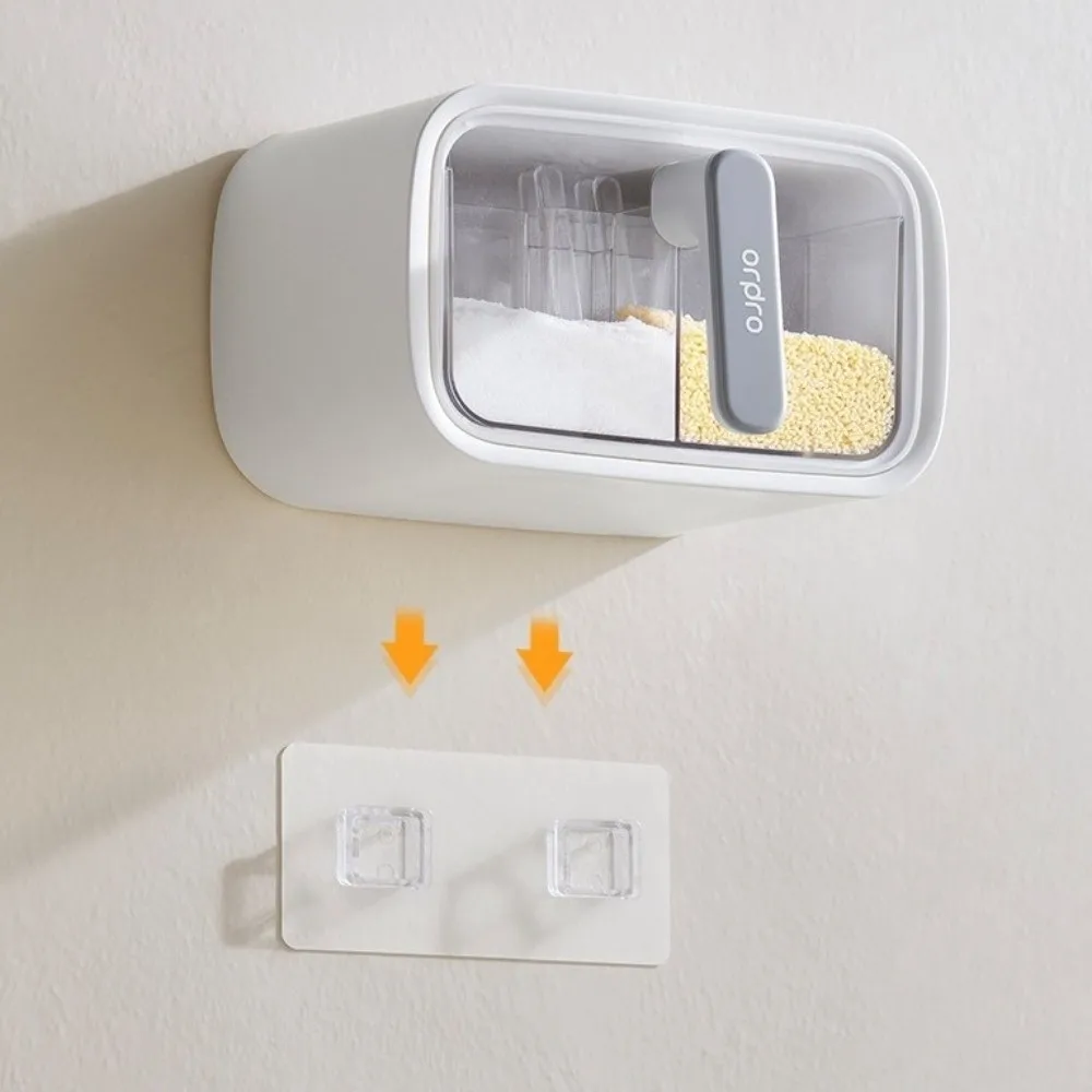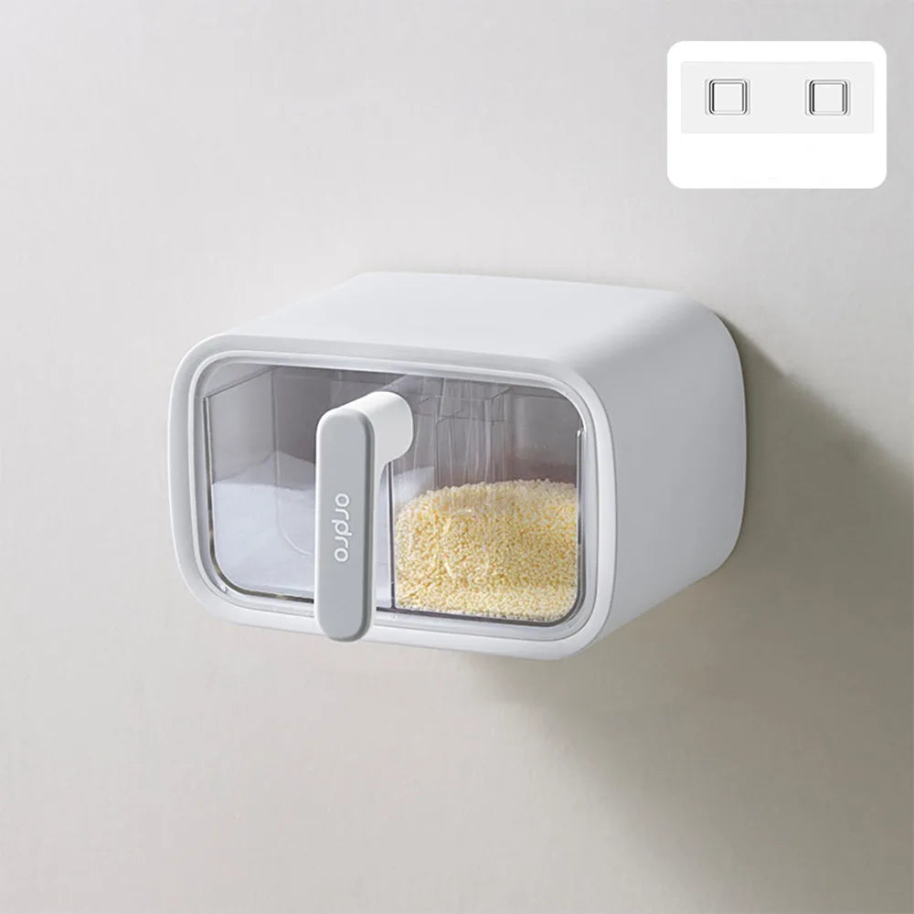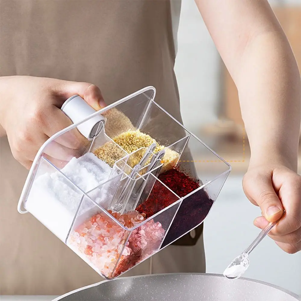 Wall Mount Seasoning Storage Box Seal Moisture-proof Clear Seasoning Container Non Perforated with Spoon Spice Boxes