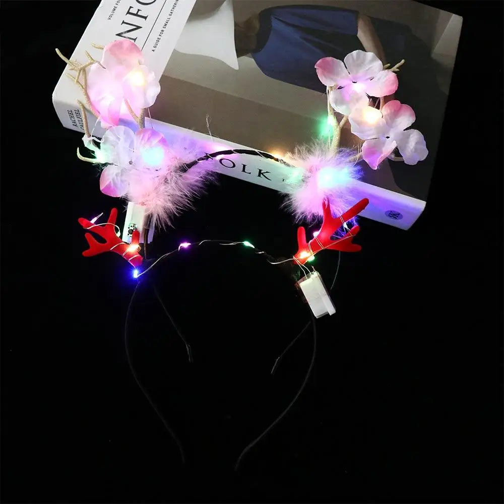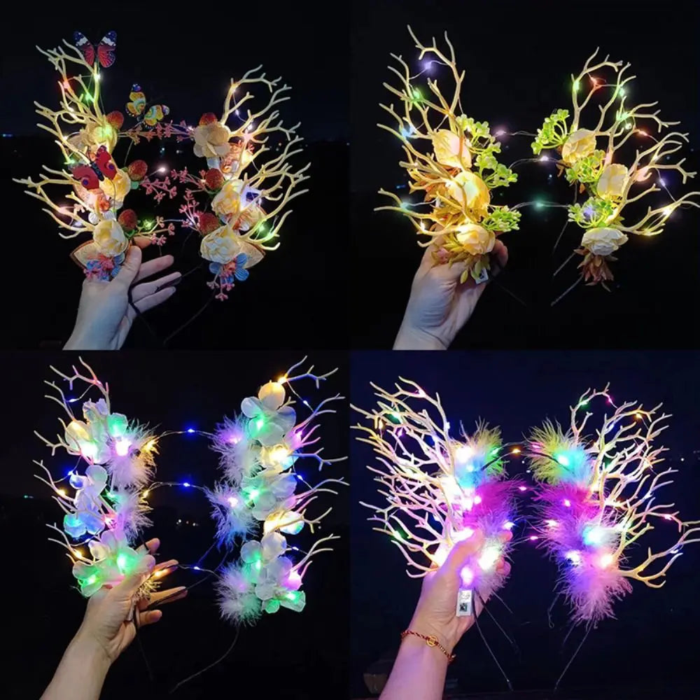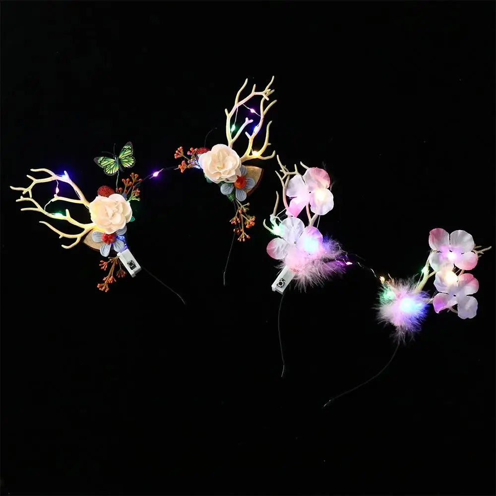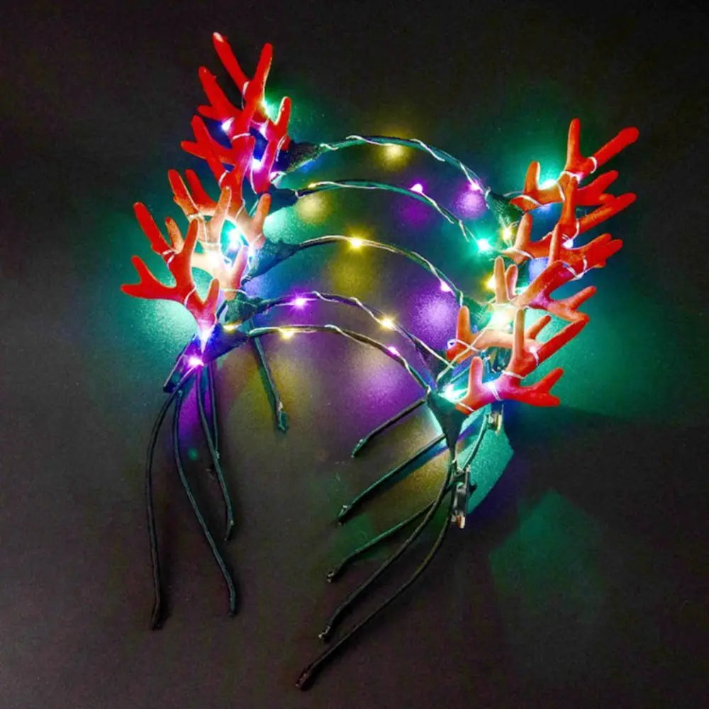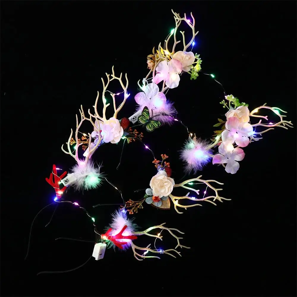 LED Lights LED Glow Headband Plastic Colorful Flashing Headband Luminous Resin Luminous Deer Horn Hair Band