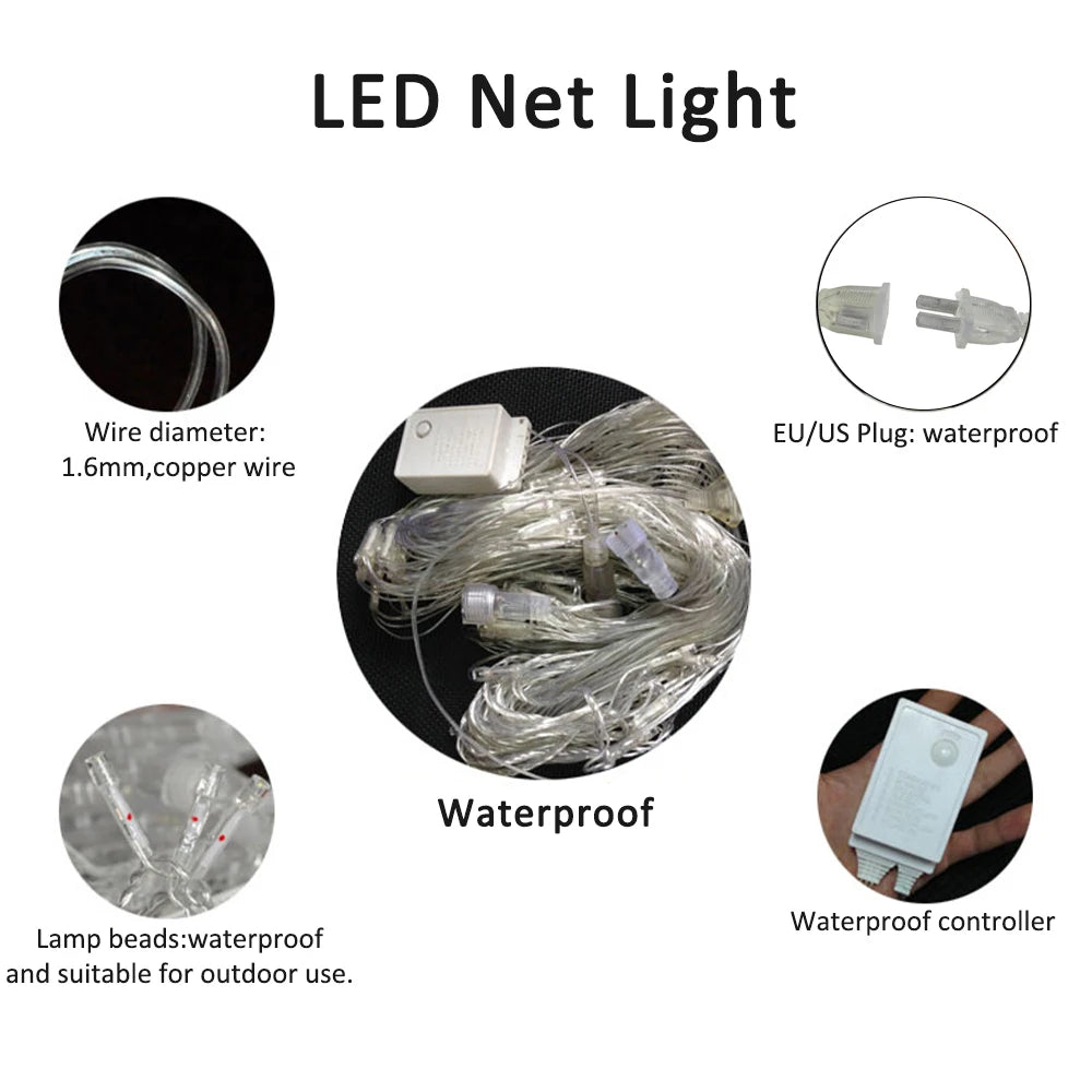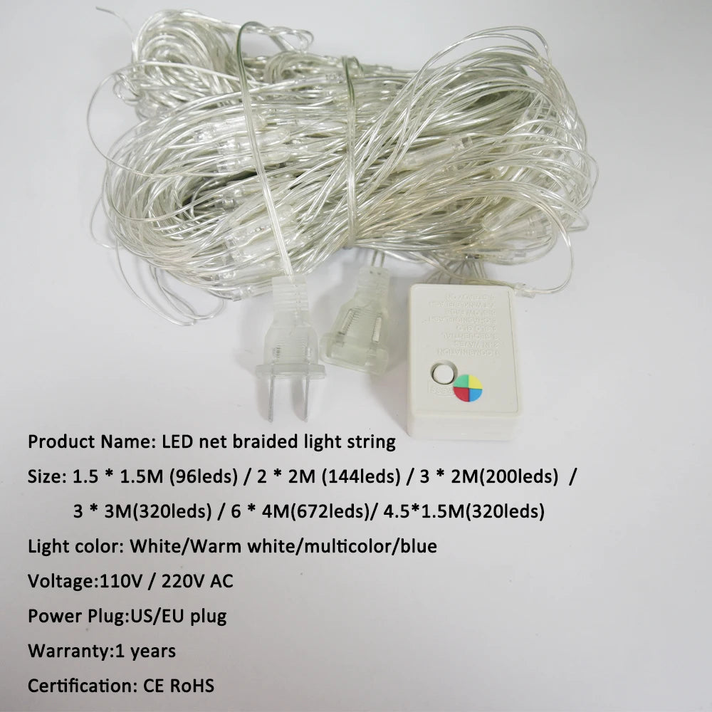 LED Net Mesh Light 110V 220V Curtain String Lights Fairy Lamp Christmas Wedding Party Holiday Outdoor Decor Lighting 3x2M 6x4M