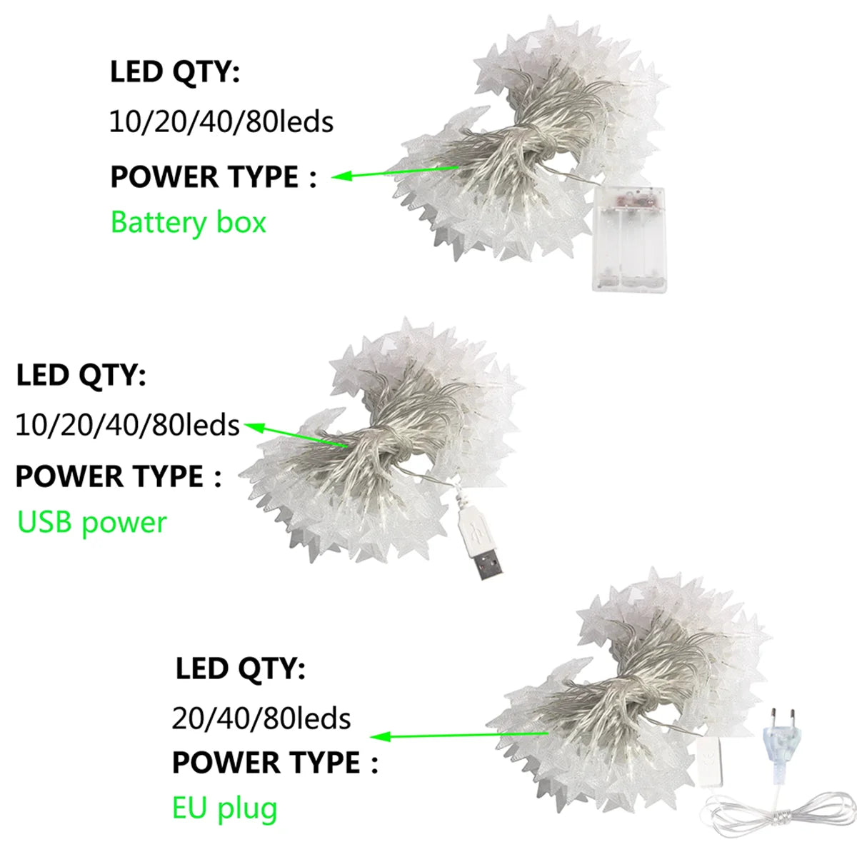 LED Star Fairy Lights Chain Battery/USB Powered String Lights Garland For Party Home Wedding Terrace Garden Christmas Decoration