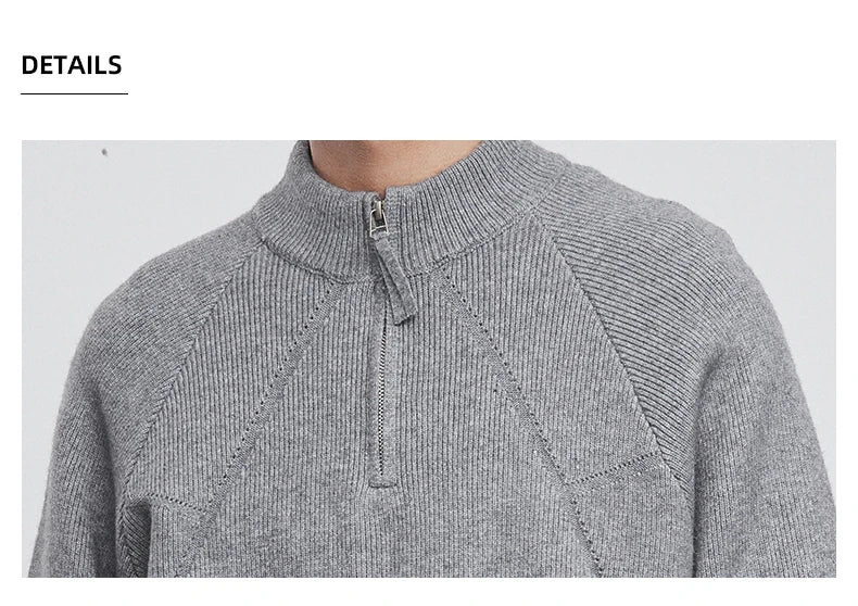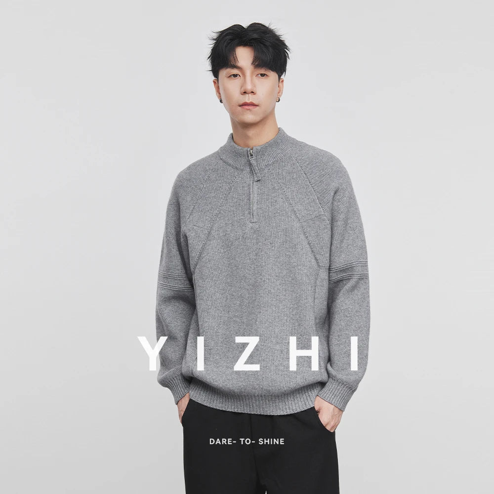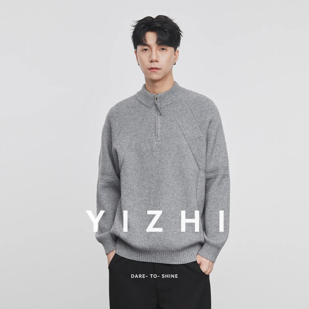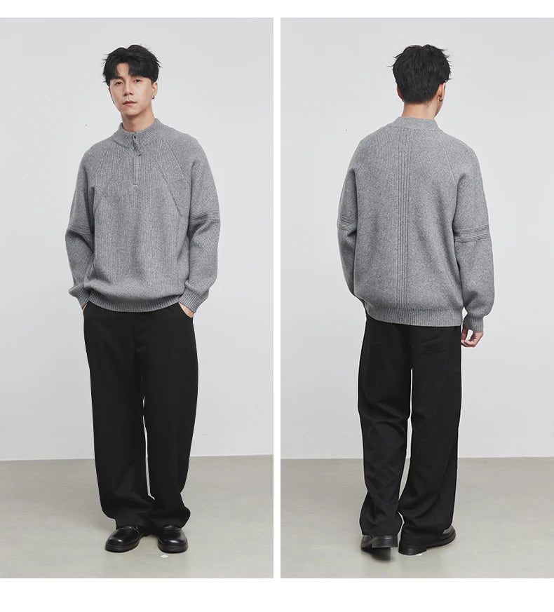 Men's Clothing Autumn Winter Half Open Collar Solid Color Zipper Pullover Long Sleeve Sweater Knitted Fashionable Casual Tops