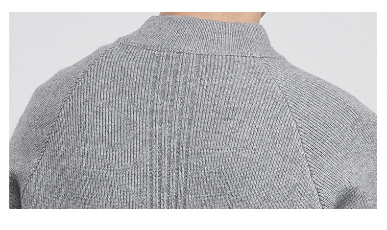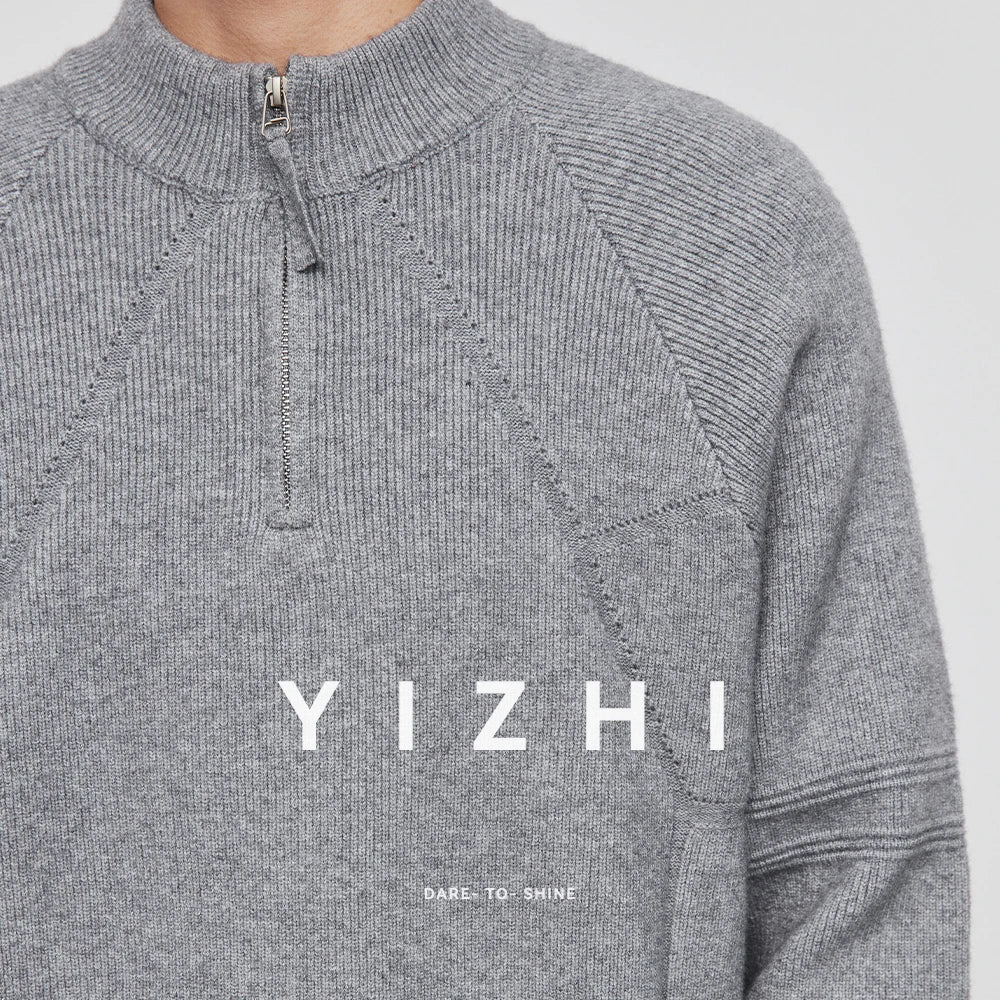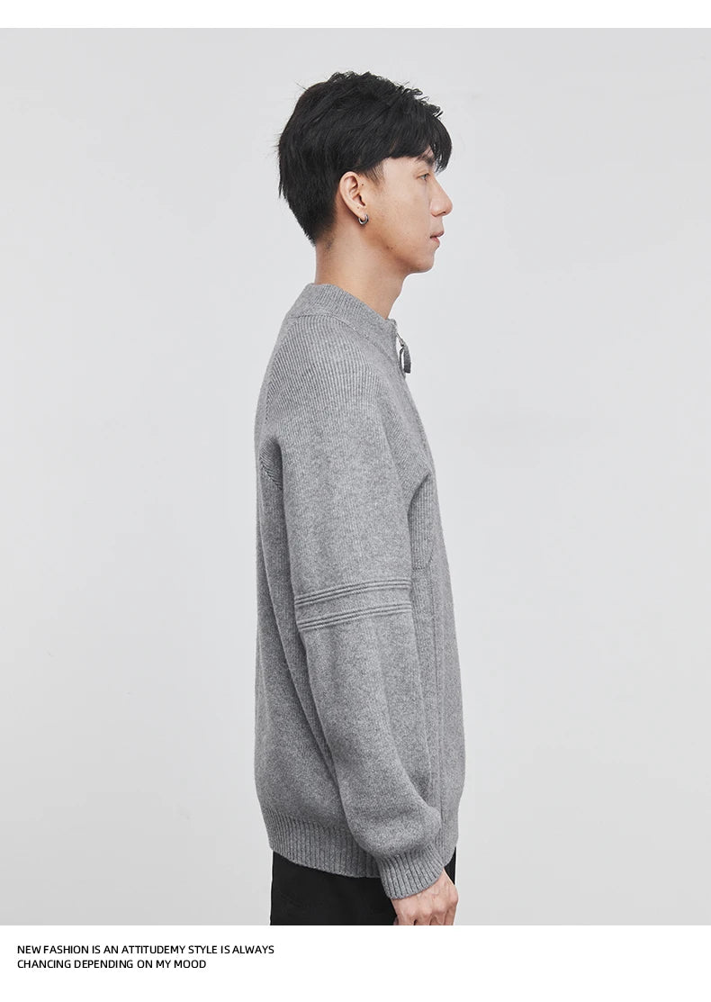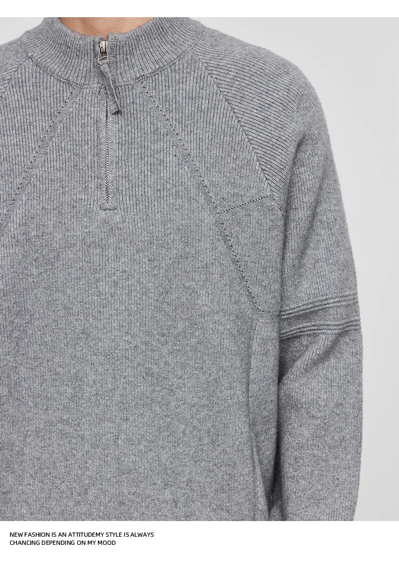 Men's Clothing Autumn Winter Half Open Collar Solid Color Zipper Pullover Long Sleeve Sweater Knitted Fashionable Casual Tops