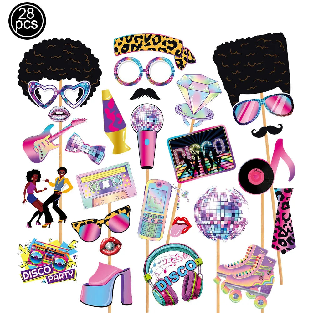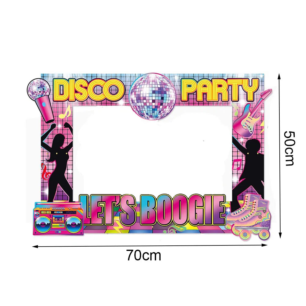 Disco Theme Party Decor Banner Photo Frame Photography Props Musical Instrument Balloon Guitar Microphone Bass Saxophone