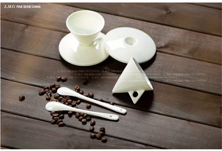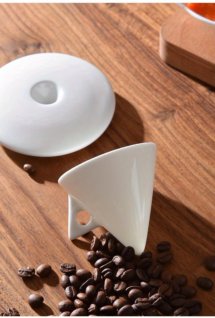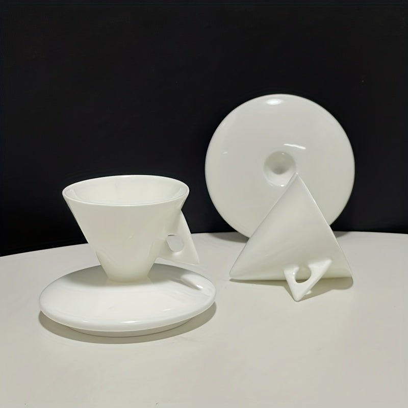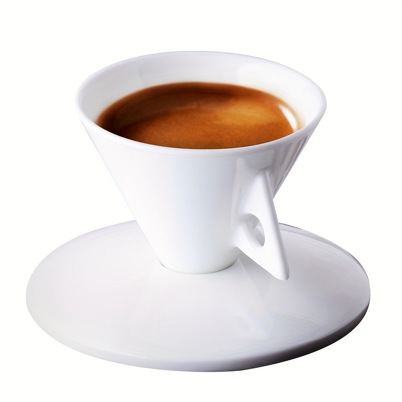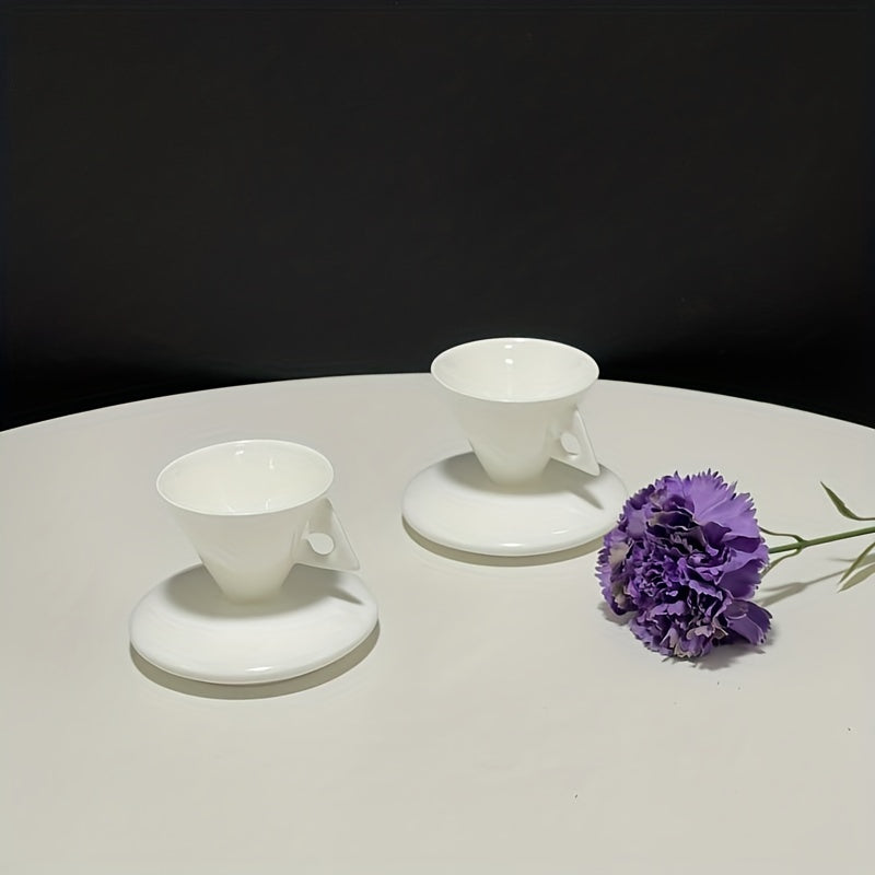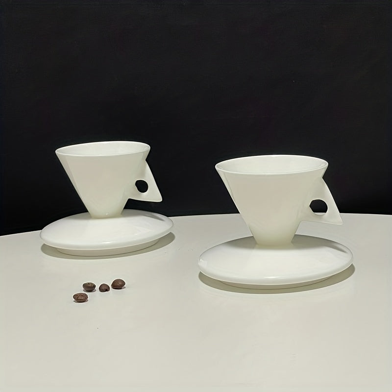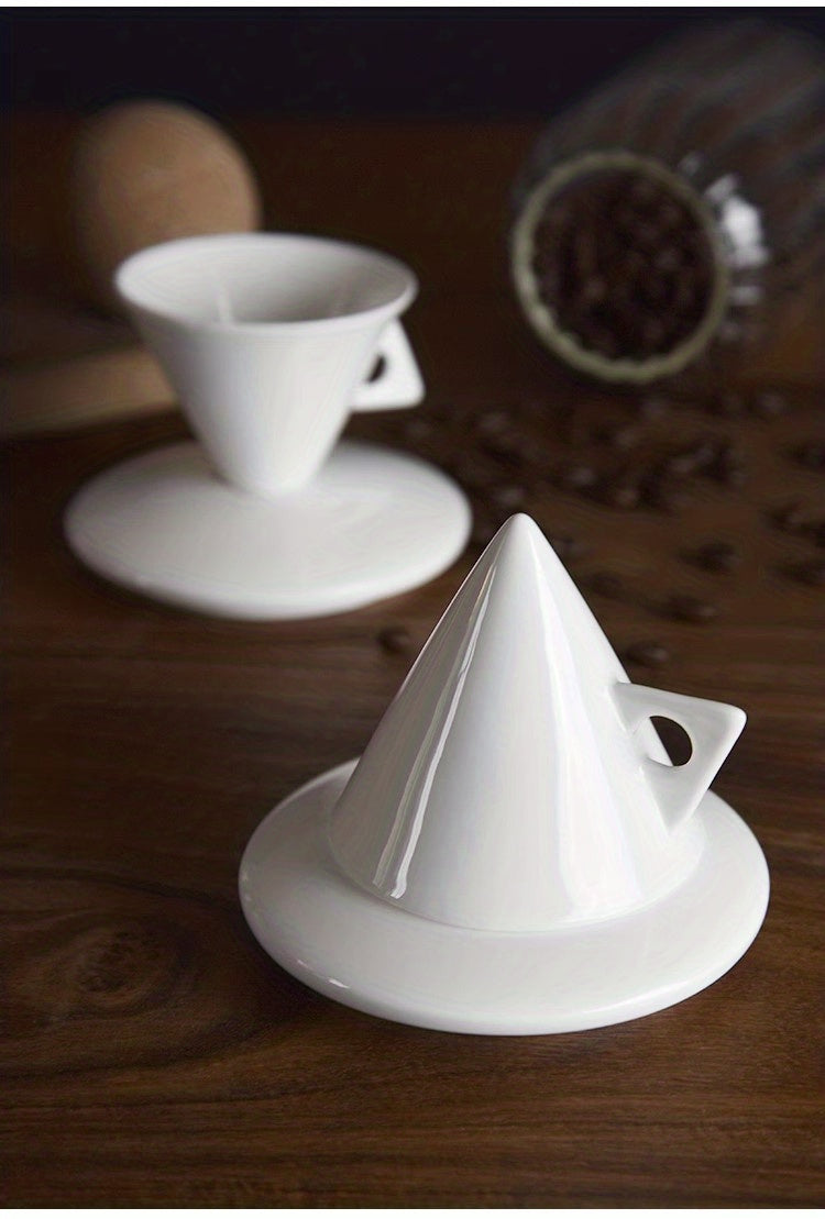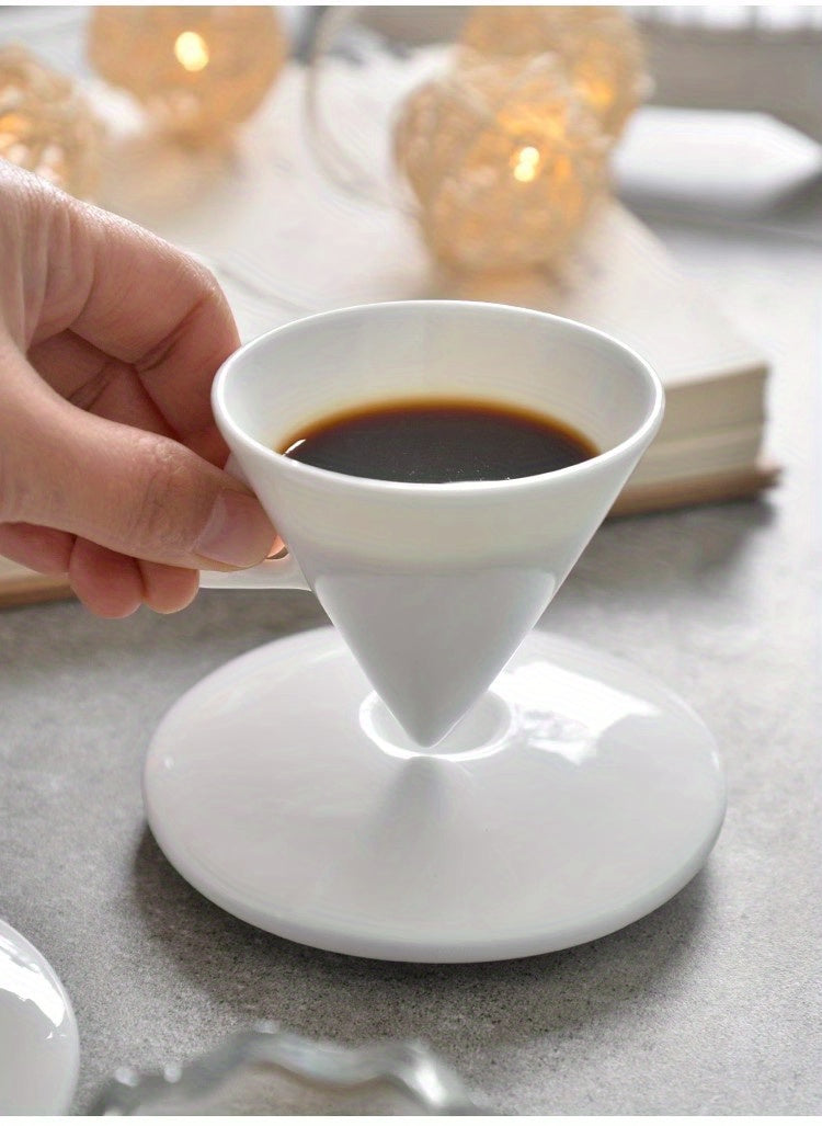 Luxury Bone China Cone-Shaped Espresso Shot Cups with Saucers - White Ceramic Pyramid Mugs for Coffee and Tea, Insulated, Reusable, Ideal for Family Gatherings, Coffee Mug Set|Elegant Coffee Set|Glossy Finish