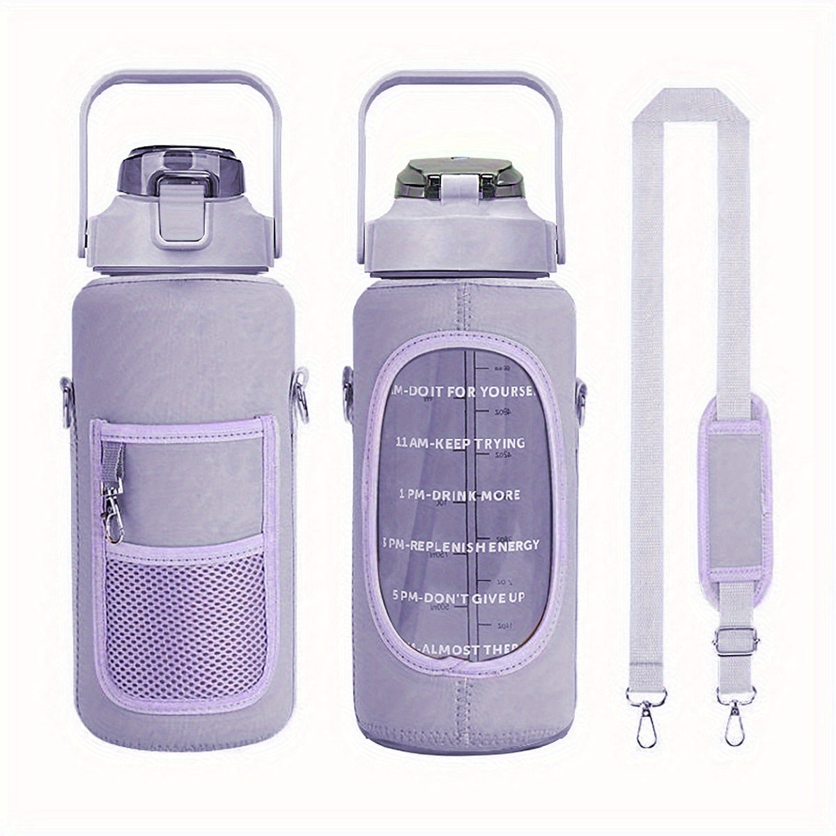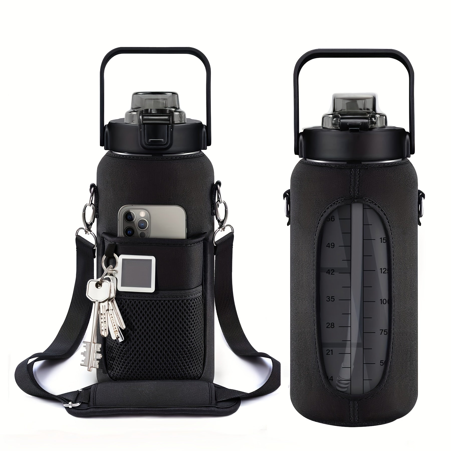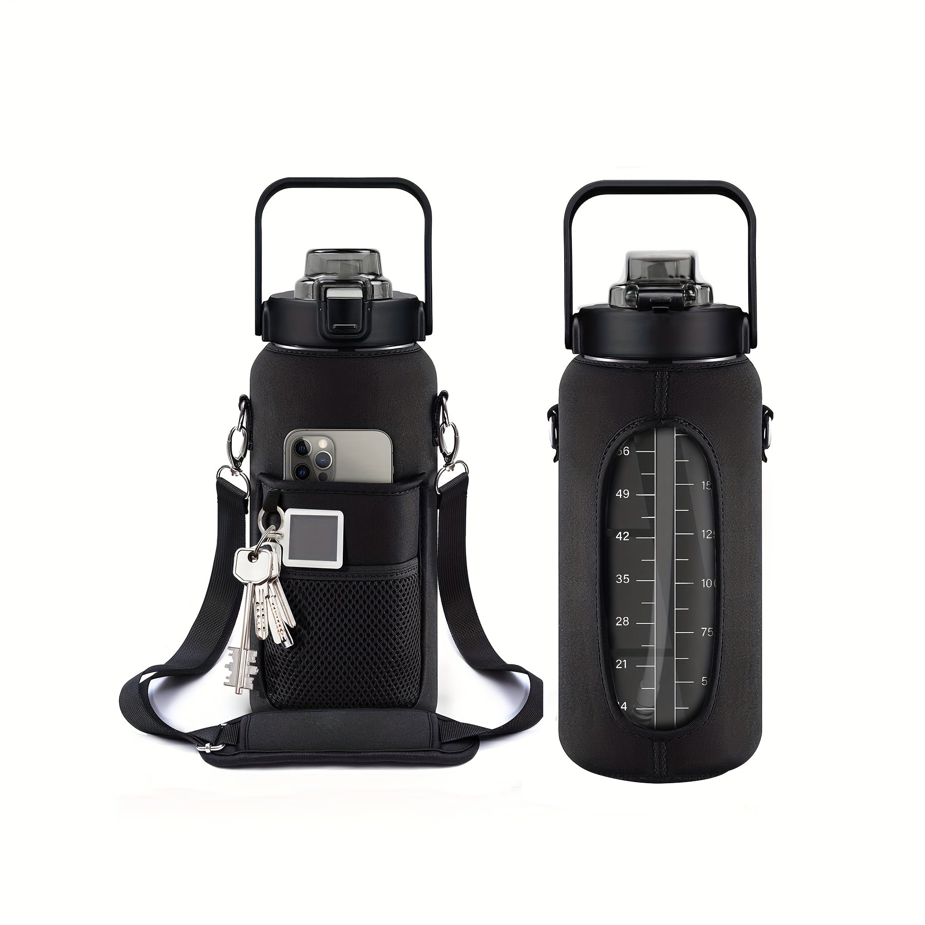 Sildurx 70oz (2L) Half-Gallon Water Bottle with Sleeve - Leakproof, BPA-Free Tritan, Built-in Straw & Time Stamp, Thermos with Handle, Motivational Design, for Gym, Travel, Office, School - Ideal Gift for Men & Women, Daily H