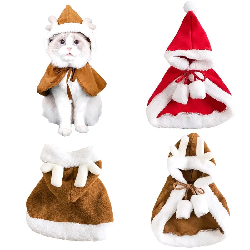 Cat Dog Christmas Outfit Pet Costume Cape,Soft and Cute Elk Green Style Apparel for Cats and Puppy, Funny Christmas Pet Dress Up