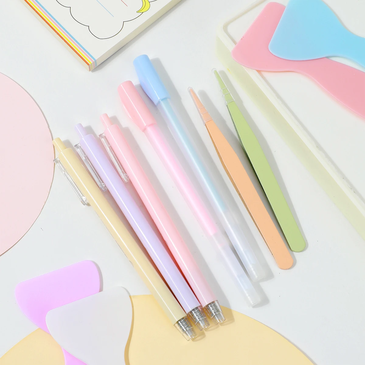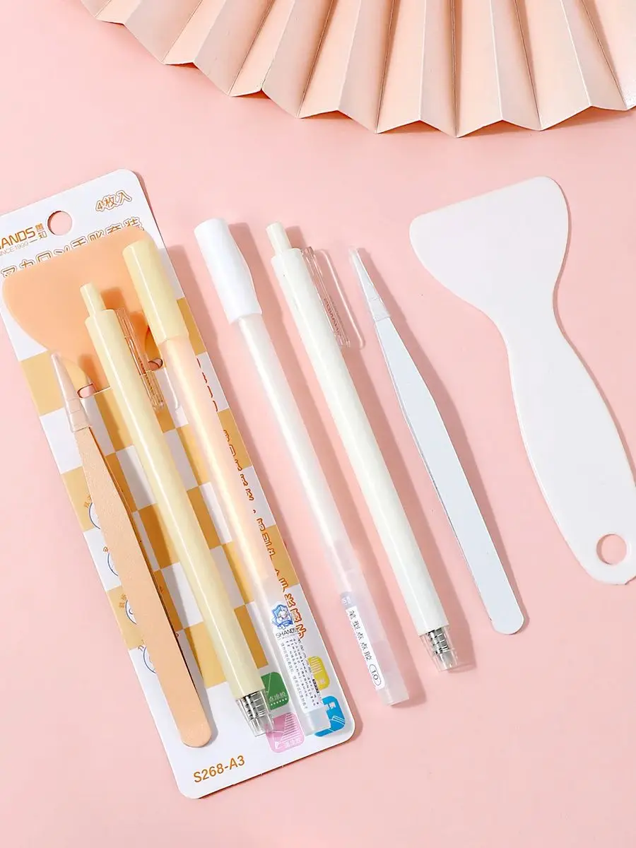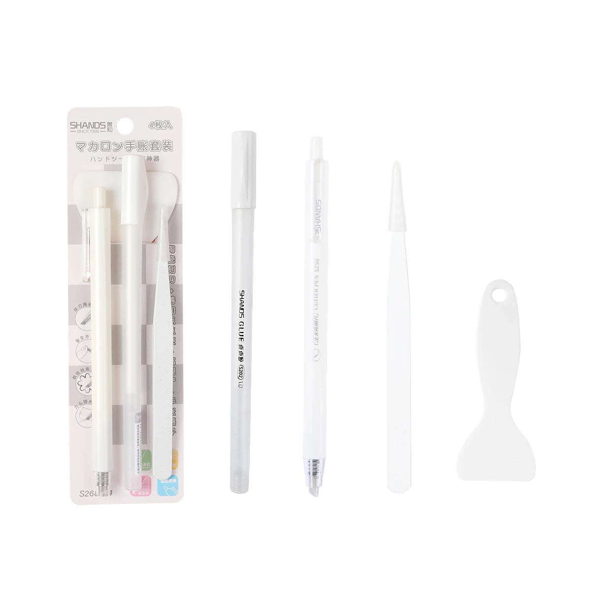 Set With 4PCS Stationery ,Combo Of School Supplies Including Pen-Shaped Glue Dot&Carving Pen&Plastic Spatula&Plastic Tweezers