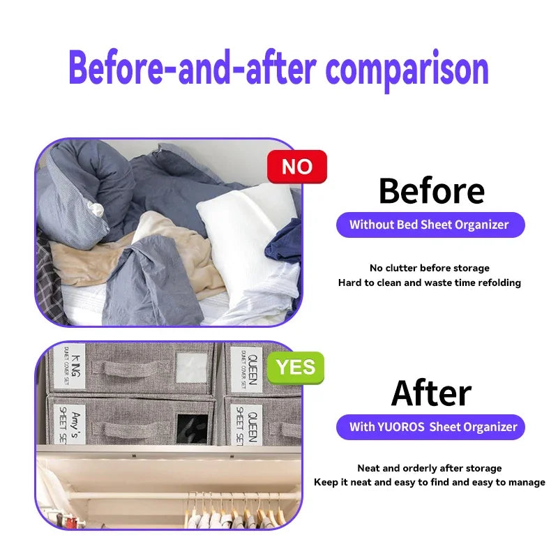 Bed Sheet Organizers Storage Foldable Box for Linen Closet Bedding Set Containers for Blanket Comforter Pillow Cube with Window