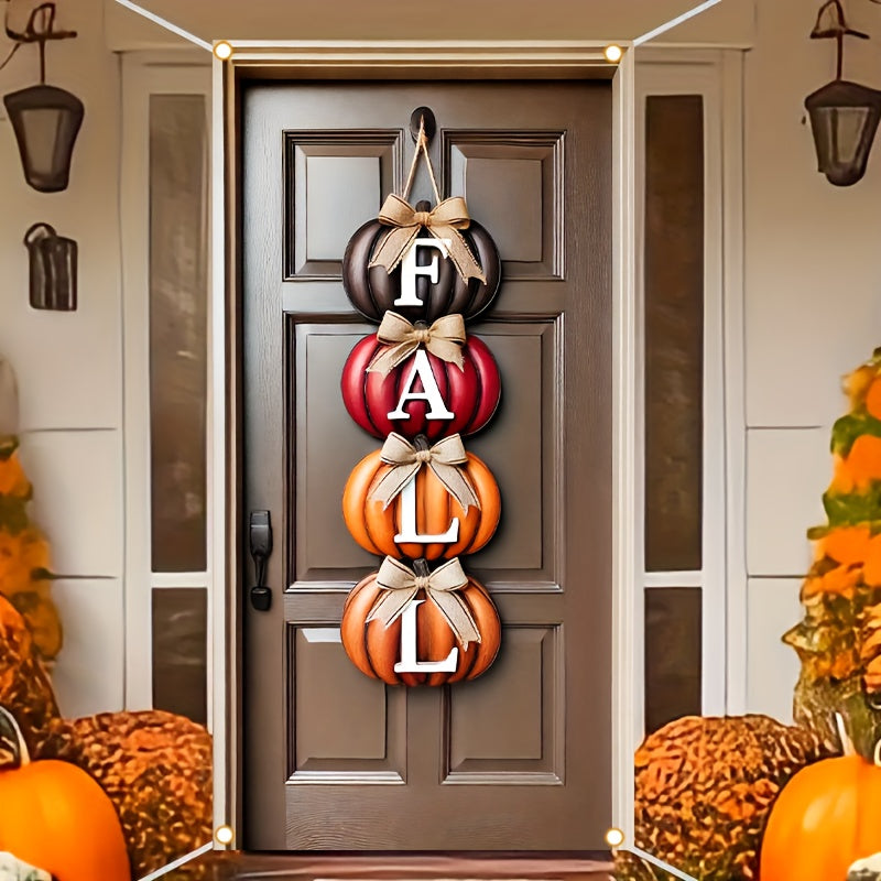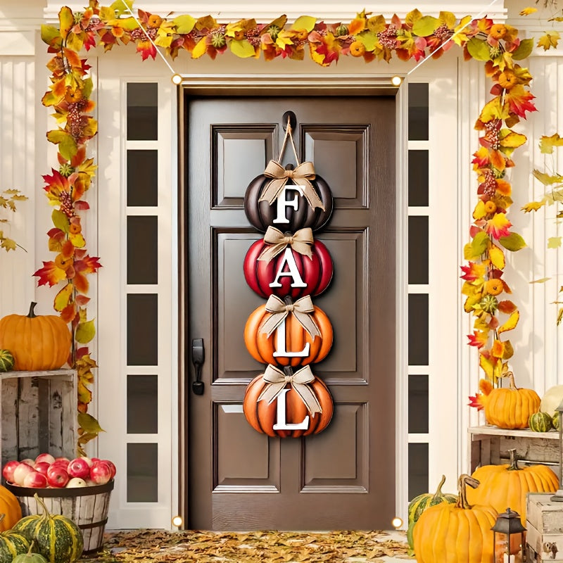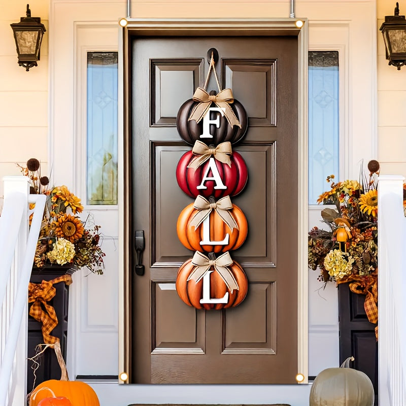HEGO 1pc Autumn "FALL" Pumpkin Door Cover Banner, Durable Polyester Fiber, 35.43x70.86 inches, Multi-Purpose Outdoor Party & Garden Decor, Easy to Hang, No Power Needed, Thanksgiving Autumn Decoration