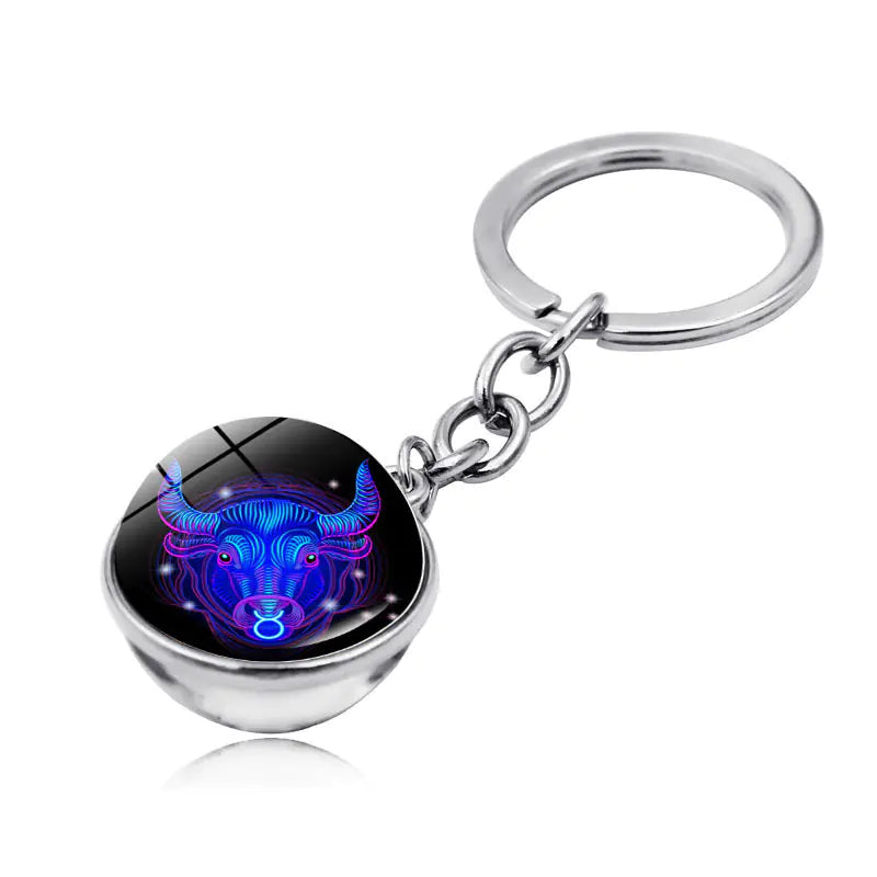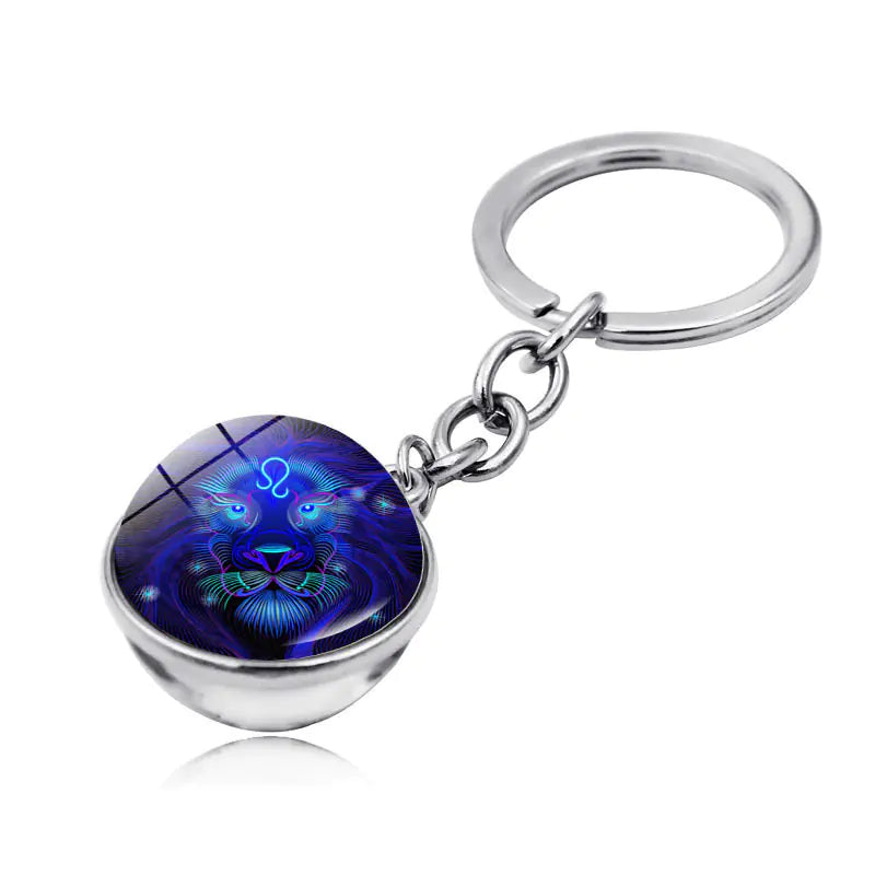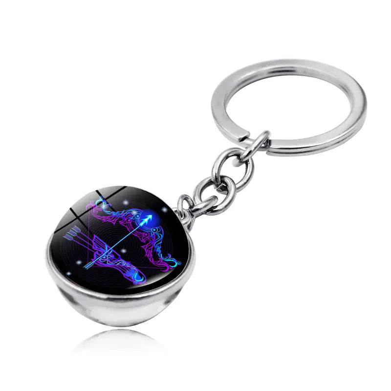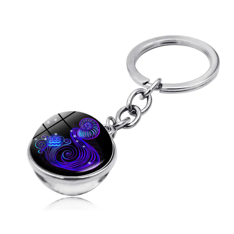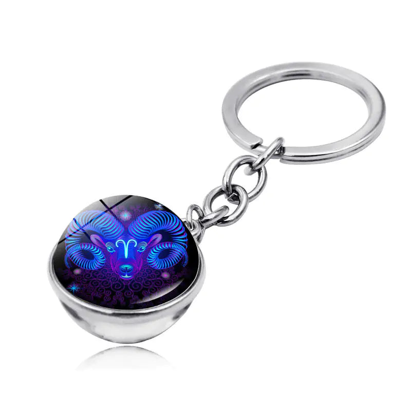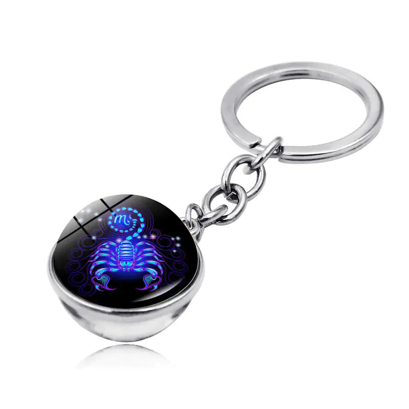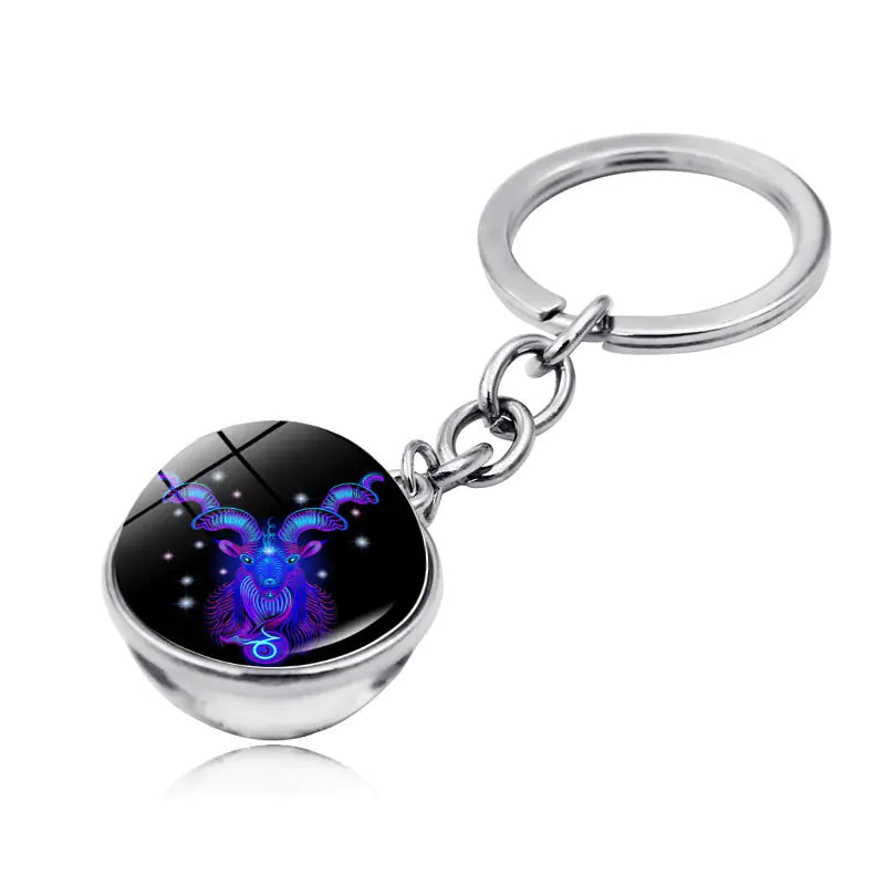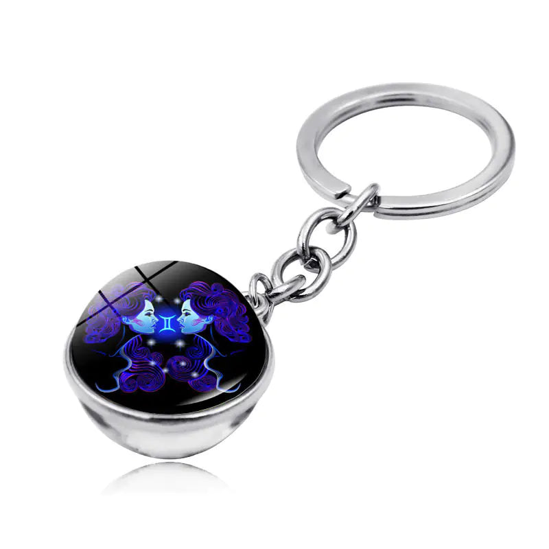 Zodiac Gemstone Double-Sided Glass Keychain