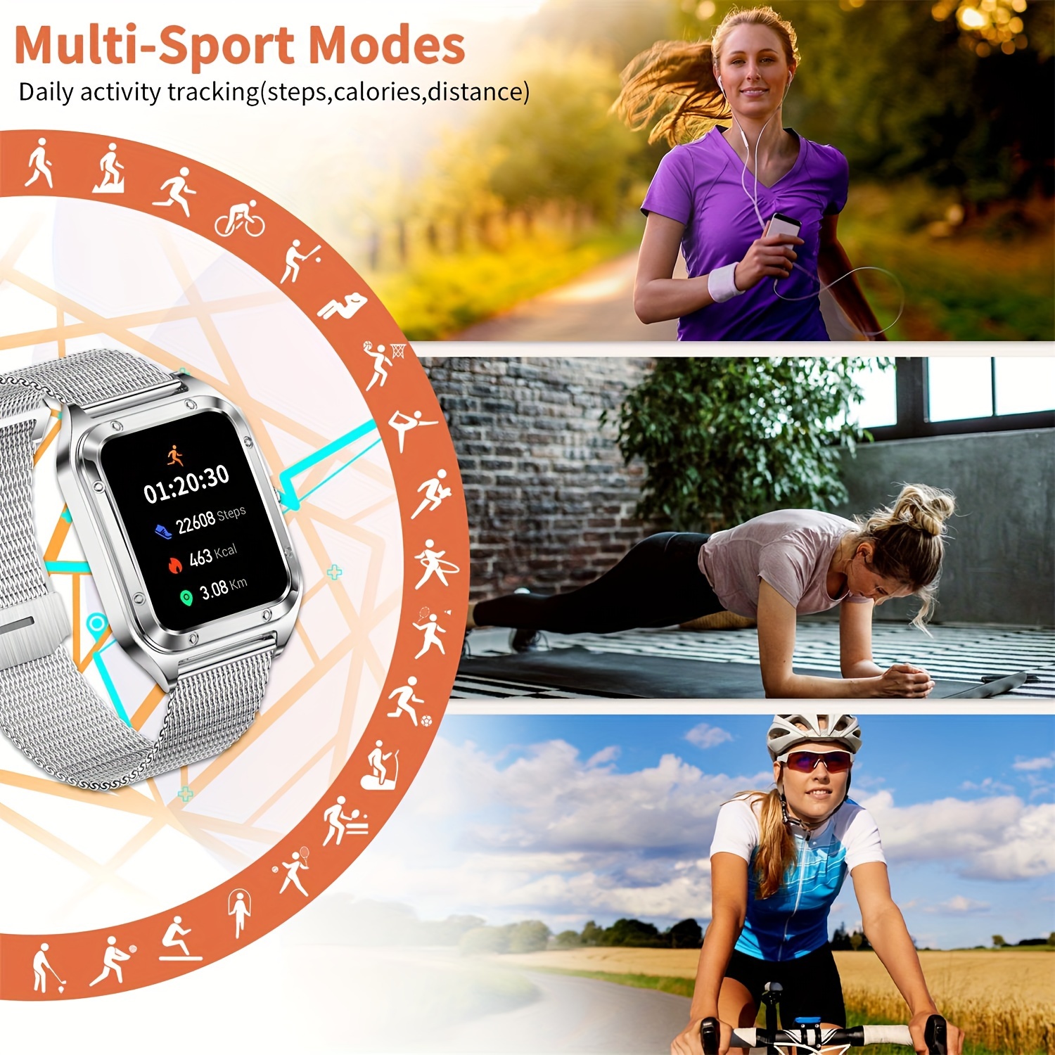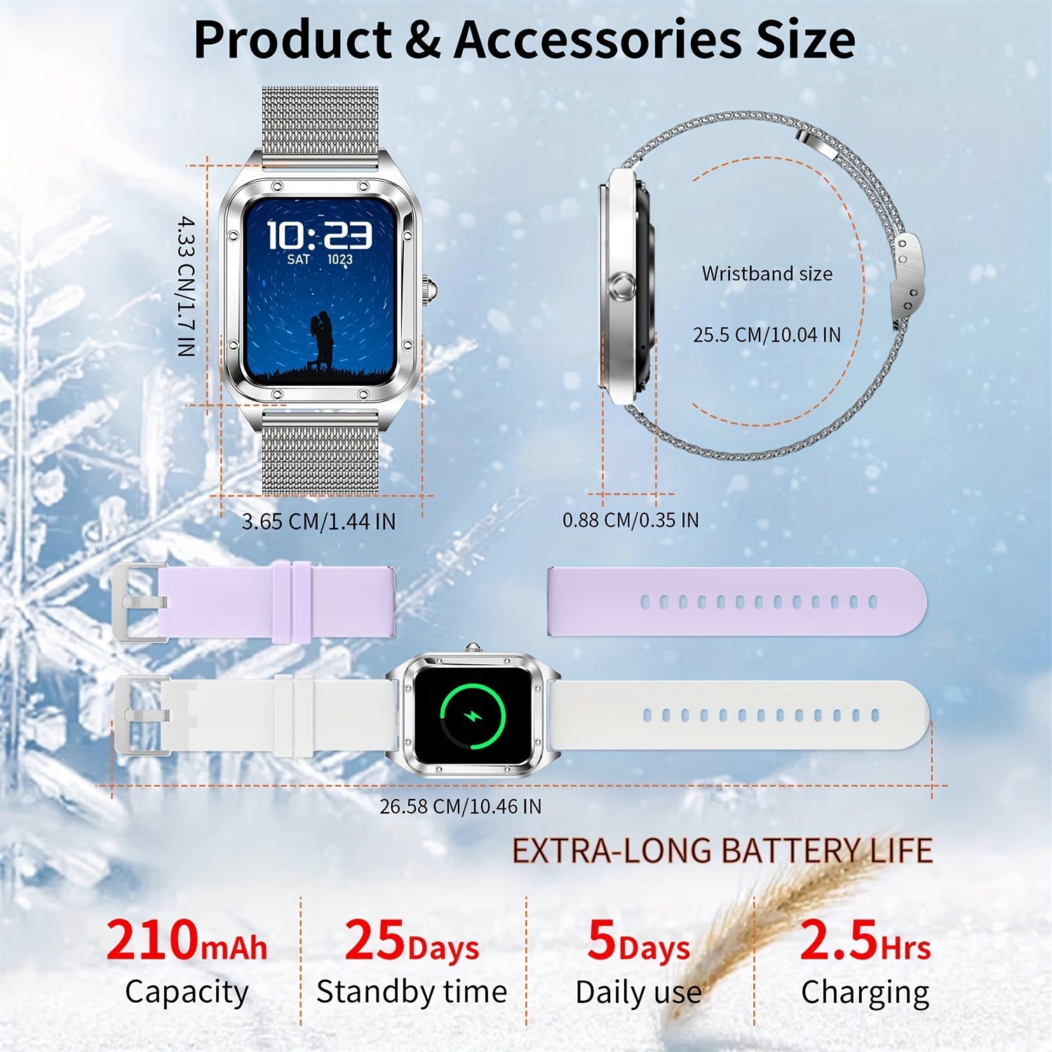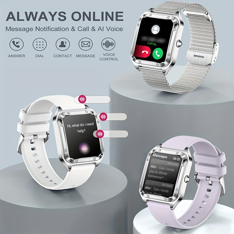 Smart Watch for Men/Women, (Answer/Make Call) Smartwatch with Full Touch Screen/Pedometer/Calories, Compatible Android and iphone, Fitness Tracker, Multiple Sport Modes, Ideal Gift for Family (Include Bands:Silver + Light Pur