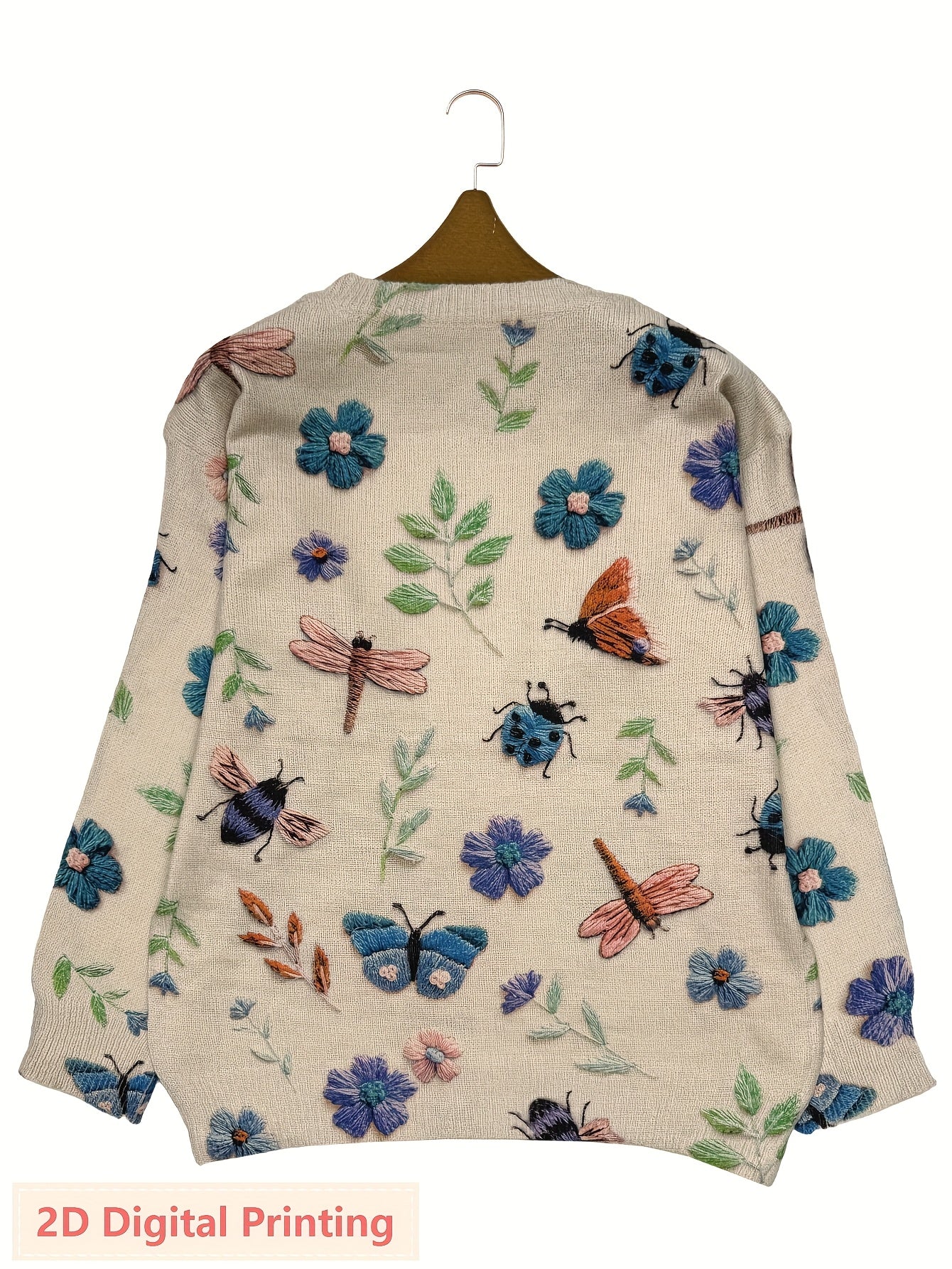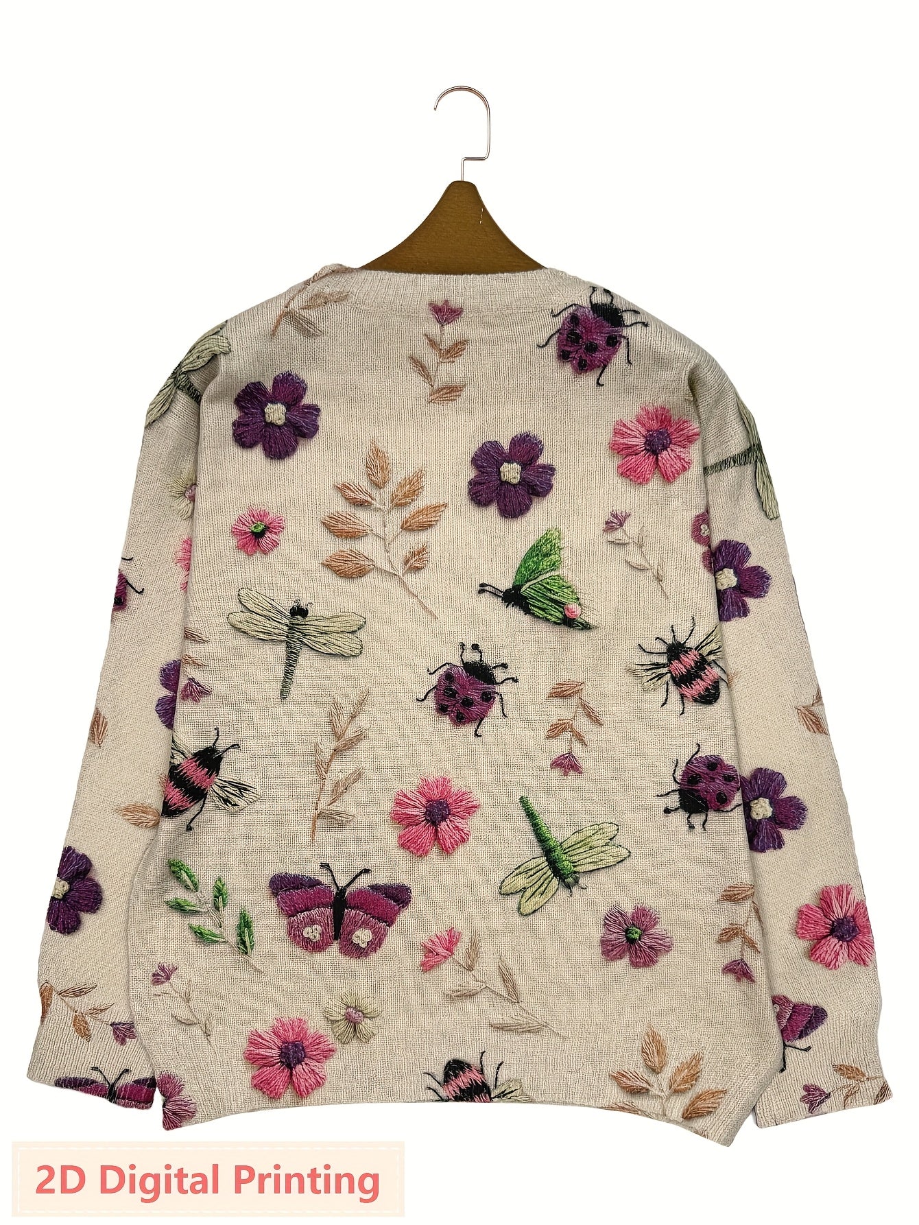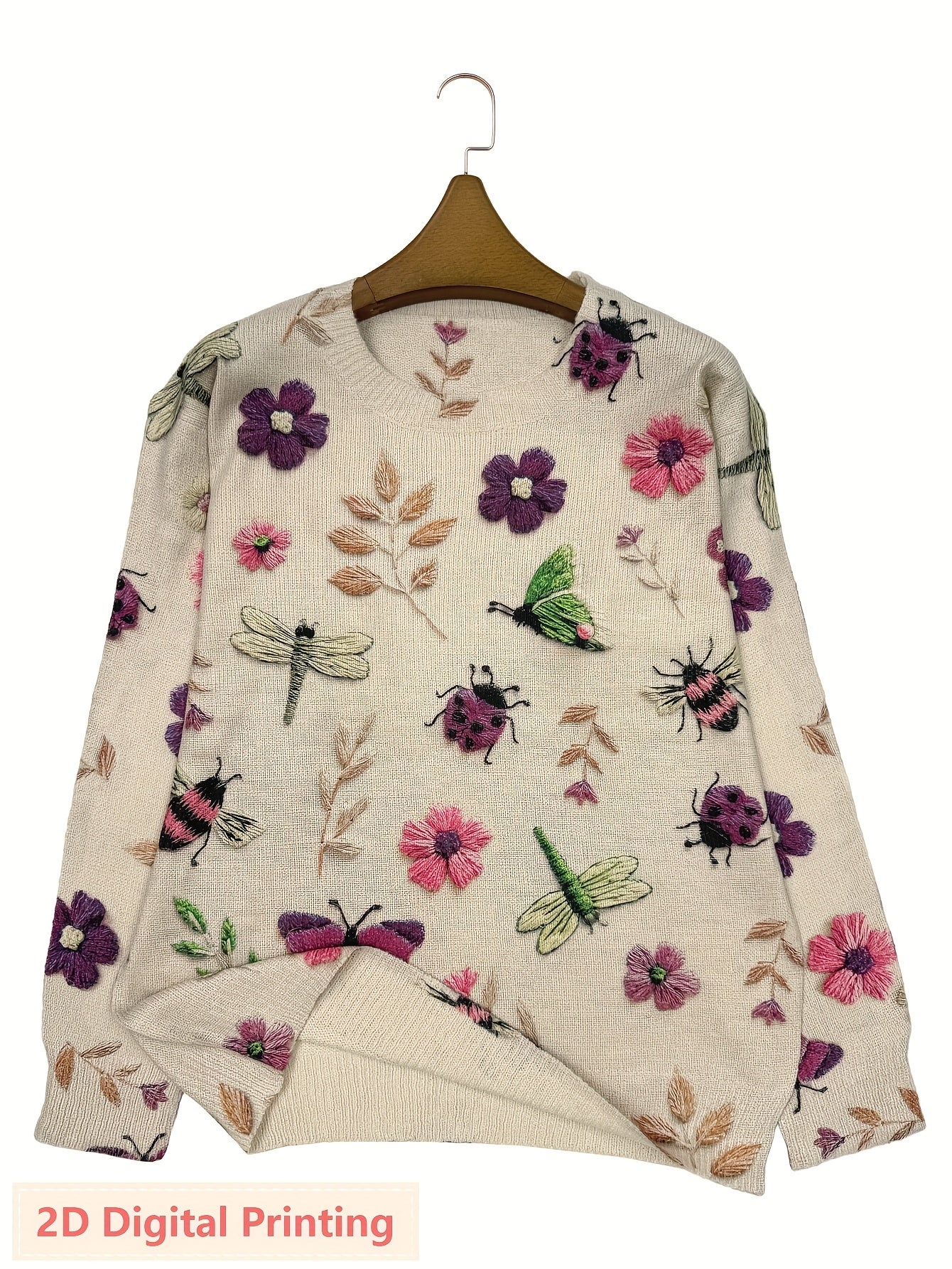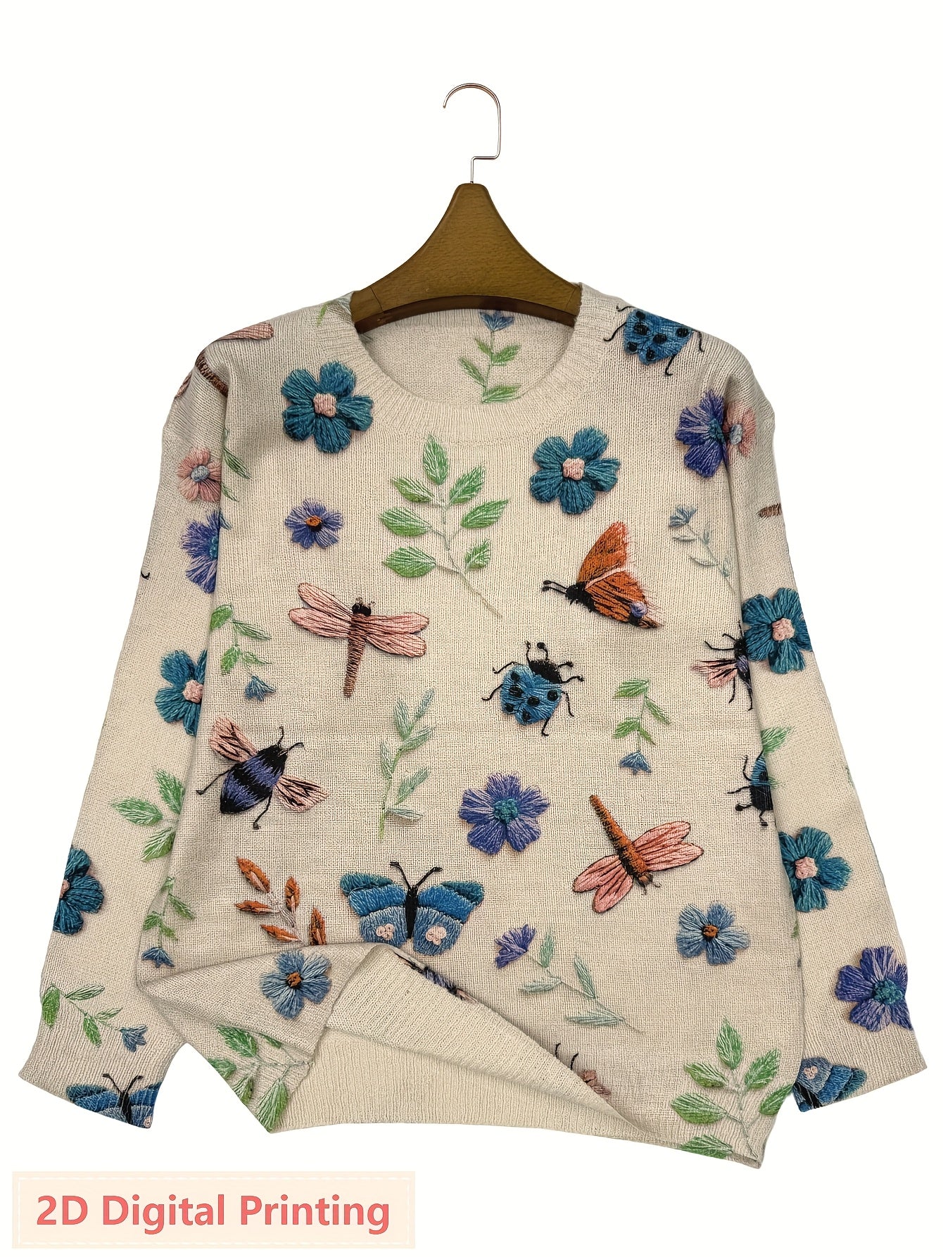 Women'S Lightweight Sweater - 2D Digital Printing-All-Over Floral & Insect Print in Beige/Red/Blue/Black/White/Gray/ - Soft Everyday Pullover for Fall/Winter - Casual Chic Sweater for Everyday & Formal Outfits - Women'S Sweat