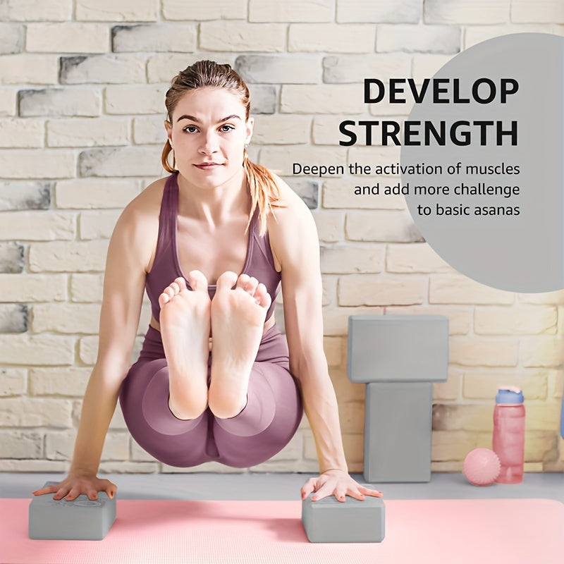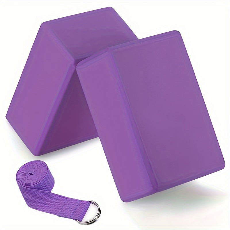 EVA yoga brick 3-pack, 2 yoga bricks, stretching strap, yoga Pilates fitness exercise auxiliary tool set