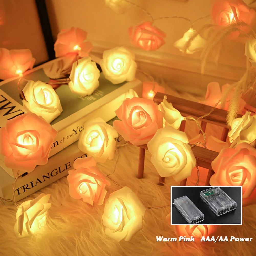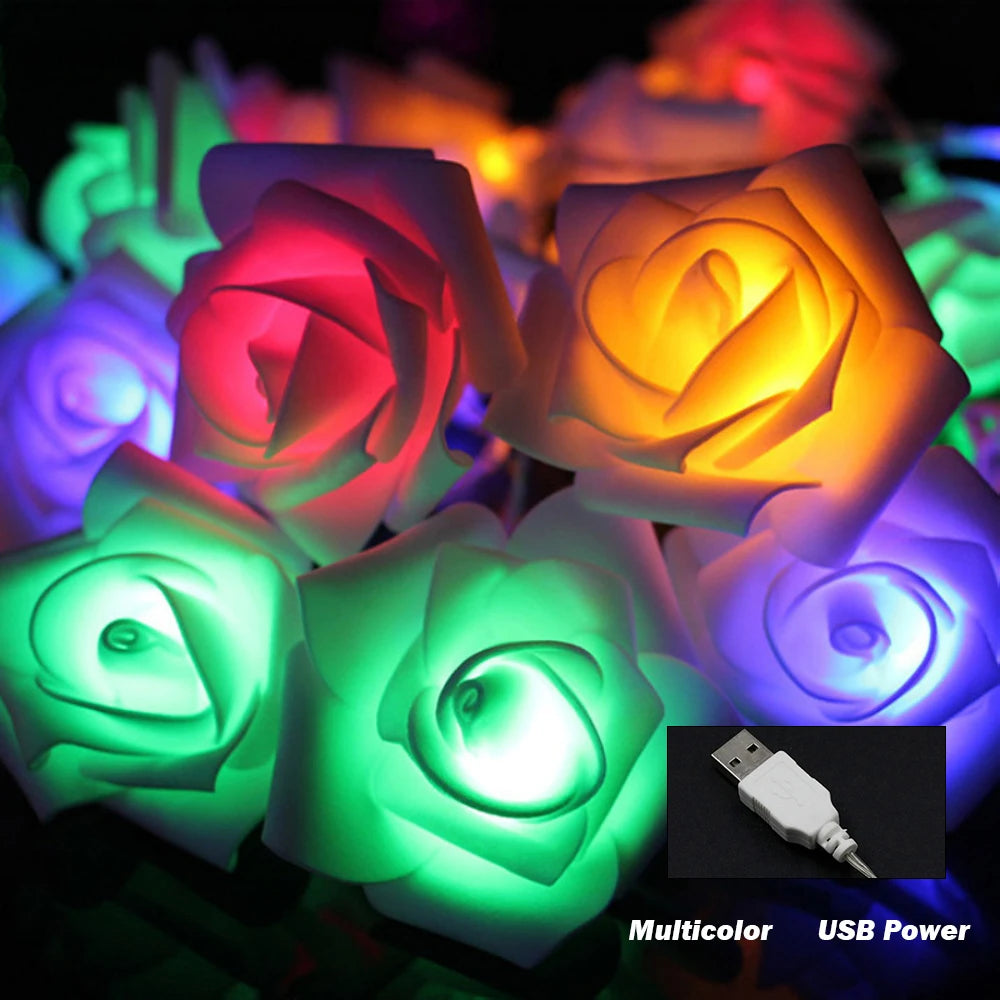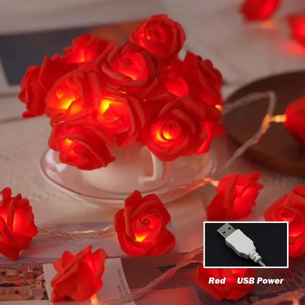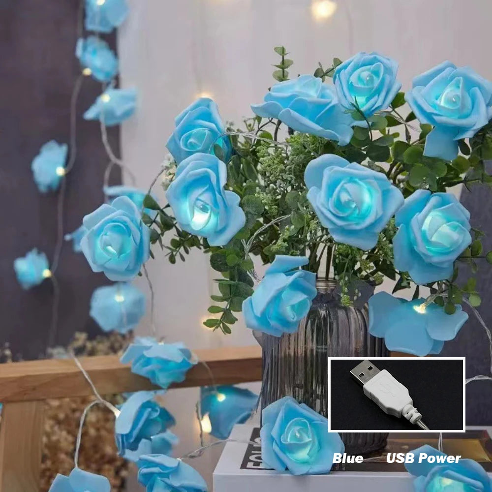 10M 6M 3M 1.5M Rose Flower LED String Lights USB/Battery Box Power Red Pink Warm Blue DIY Christmas Holiday Fairy String Lights