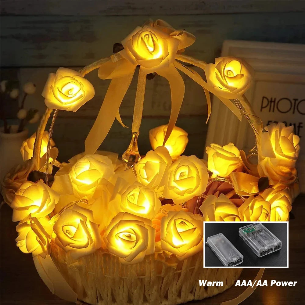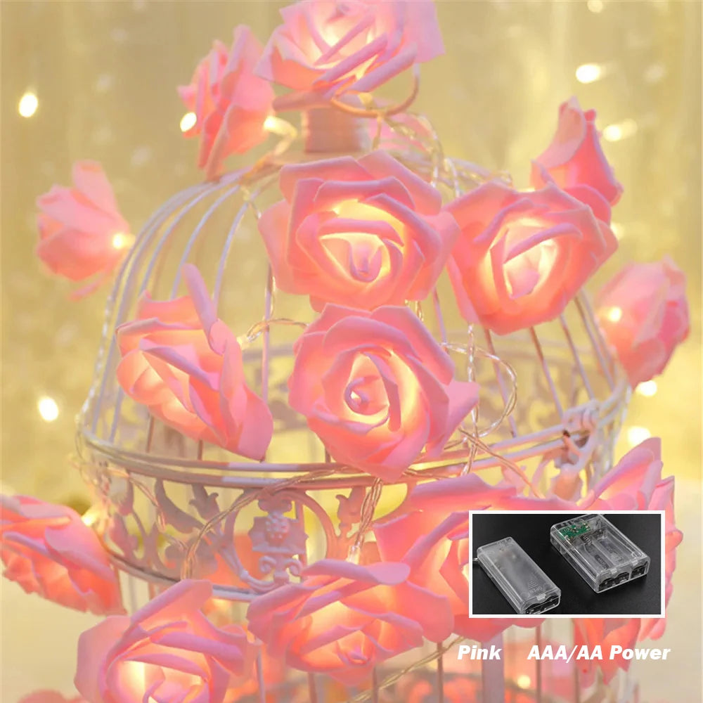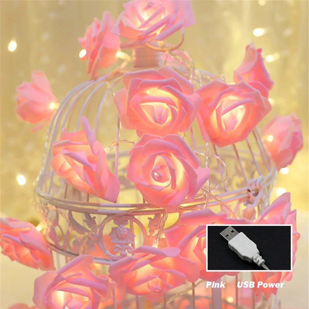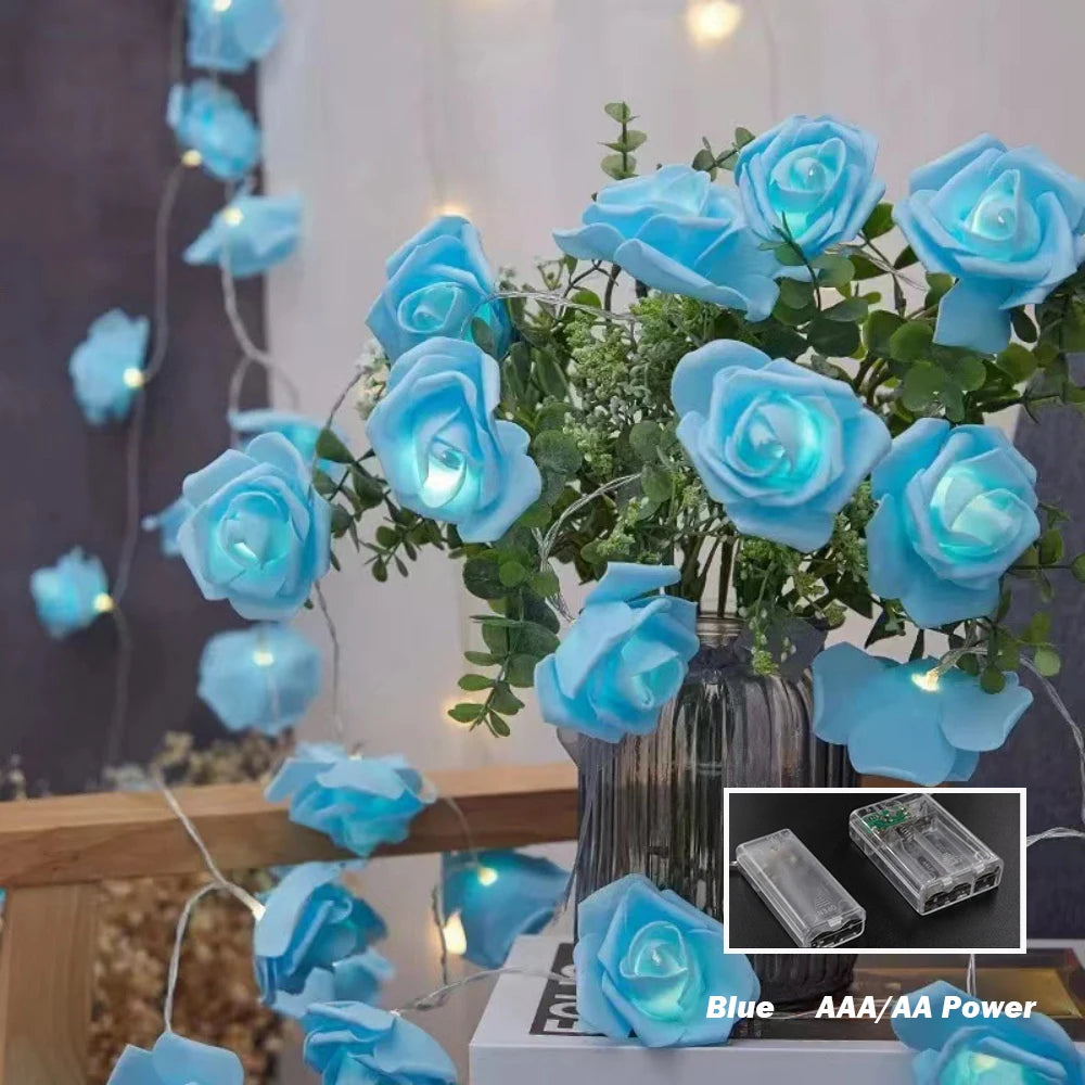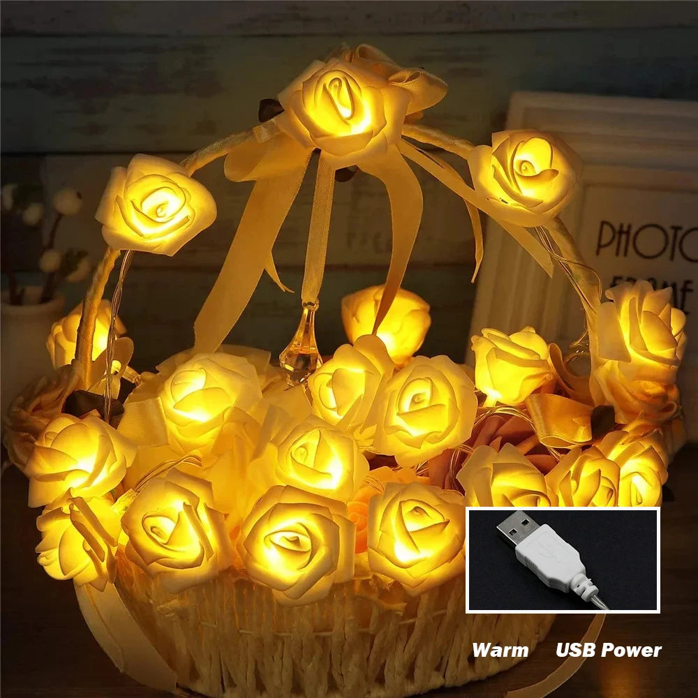 10M 6M 3M 1.5M Rose Flower LED String Lights USB/Battery Box Power Red Pink Warm Blue DIY Christmas Holiday Fairy String Lights