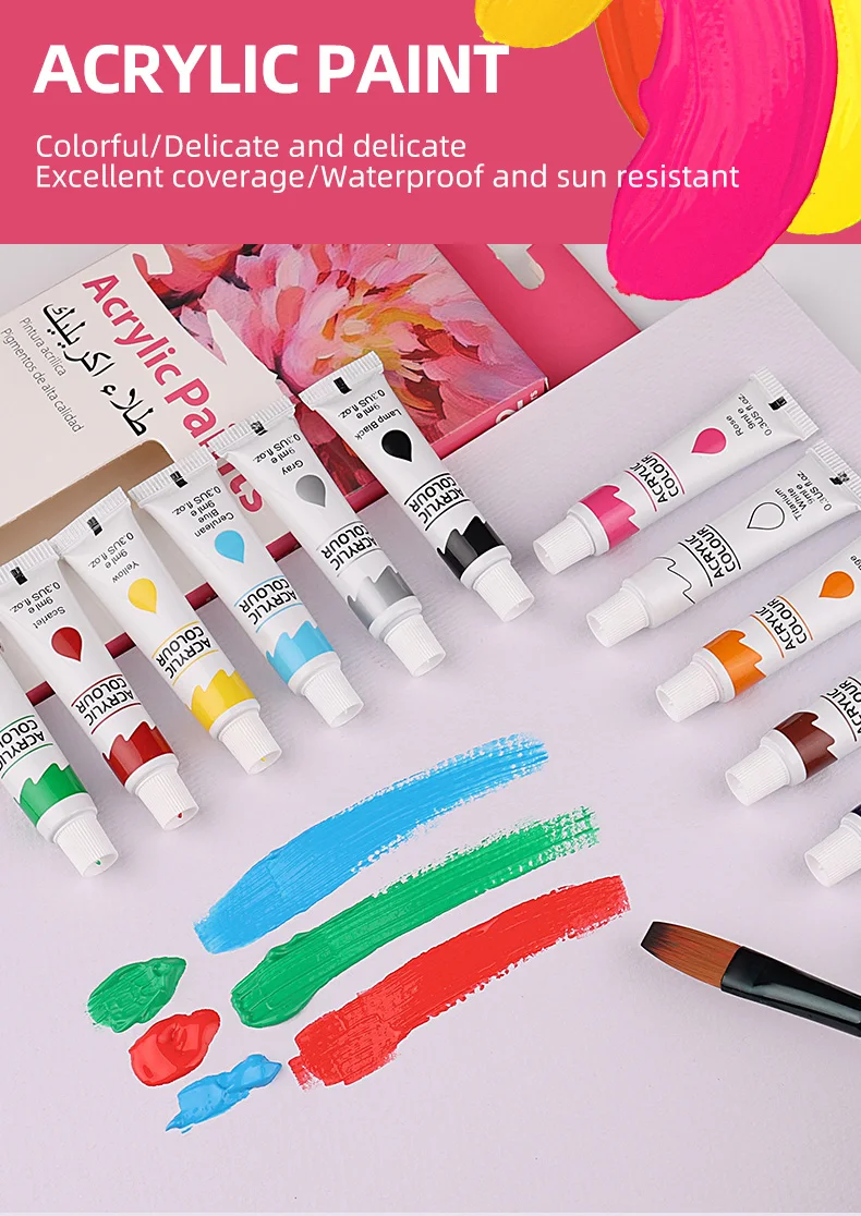 12 Color Acrylic Paint Set 9ml Tubes Waterproof Art Supplies for Beginner Artists DIY Painting on Canvas Wall Art Craft Projects