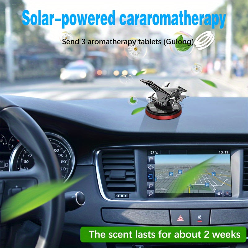 1pc Solar Rotating Car Aromatherapy Ornament, Car Fragrance Interior Fighter Ornament Decoration Supply Car Liquid Aromatherapy Air Freshener Car Accessories (Free Three Pieces Of Fragrance Tablets)