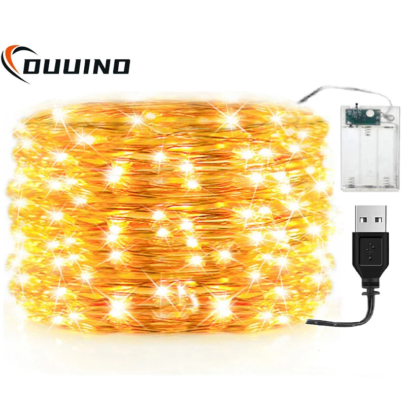 20M LED Fairy Lights String Waterproof USB Battery Copper Wire Garland Fairy Light Christmas Wedding Party Decor Lamps Lighting