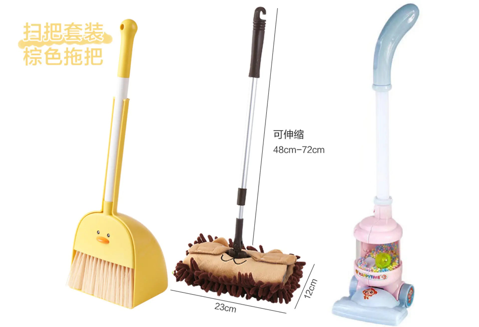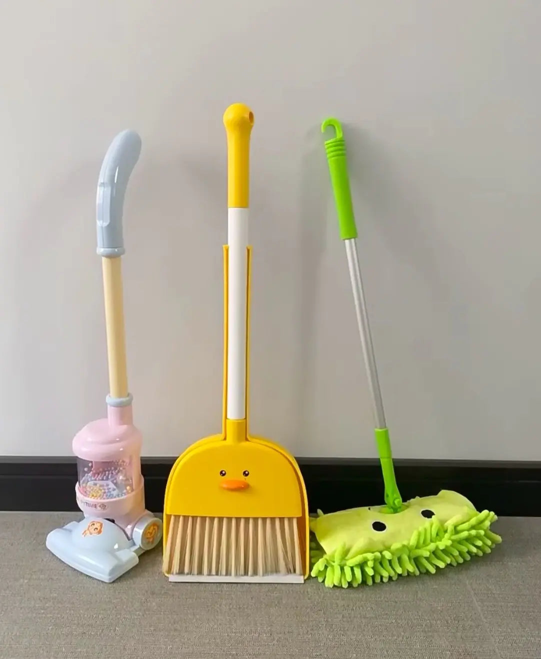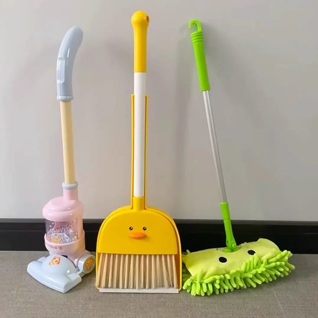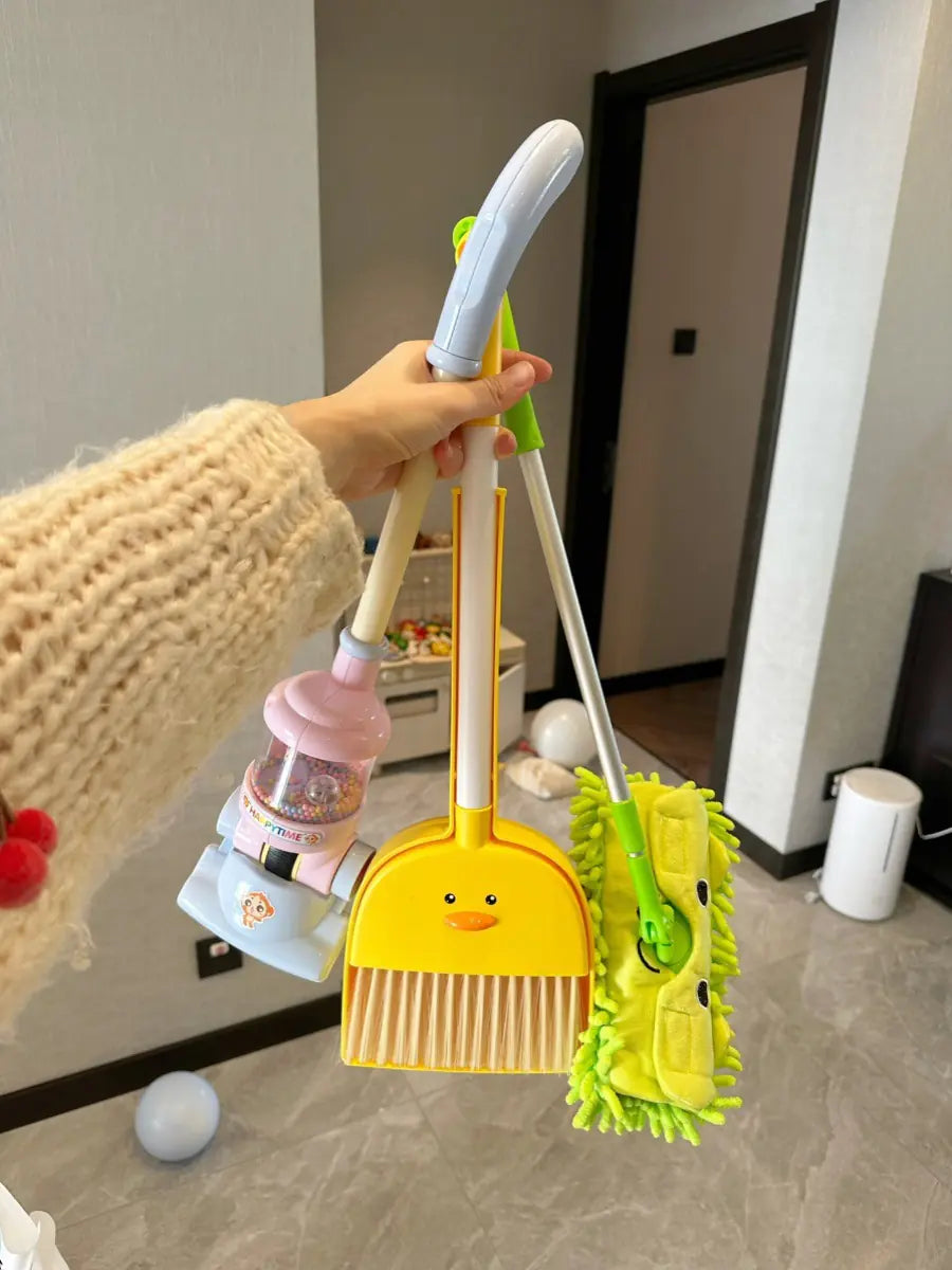 Available in various charming colors and combinations, each set includes a broom and a dusted, and you can choose to add a mop or even a vacuum cleaner for enhanced cleaning efficiency. The playful Egg Yolk Duck design is sure to capture your child's imagination and make cleaning feel like an exciting game!
