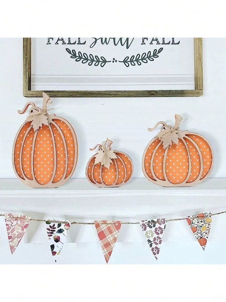 3pcs, Fall Decor, Wooden Autumn Pumpkin Fall Decorations For Home Shelf Mantel Table Decor Pumpkins Of Three Sizes Fall Season