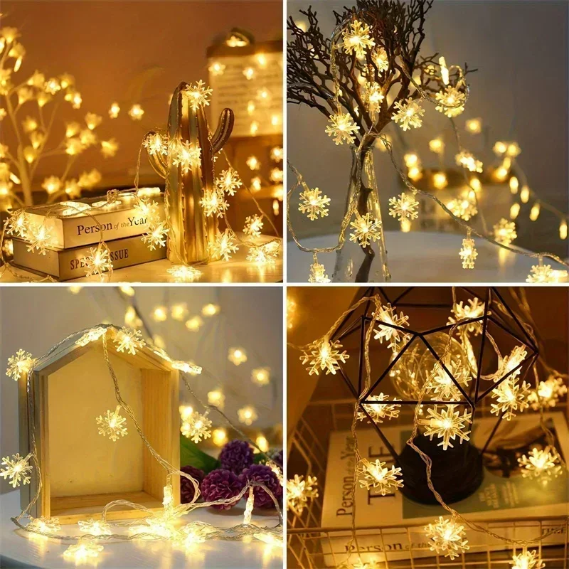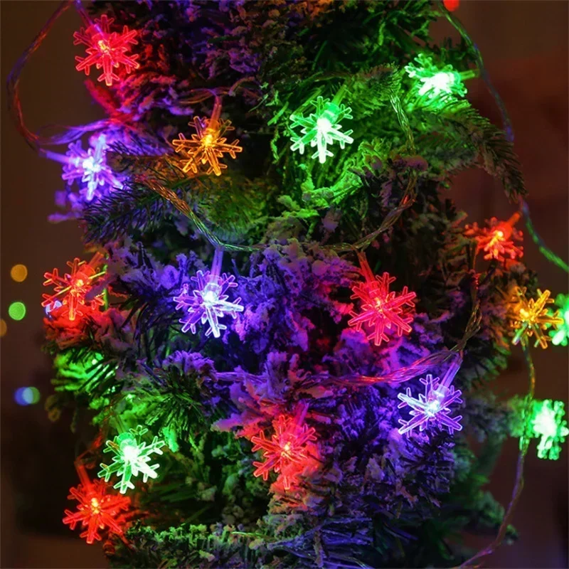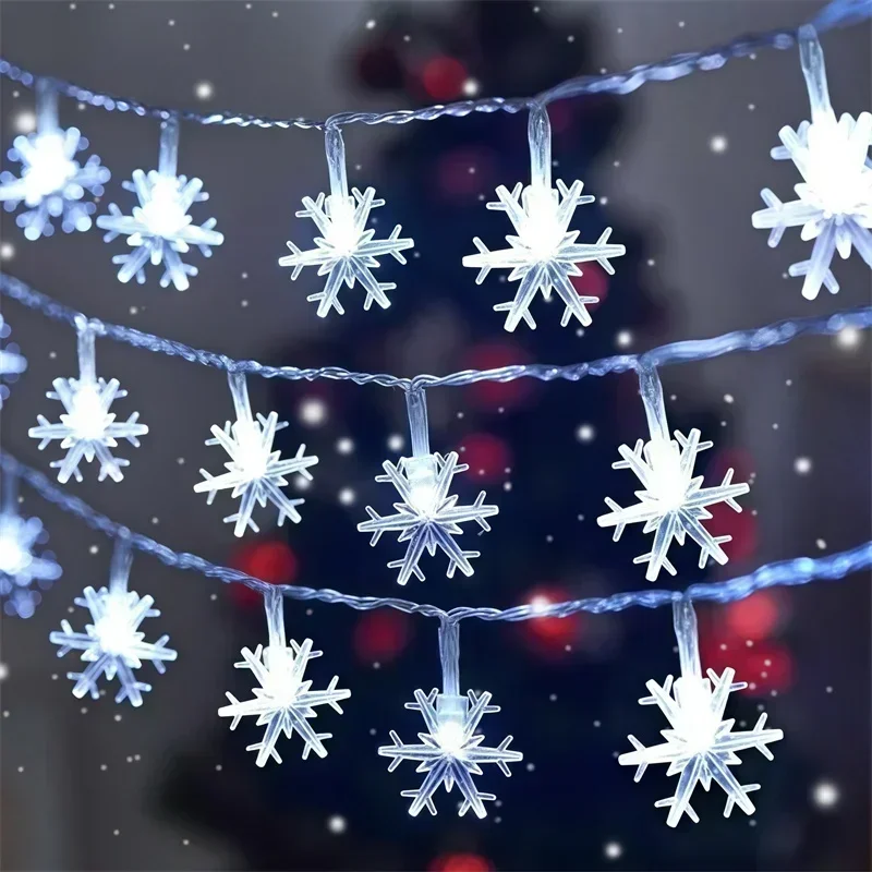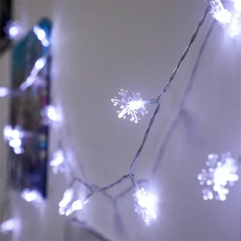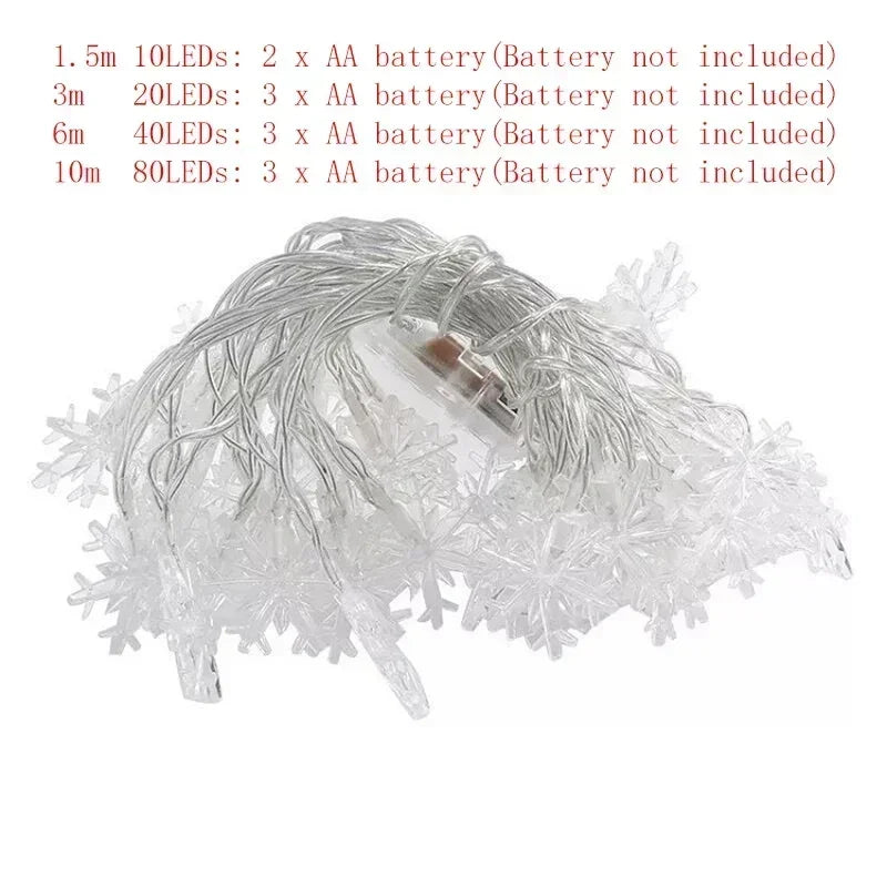 80/40/20/10LED Snowflake String Lights Christmas Battery Operated Bedroom Indoors Garden Christmas Tree Living Room Decoration
