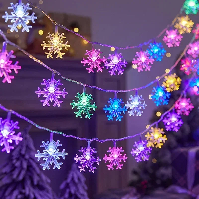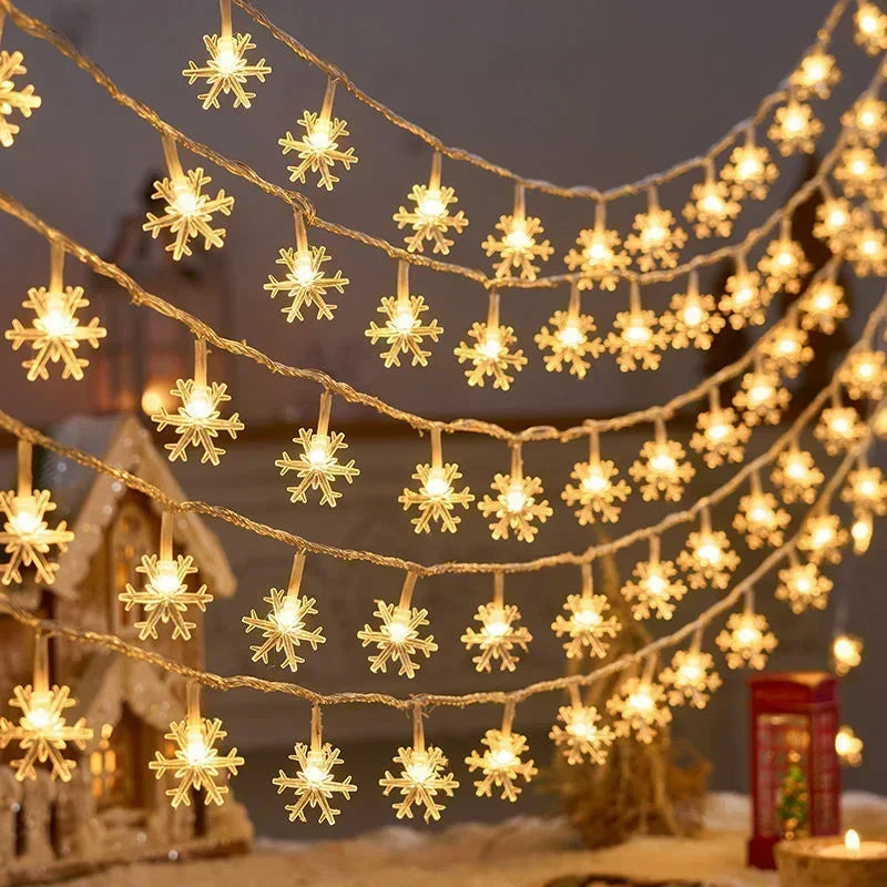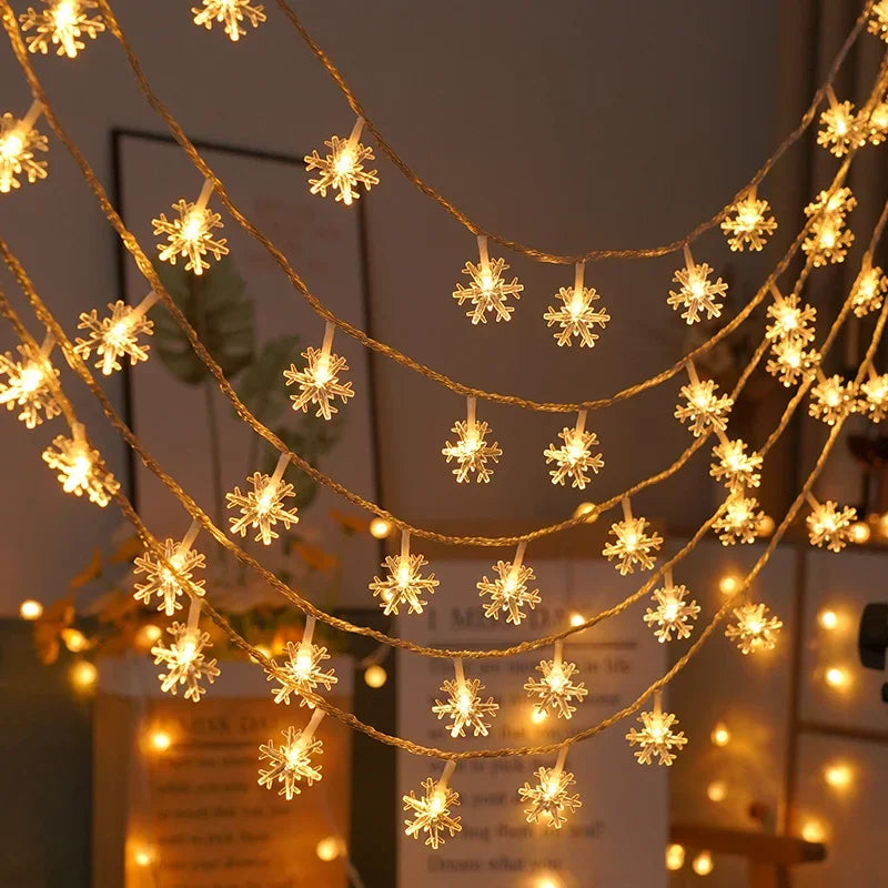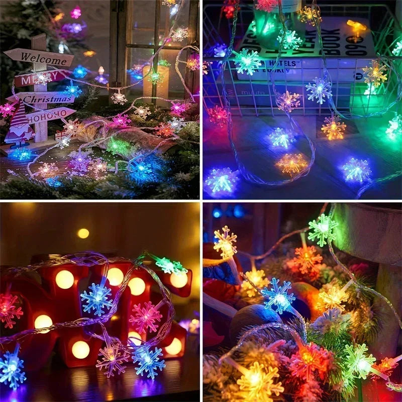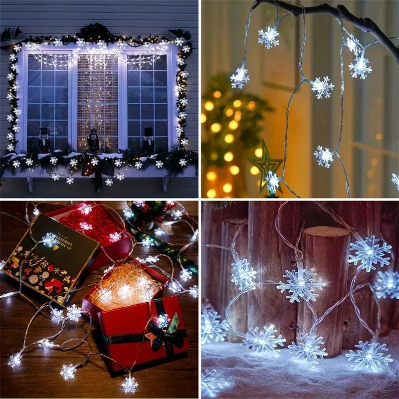 80/40/20/10LED Snowflake String Lights Christmas Battery Operated Bedroom Indoors Garden Christmas Tree Living Room Decoration