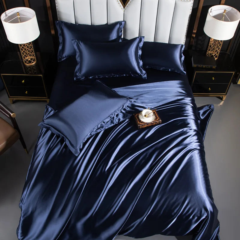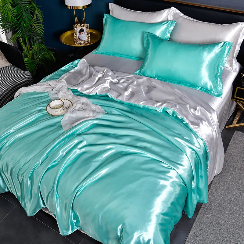 A/B Double-Sided Color Bedding Set Silky Satin Duvet Cover Bed Sheet Pillowcase Luxury Bedsheet King Queen Double Twin Size