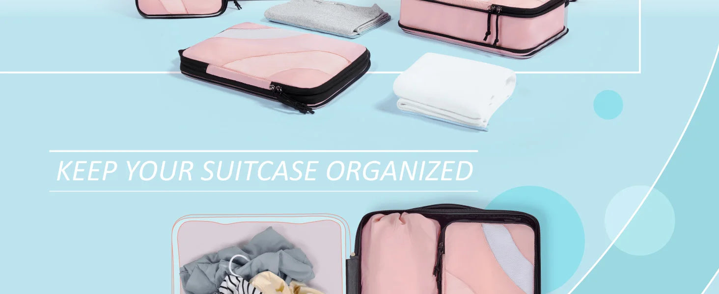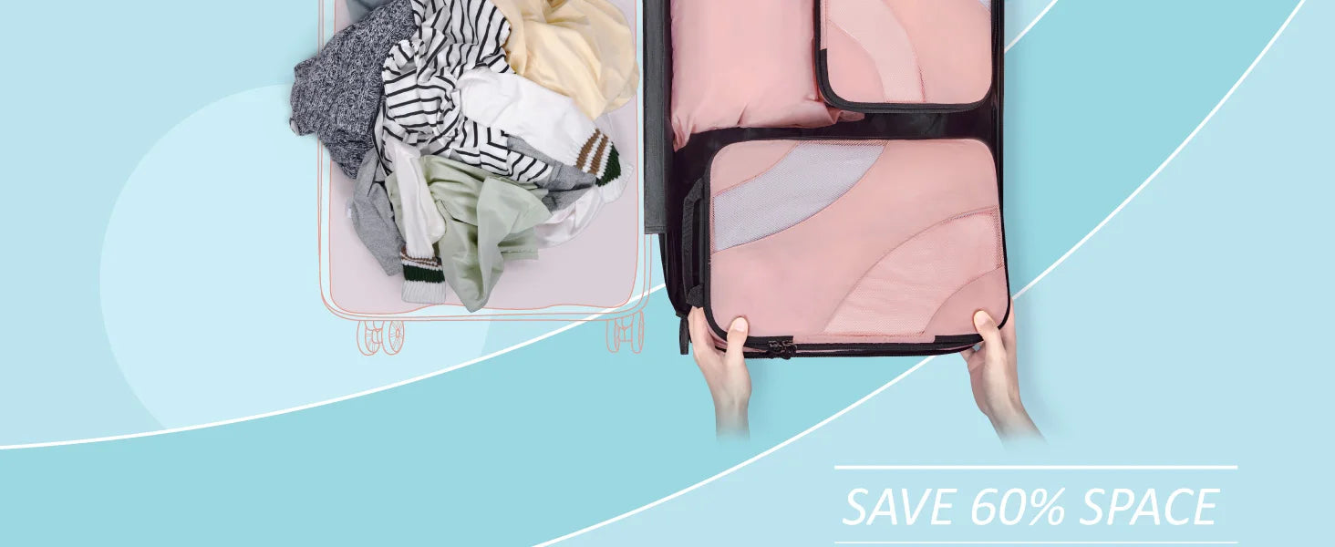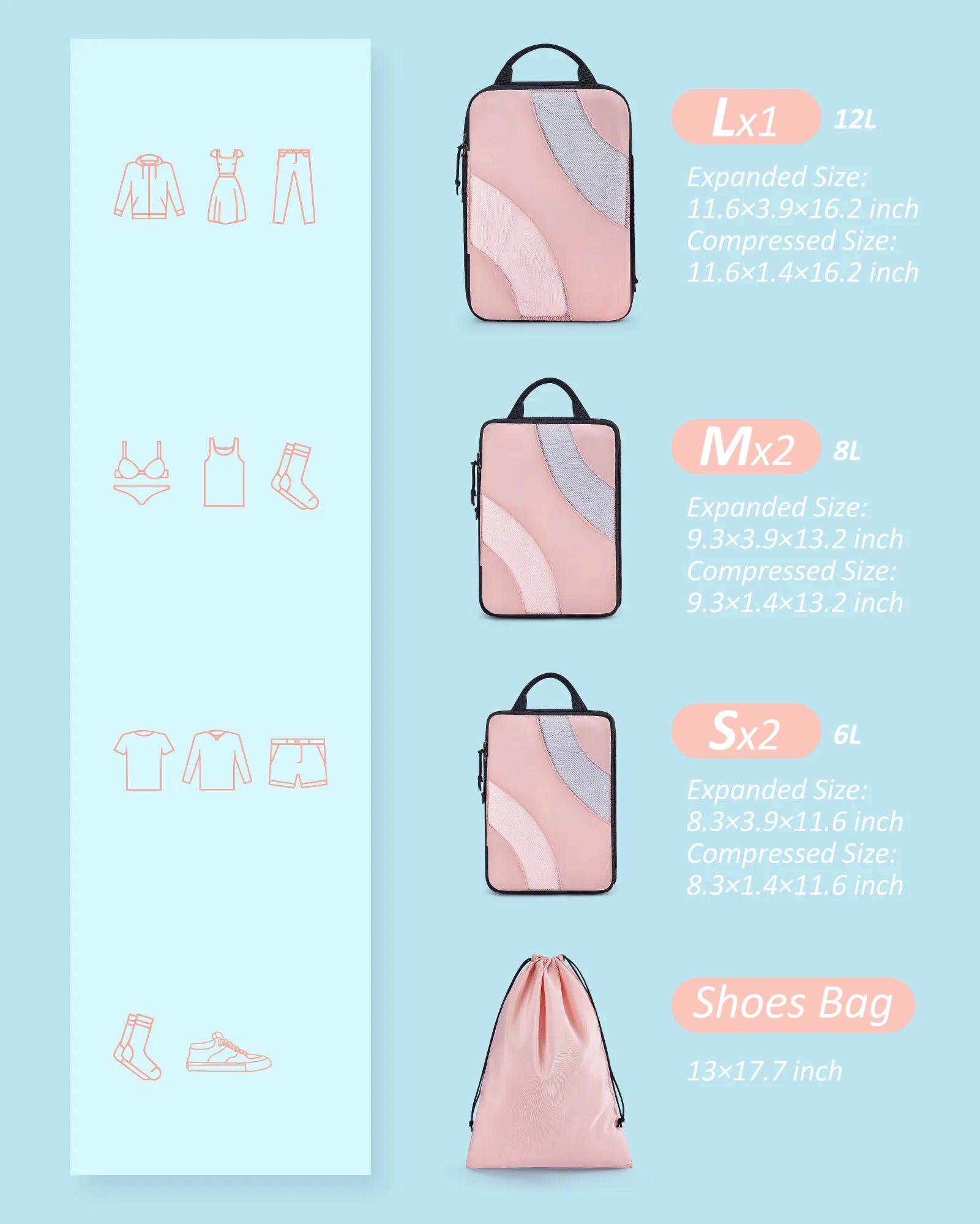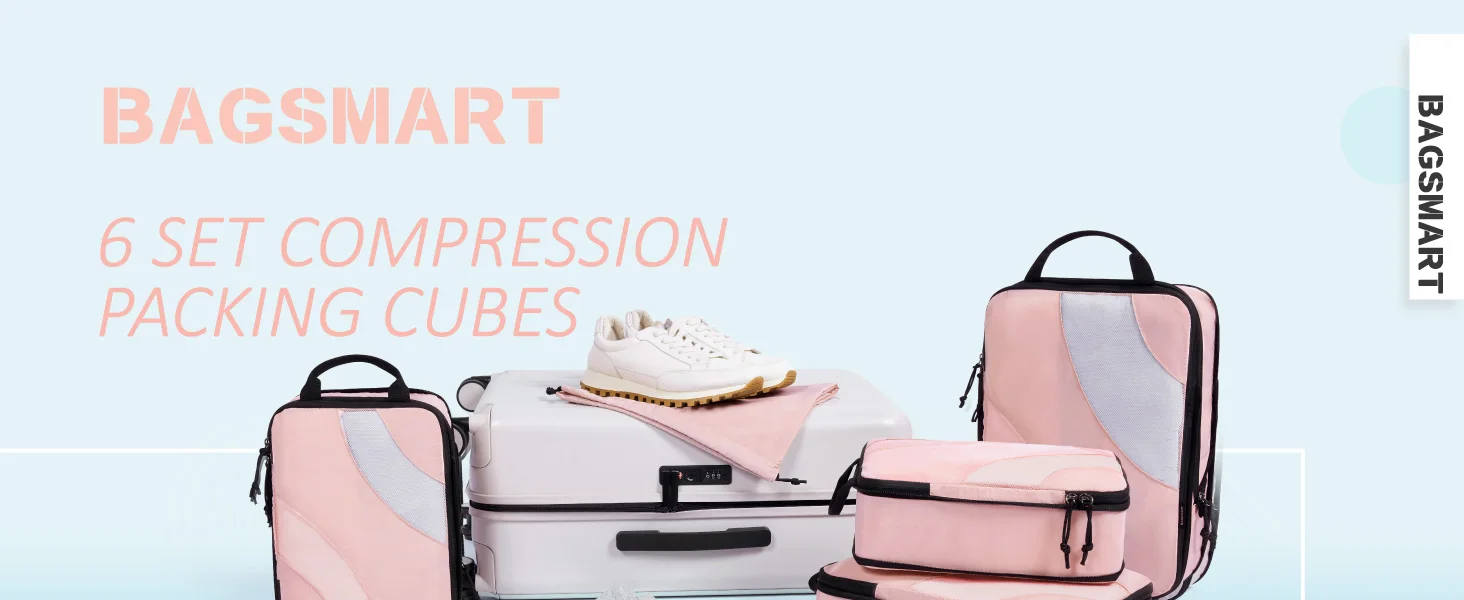 BAGSMART 6Pcs Set Packing Cubes Set Travel Organizer Storage Bags Suitcase Cases Portable Luggage Clothes Shoe Tidy Pouch Foldin