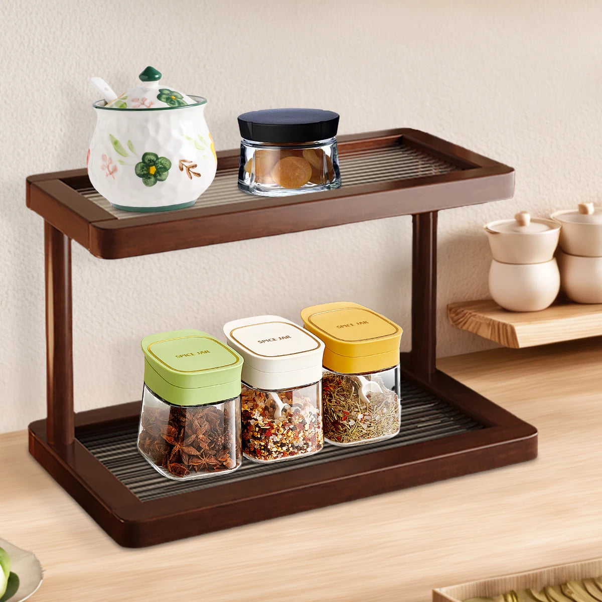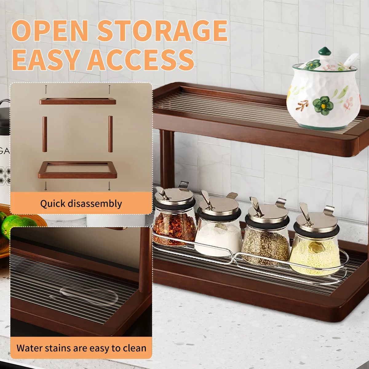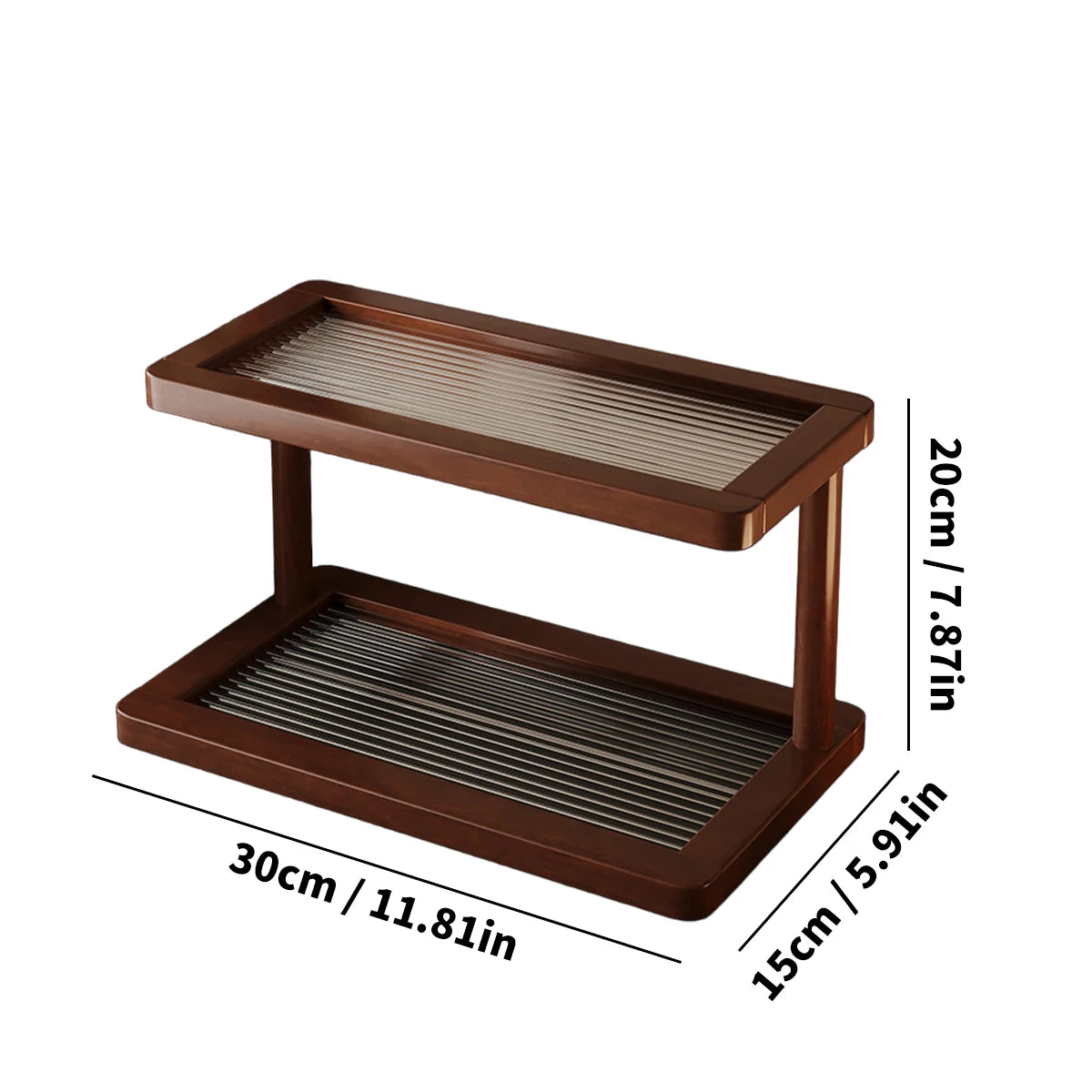 Bamboo 2-Tier Vanity Organizer with Acrylic Base, Eco-Friendly Cosmetic/Perfume Storage Rack for Bathroom & Kitchen (Walnut)